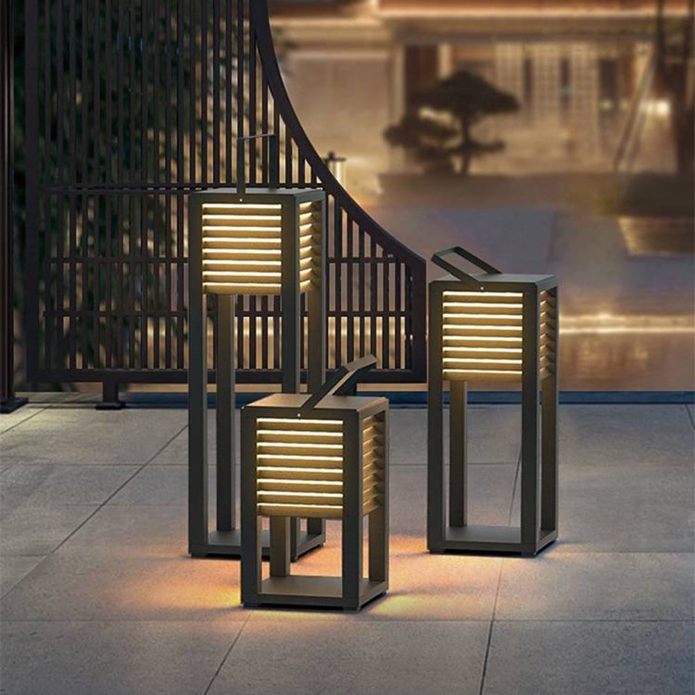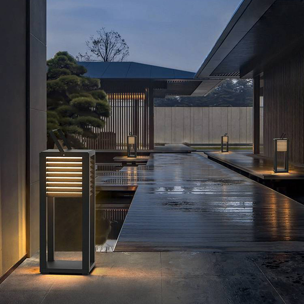 - Kuution muotoinen lyhty, jossa on metallinen kehys, tarjoaa nostalgista hajavaloa. Valaistaa istuinalueet hellästi.