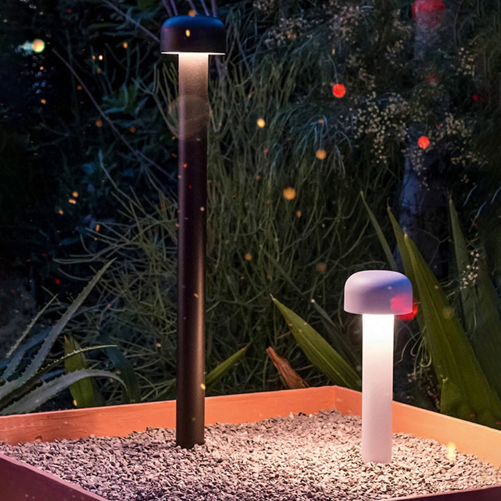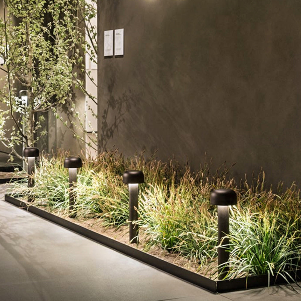 Orr Modern Metal Mushroom Muotoiltu Outdoor Path Light, hopea/musta