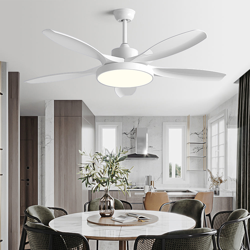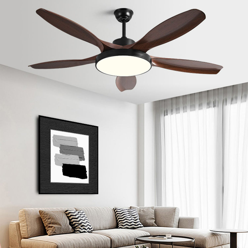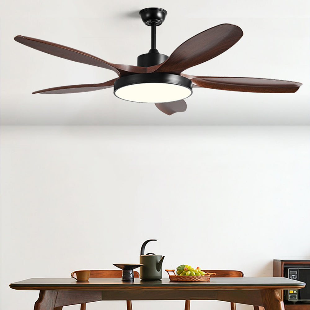 Ozawa Basic valkoinen ja musta 5-lapainen DC-kattotuuletin valolla, puinen, 51"
