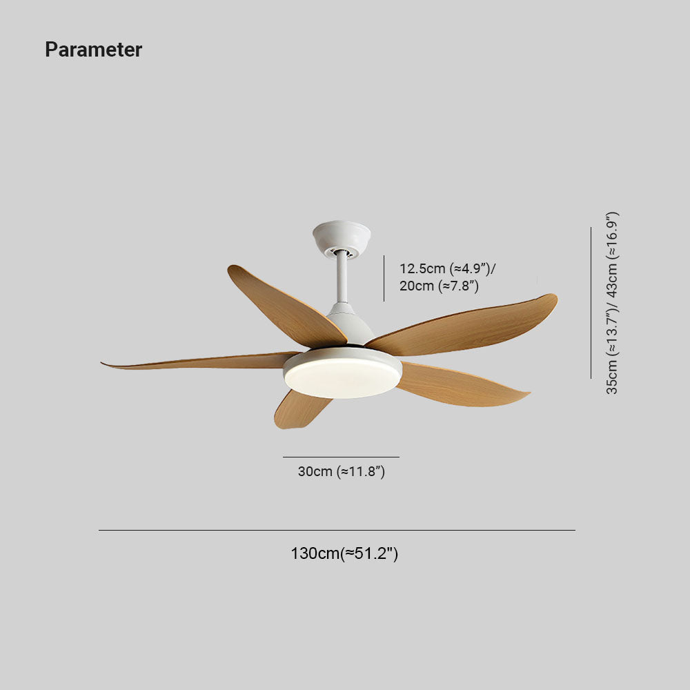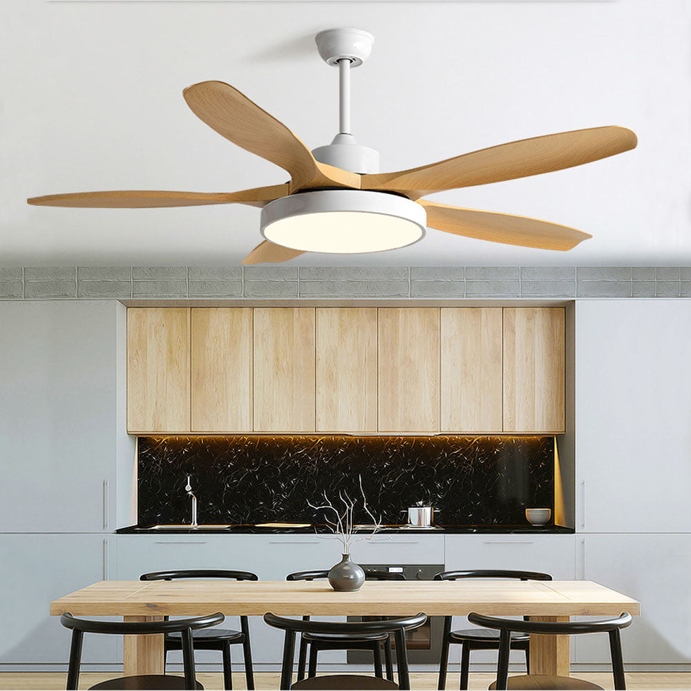 Ozawa Basic valkoinen ja musta moderni 5-lapainen DC-kattotuuletin valolla, puu, 51"