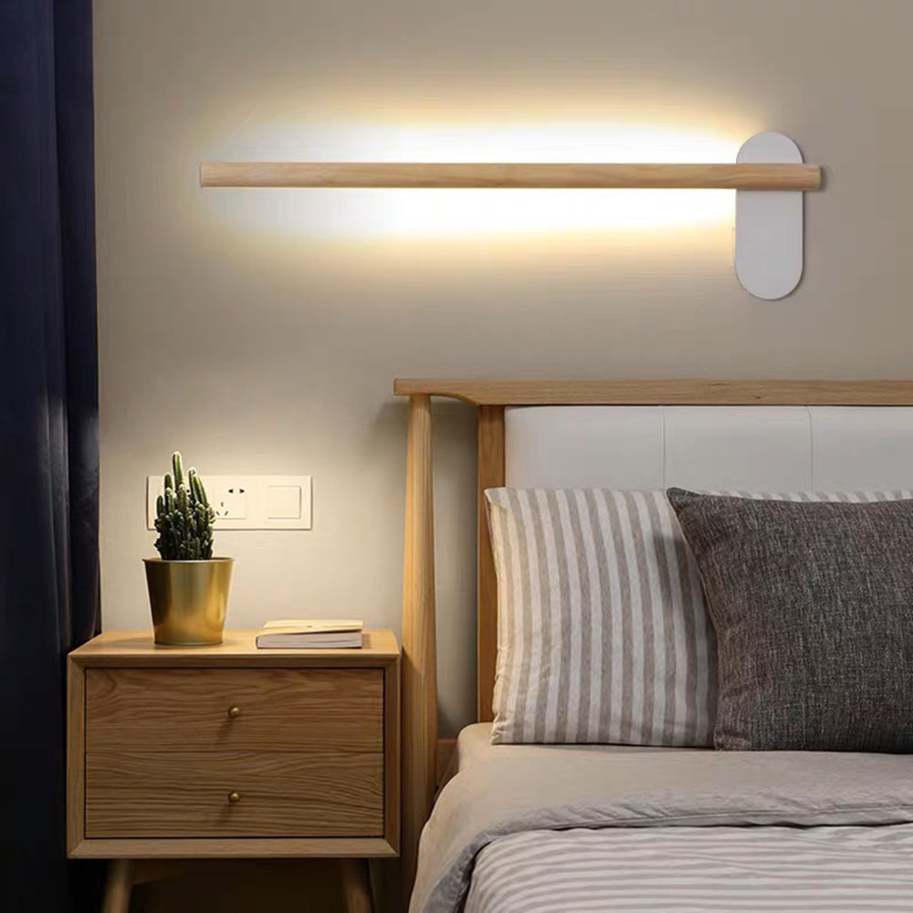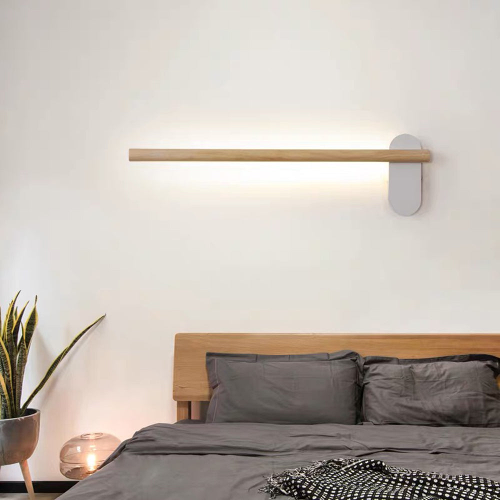 Ozawan moderni lineaarinen puinen seinävalaisin olohuoneessa, luonnonvalo