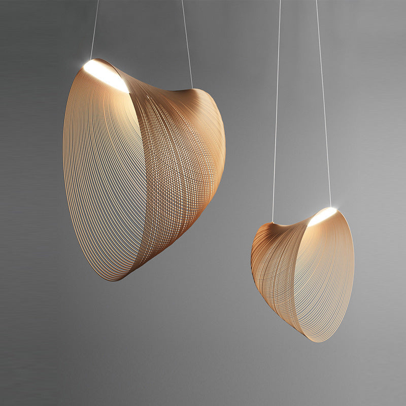 - Tämä riippuvalaisin yhdistää moderneja ja luonnollisia elementtejä. Puumateriaali tuo luonnollisen tekstuurin, kun taas muoto lisää modernia ilmettä.