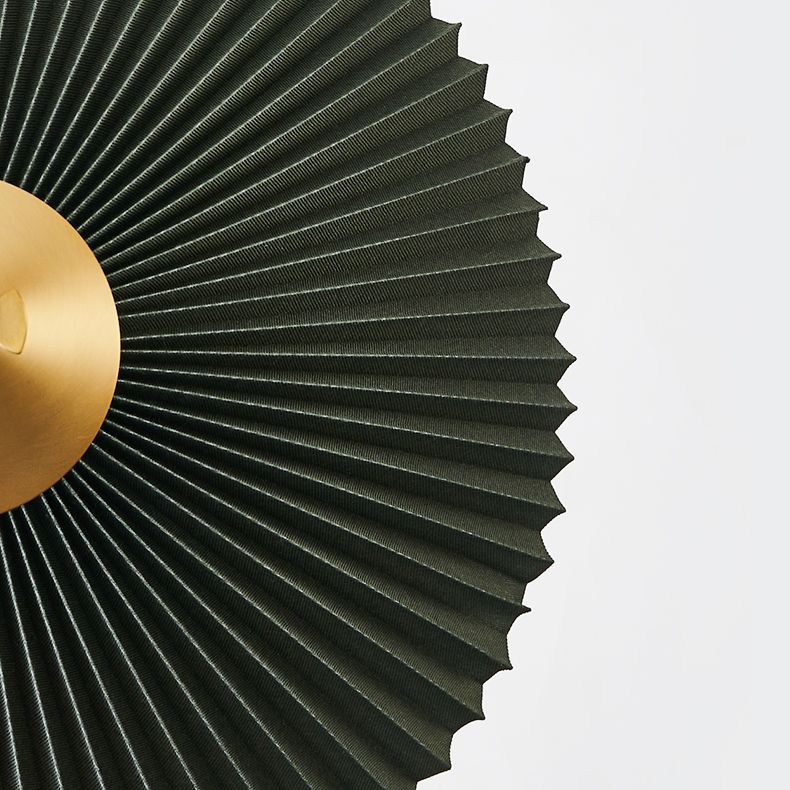 Valaisimessa on laskostettu designvarjostin, joka lisää kokonaisuutta yksityiskohtiin ja tekstuuriin, ja jalustan muoto on yksinkertainen ja vakaa.