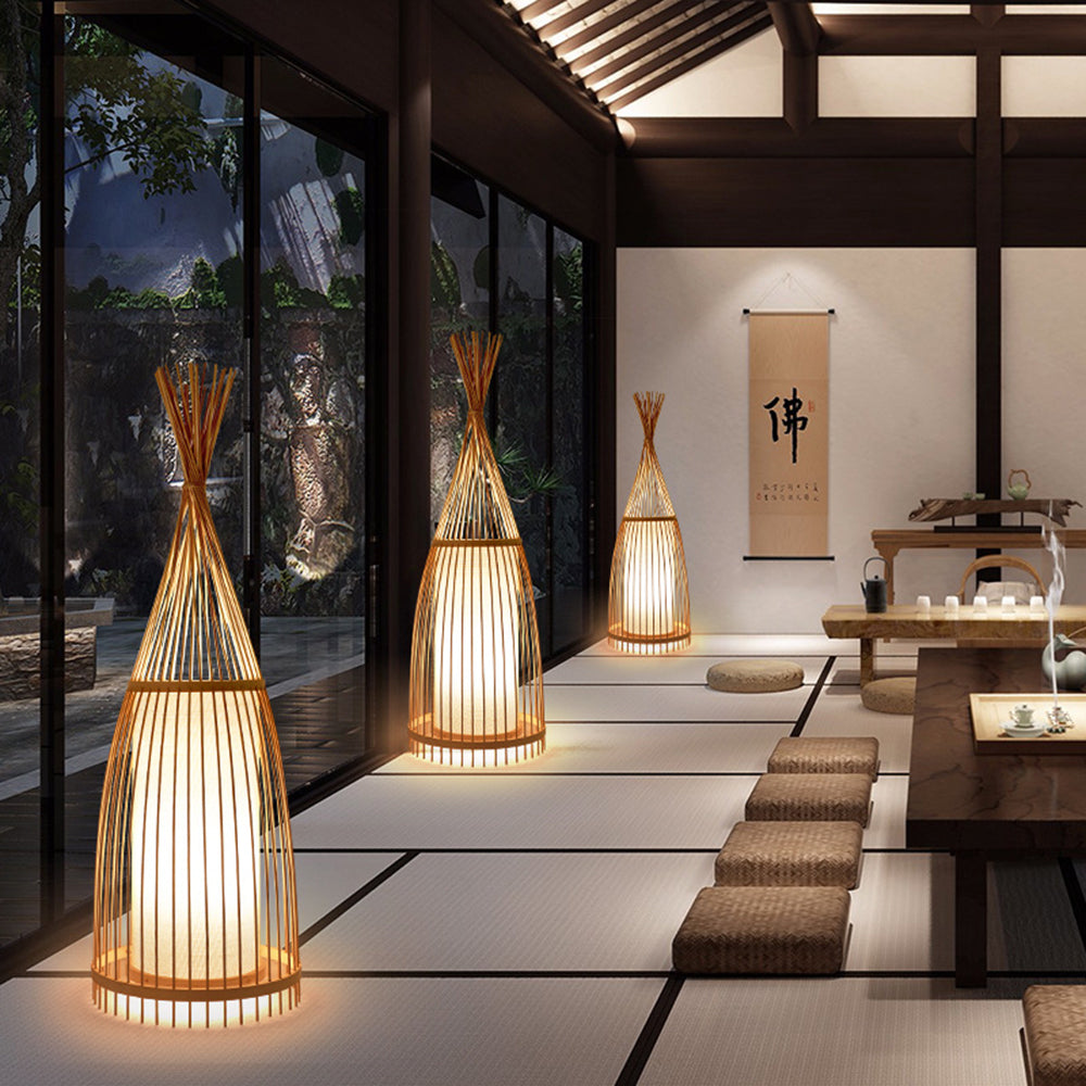 - Tässä lattiavalaisimessa on ainutlaatuinen ja kiehtova lieriömäinen muoto. Suorat bambusolmut ympäröivät kauniisti valaisimen yläosaa luoden monimutkaisen kuvion, joka lisää luonnetta ja charmia. Sylinterimäinen muotoilu ei vain lisää hienostuneisuutta, vaan myös varmistaa, että lampun valaistus jakautuu tasaisesti, mikä tarjoaa pehmeän, hajautetun hehkun, joka parantaa huoneesi tunnelmaa.