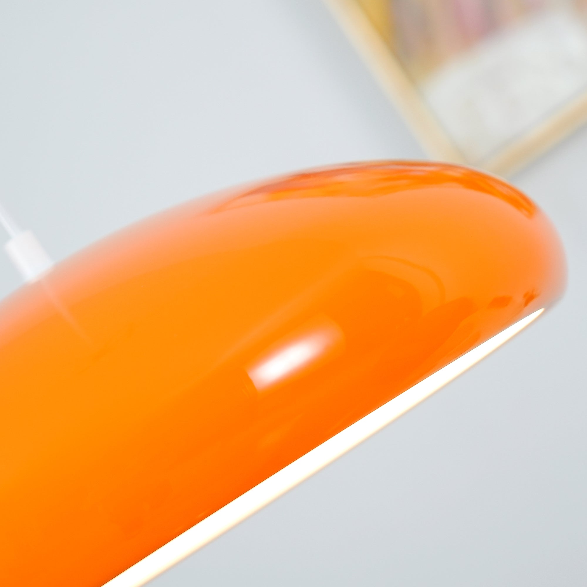 Pangen on jousituslamppu. Valettu kupoli maalattua alumiinia, valkoinen sisäpuoli. Hajotin satiinipinnoitettua polykarbonaattia. Kromattu katos.