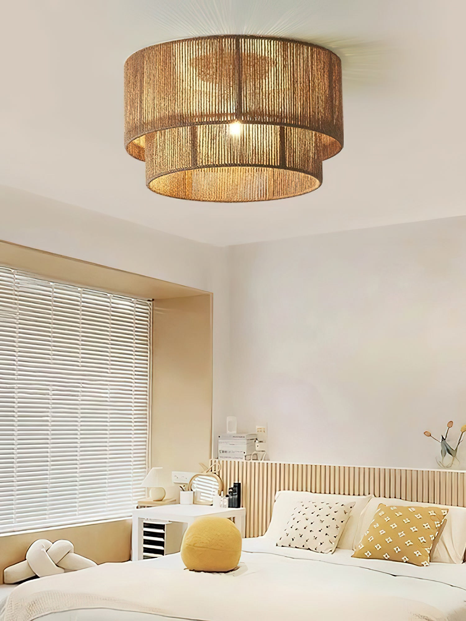 Tee tyylikäs ilme missä tahansa huoneessa Patrici-paperikattovalaisimellamme. Moderni ja tyylikäs rumpuvarjostin on korostettu puhtailla kudottuilla linjoilla toimimaan raikkaana ja viehättävänä tapana valaista kotiisi. Sen runsas tekstuurinen viehätys on täydennetty roikkuvalla kudoksella, joka antaa boheemia tunnelmaa mihin tahansa tilaan.