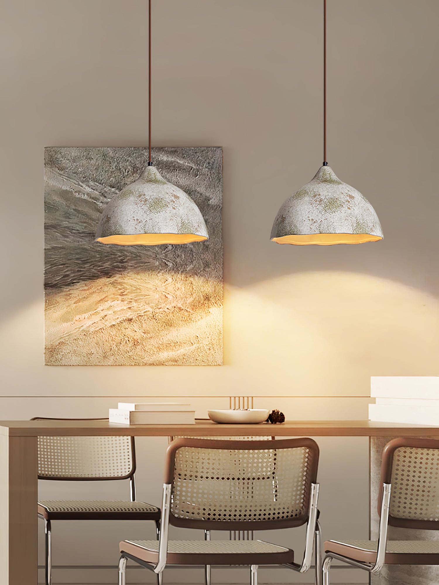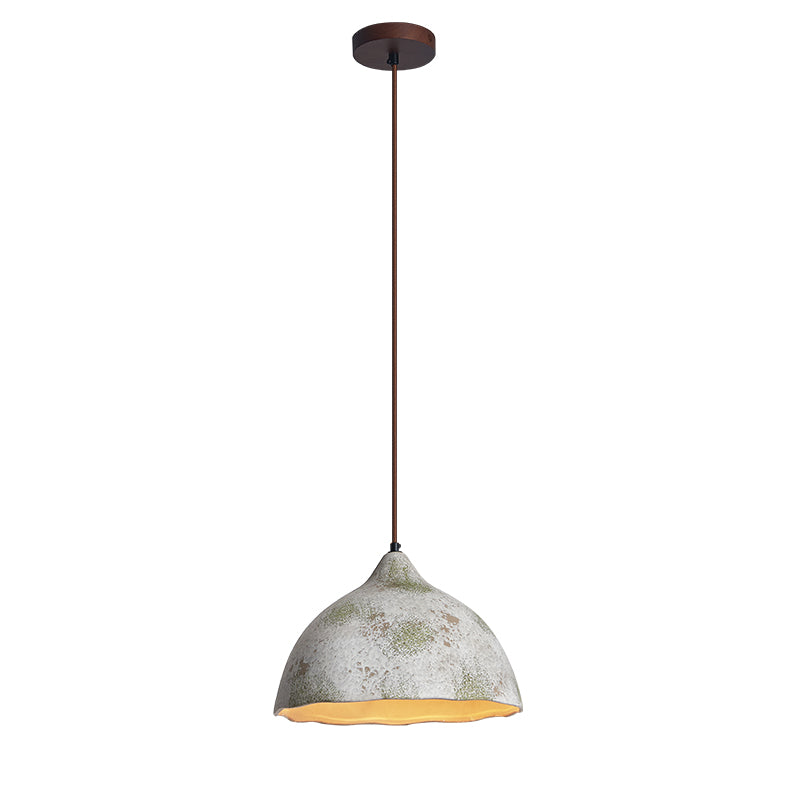 Pyyränmuotoinen riippuvalaisin on täydellinen yhdistelmä vintage charmia ja modernia käsityötä. Sen ainutlaatuinen ikääntyvä rakenne kertoo ajan tarinan ja herättää rauhallisen "wabi-sabi" -filosofian. Valmistettu korkealaatuisesta keramiikasta, sen pilkullinen ja kulunut pinta huokuu runsaasti historiaa, ja sen pehmeä, lämmin valo tuo mukavuutta mihin tahansa tilaan. Tämä valaisin on enemmän kuin pelkkä valonlähde; se on epätäydellisyyden ja ajan kulumisen kauneuden juhla.