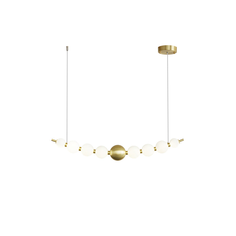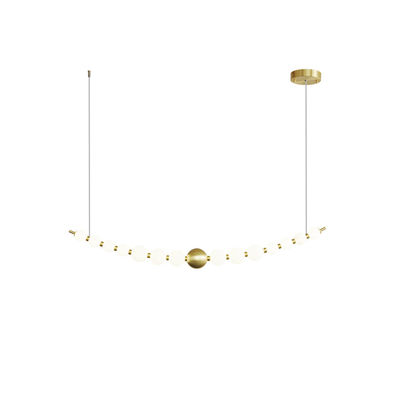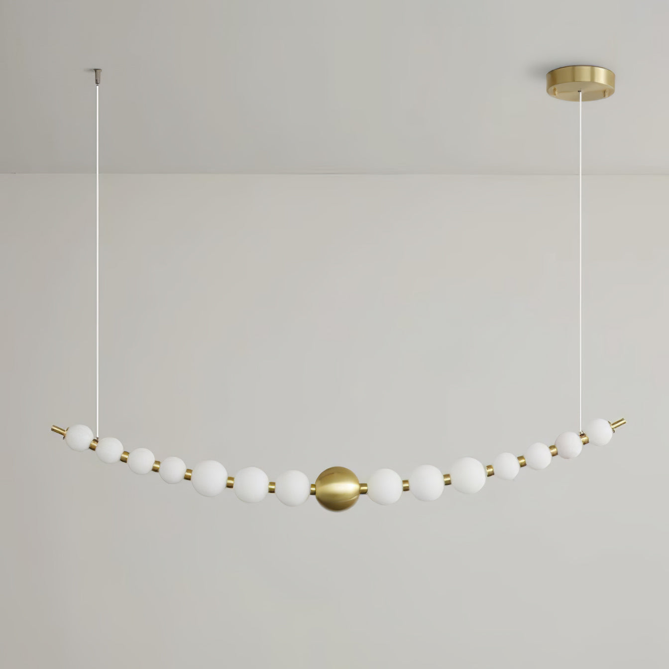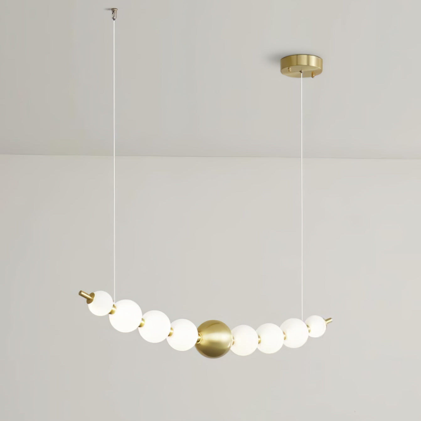 Anna lausunto Pearl Chain -riippuvalaisimella. Messingistä valmistettu valkoinen akryylipallo, tämä tyylikäs ja tyylikäs valaisin lisää hienostuneisuutta mihin tahansa tilaan. Sen ainutlaatuinen muotoilu herättää varmasti huomiota ja ihailua.