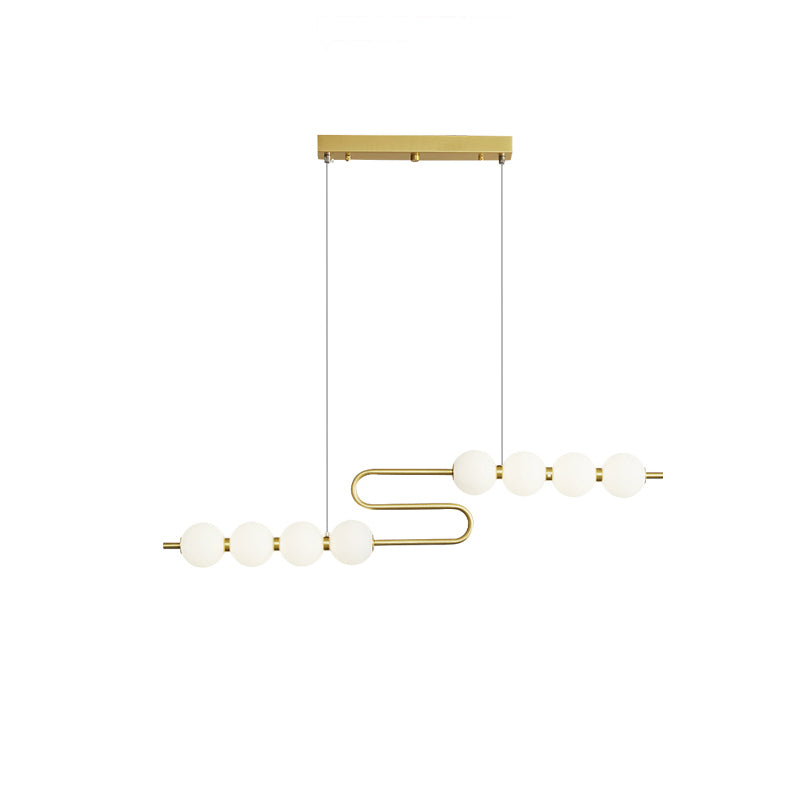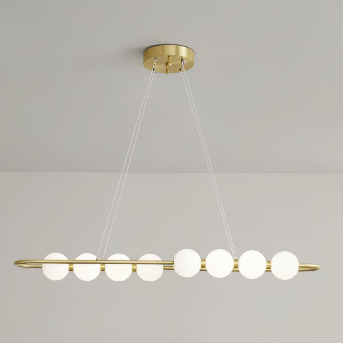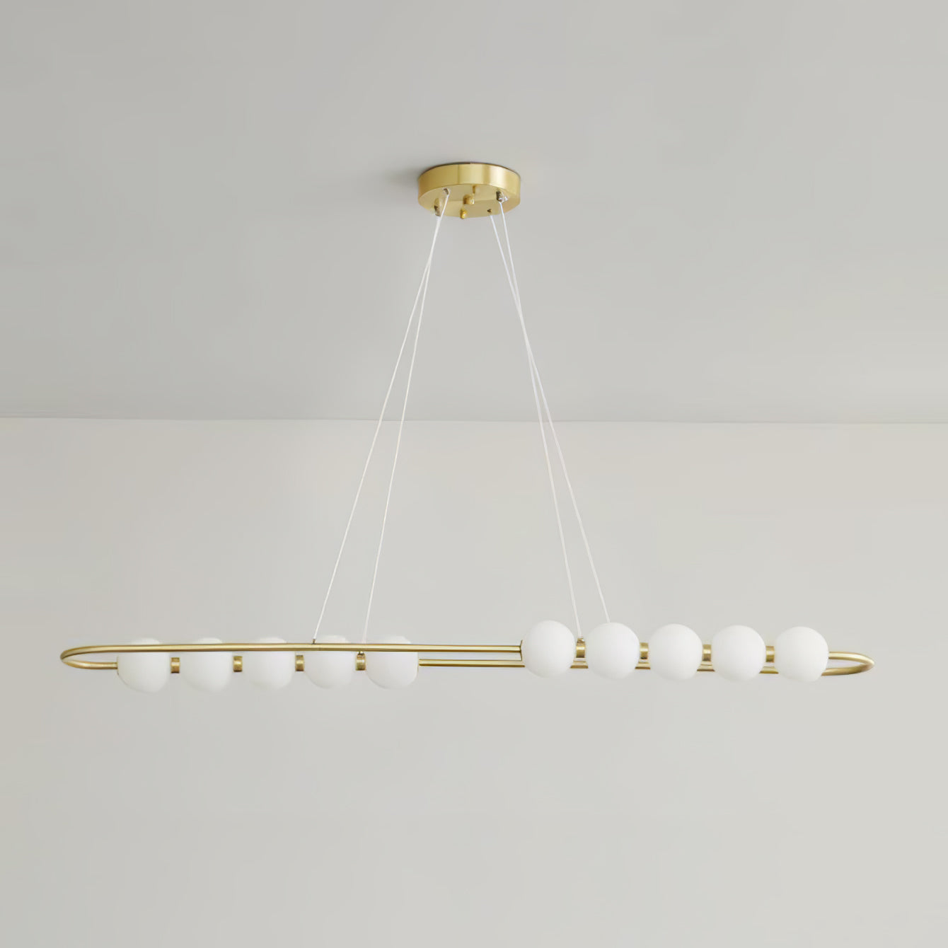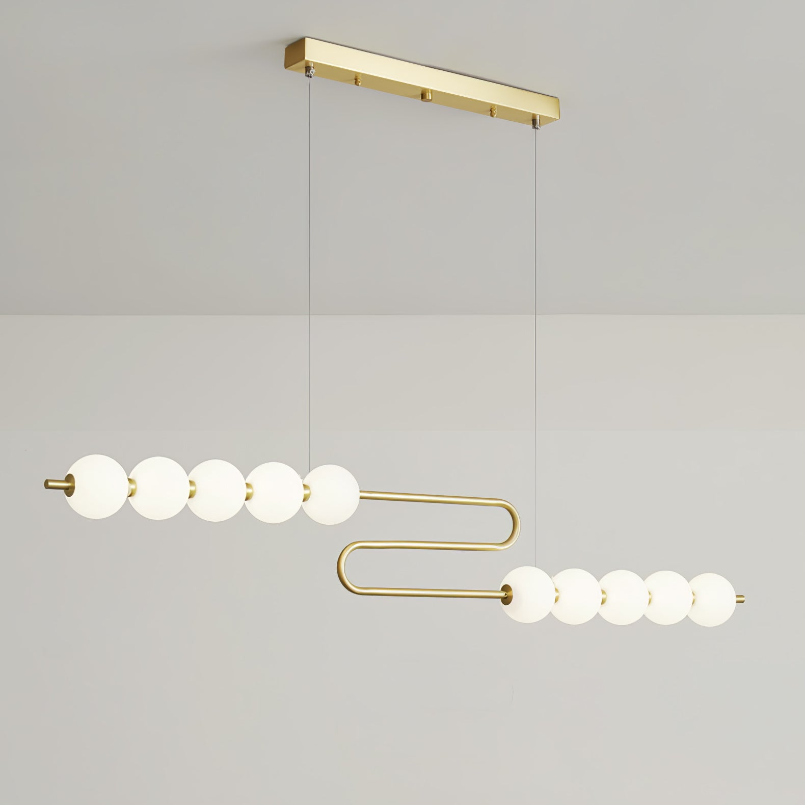 Anna lausunto Pearl Chain -riippuvalaisimella. Messingistä valmistettu valkoinen akryylipallo, tämä tyylikäs ja tyylikäs valaisin lisää hienostuneisuutta mihin tahansa tilaan. Sen ainutlaatuinen muotoilu herättää varmasti huomiota ja ihailua.