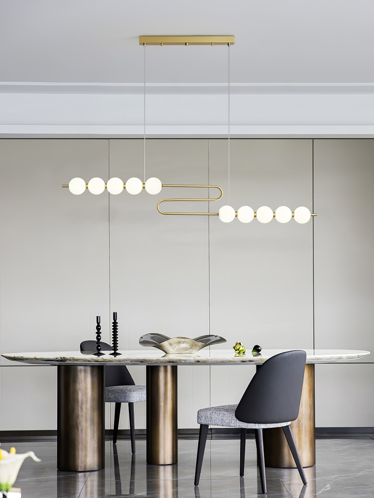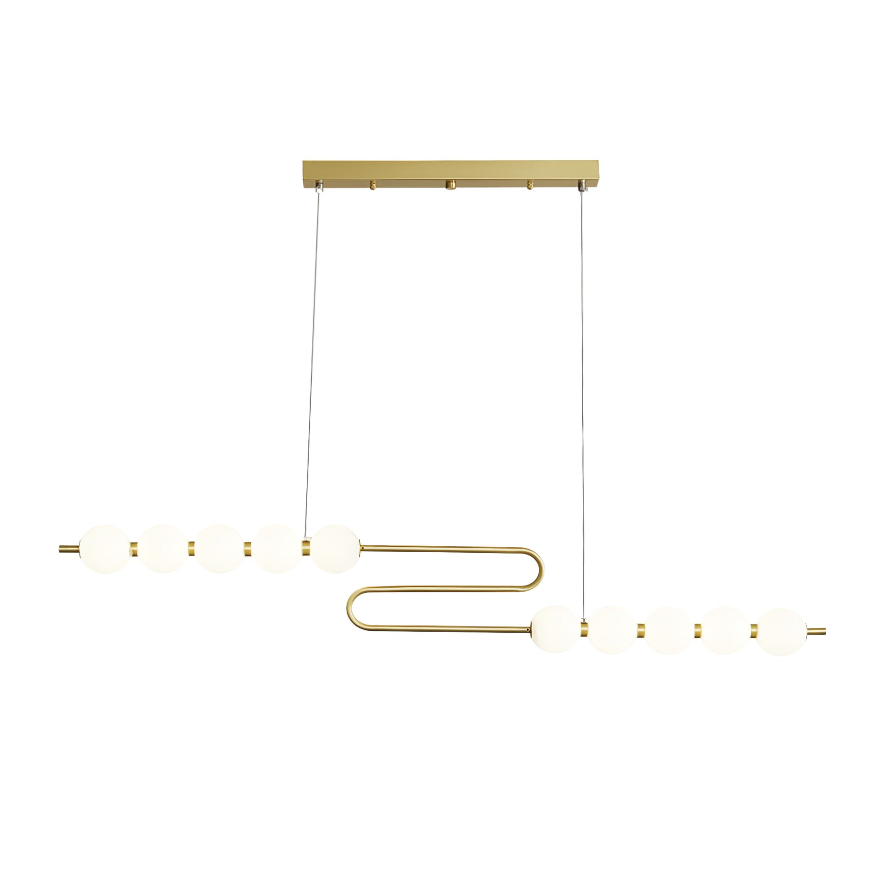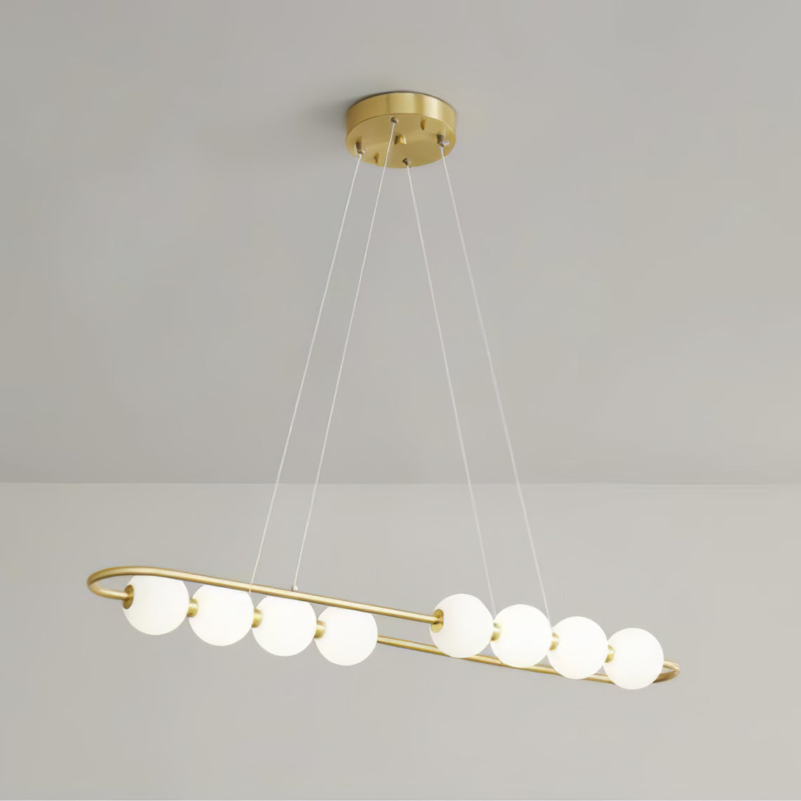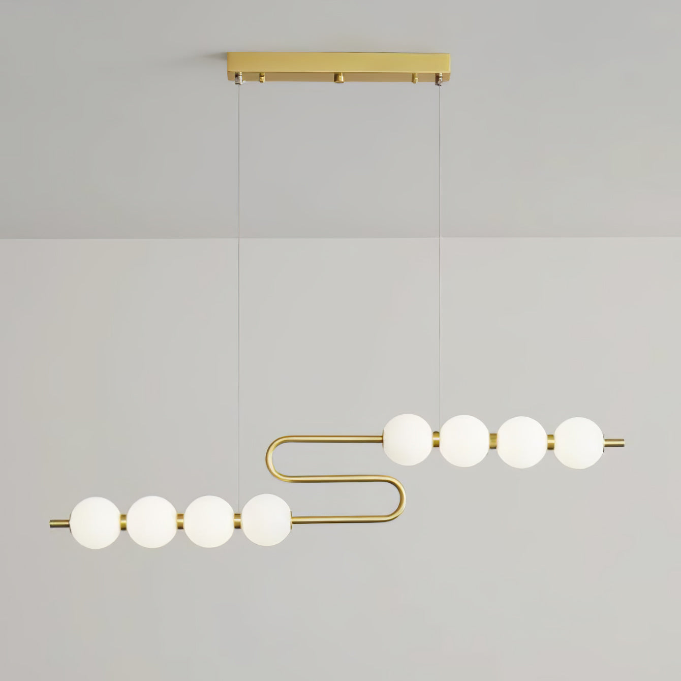 Anna lausunto Pearl Chain -riippuvalaisimella. Messingistä valmistettu valkoinen akryylipallo, tämä tyylikäs ja tyylikäs valaisin lisää hienostuneisuutta mihin tahansa tilaan. Sen ainutlaatuinen muotoilu herättää varmasti huomiota ja ihailua.