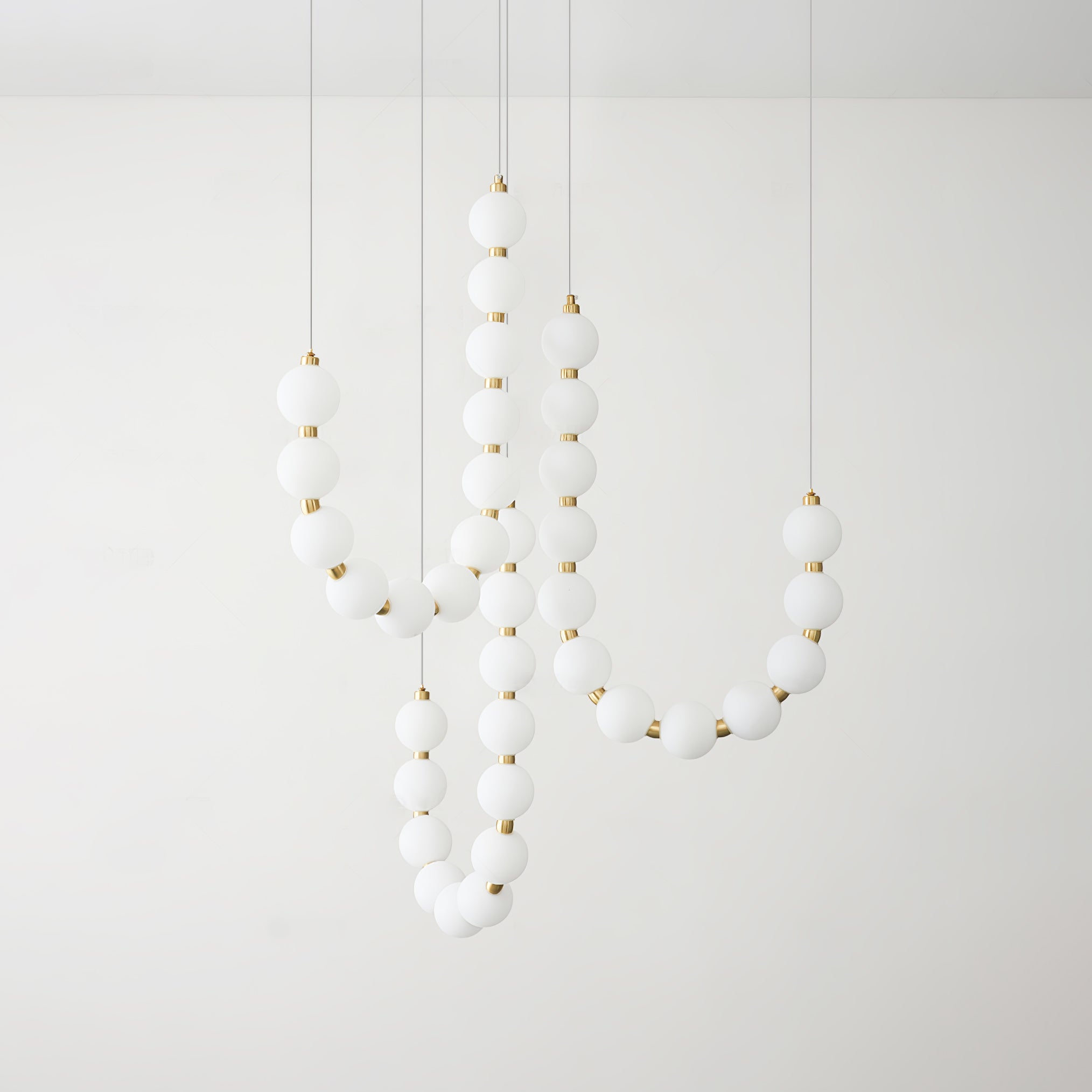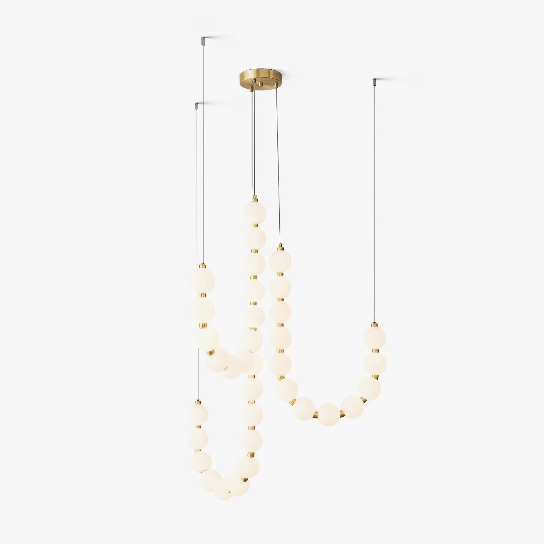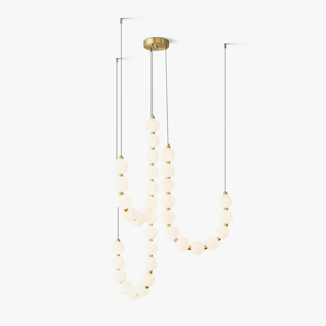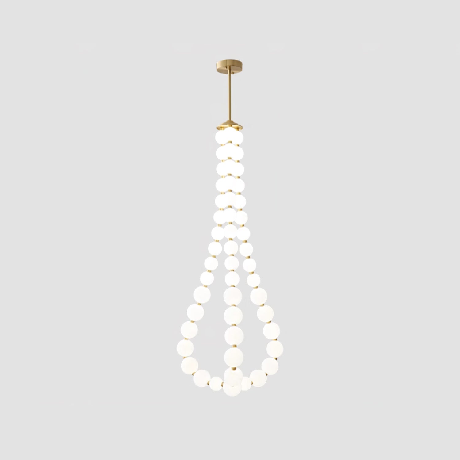 Tämä tyylikäs helmikaulakoru kattokruunu valaisee minkä tahansa tilan messingistä valmistetulla pohjalla ja valkoisilla muovipalloilla. Sen ainutlaatuinen muotoilu herättää ihailua ja huomion yhdistämällä erottuvan tyylin yleismaailmalliseen ja ajattomaan vetovoimaan. Sen ainutlaatuiset valaistusmuodot korostavat kotisi sisustusta ja luovat lämpimän, kodikkaan tunnelman tapaamisiin ja laatuaikaa perheen kanssa.