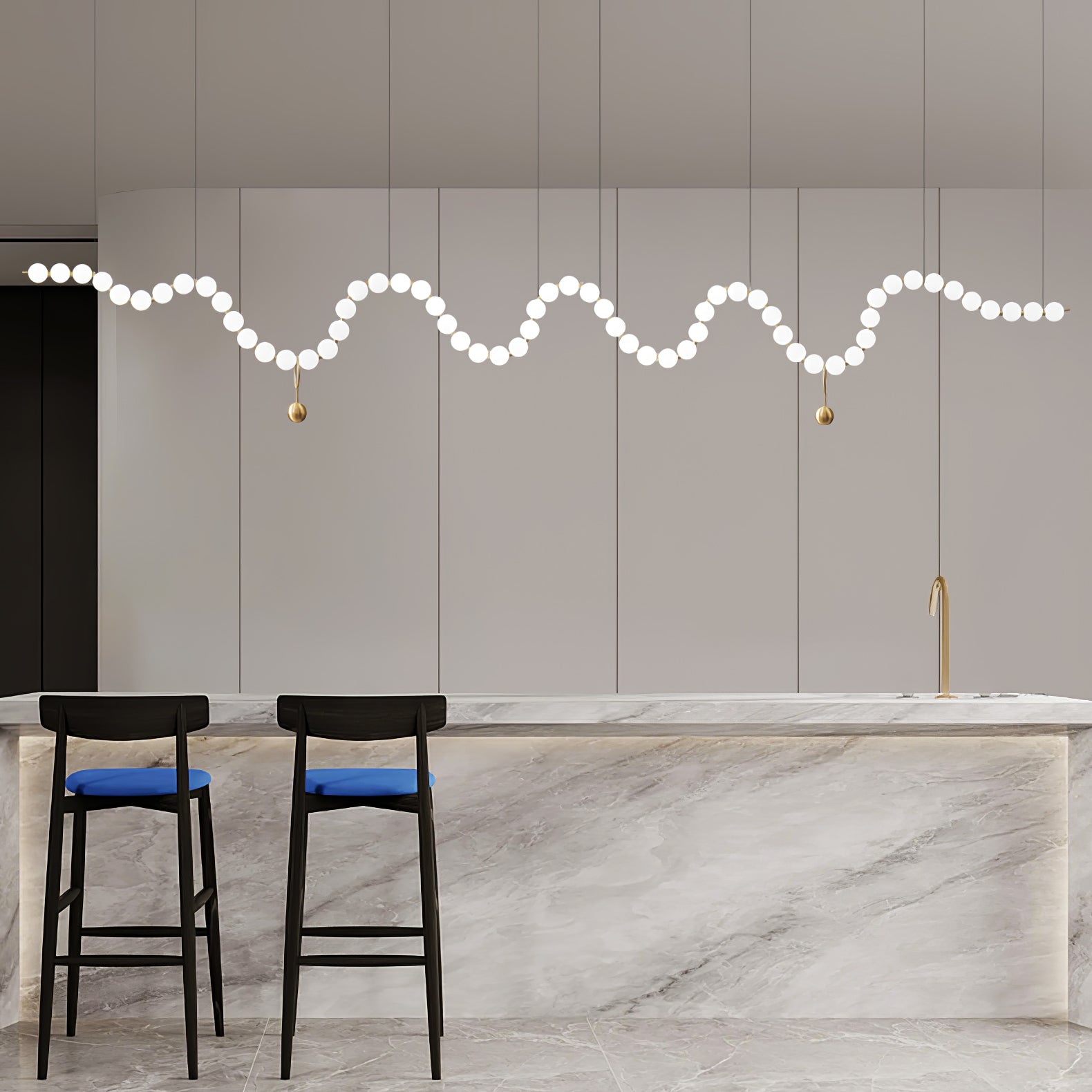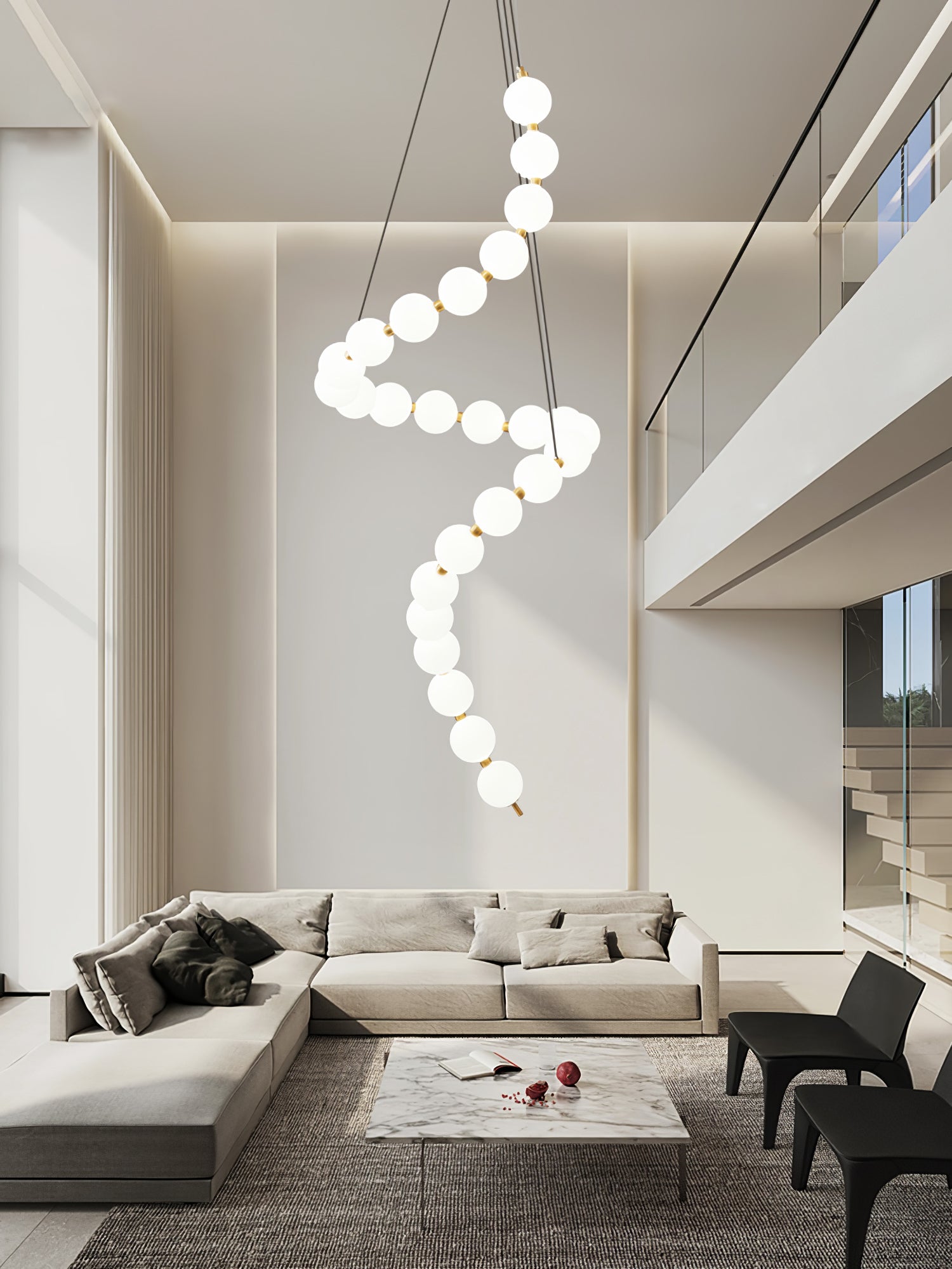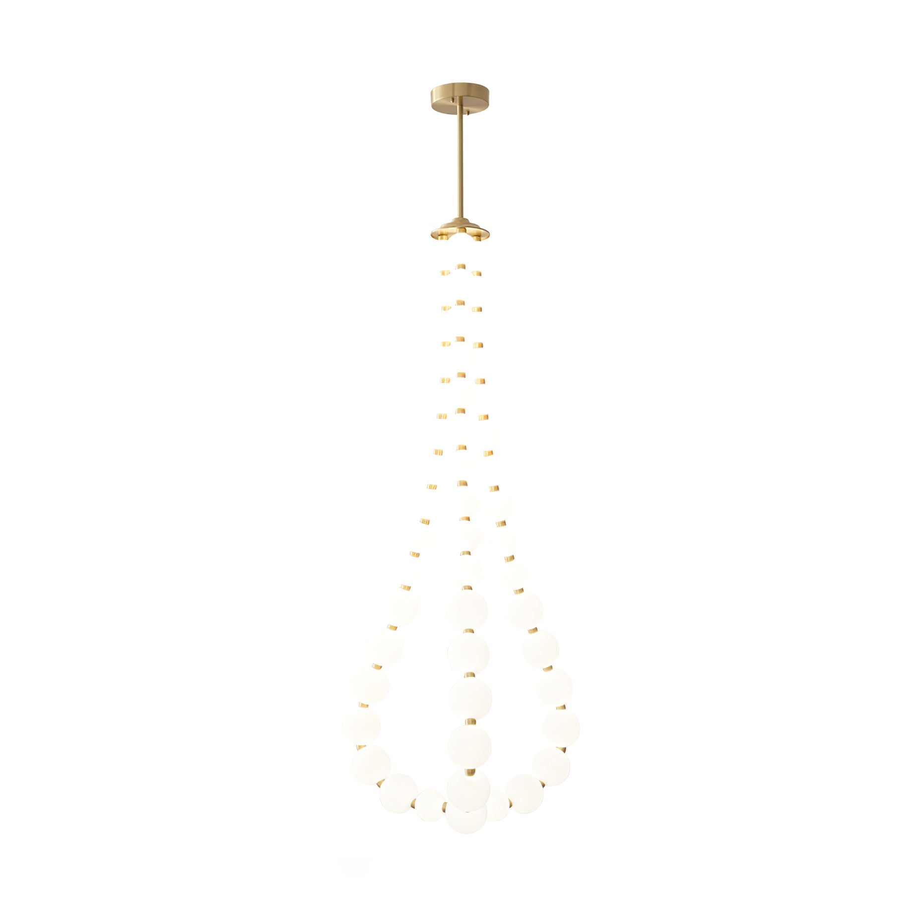 Tämä tyylikäs helmikaulakoru kattokruunu valaisee minkä tahansa tilan messingistä valmistetulla pohjalla ja valkoisilla muovipalloilla. Sen ainutlaatuinen muotoilu herättää ihailua ja huomion yhdistämällä erottuvan tyylin yleismaailmalliseen ja ajattomaan vetovoimaan. Sen ainutlaatuiset valaistusmuodot korostavat kotisi sisustusta ja luovat lämpimän, kodikkaan tunnelman tapaamisiin ja laatuaikaa perheen kanssa.