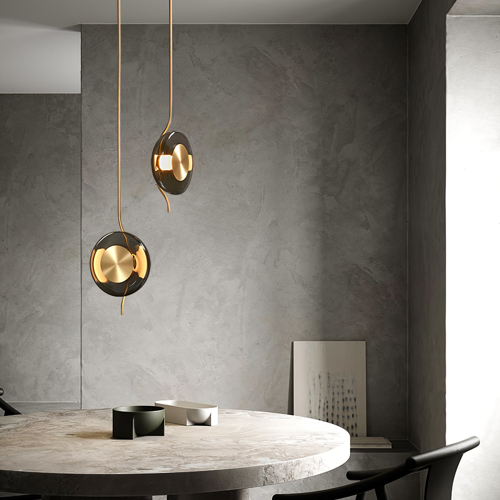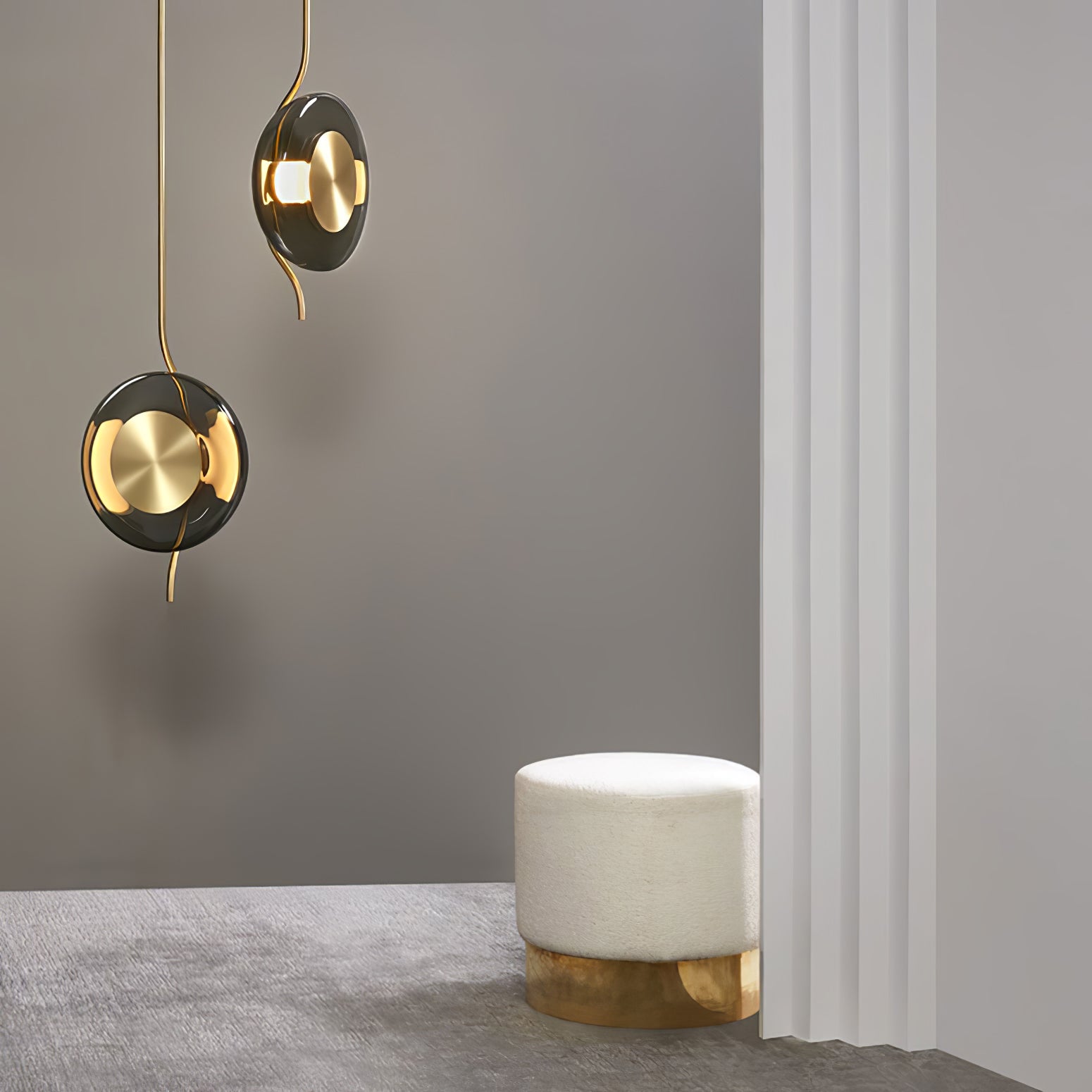 Suunnittelija, tasapaino ja hienostuneisuus ovat keskeisiä elementtejä PENDULUM-kokoelmassa, joka on saanut inspiraationsa kellosta sen lumoavilla ja hypnoottisilla ominaisuuksilla. PENDULUM-kokoelma säteilee valoa, joka näyttää värähtelevän samankeskisinä vyöhykkeinä valonlähteestä, suupuhalletun kaarevan lasin ympäröimänä ja hajauttamana.