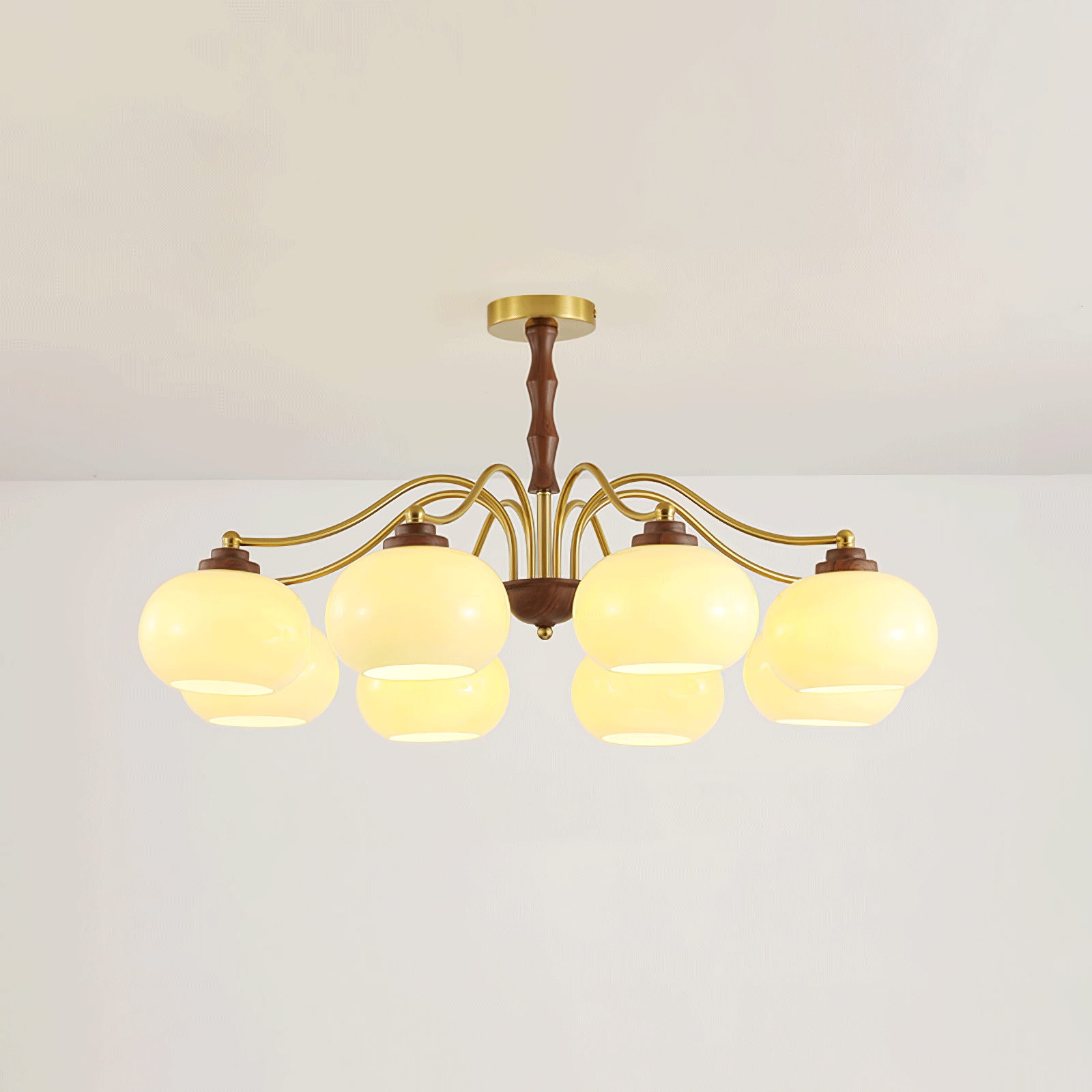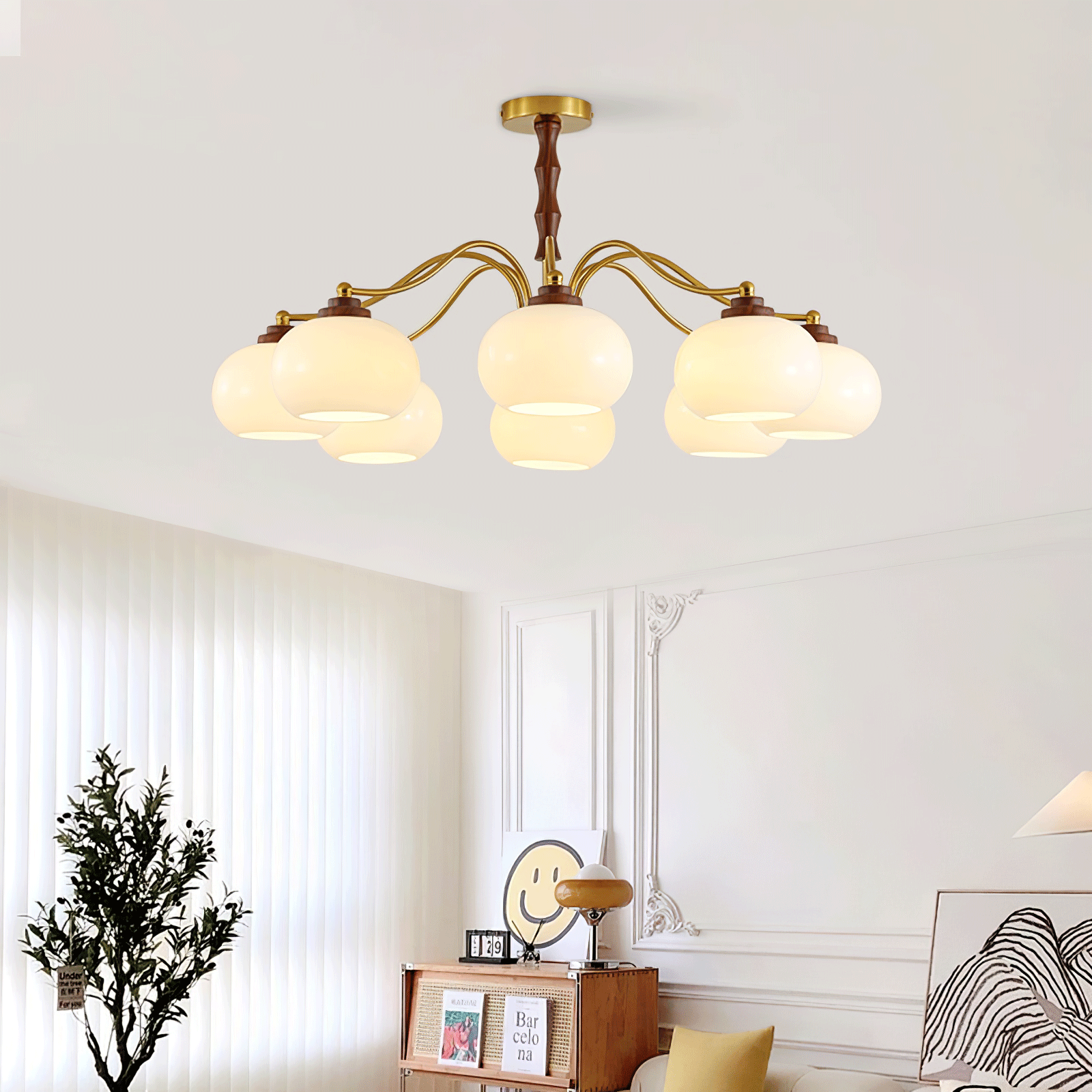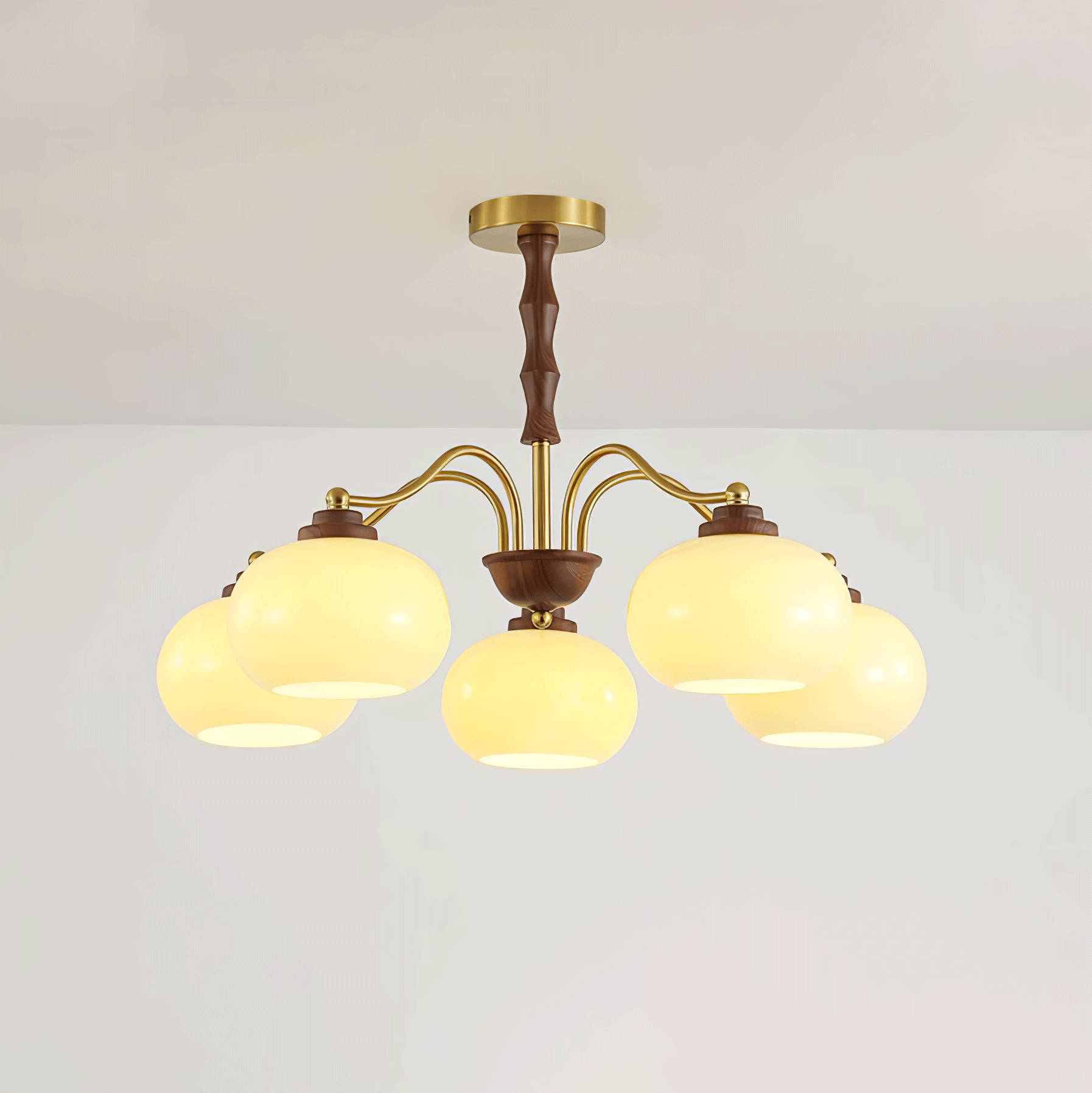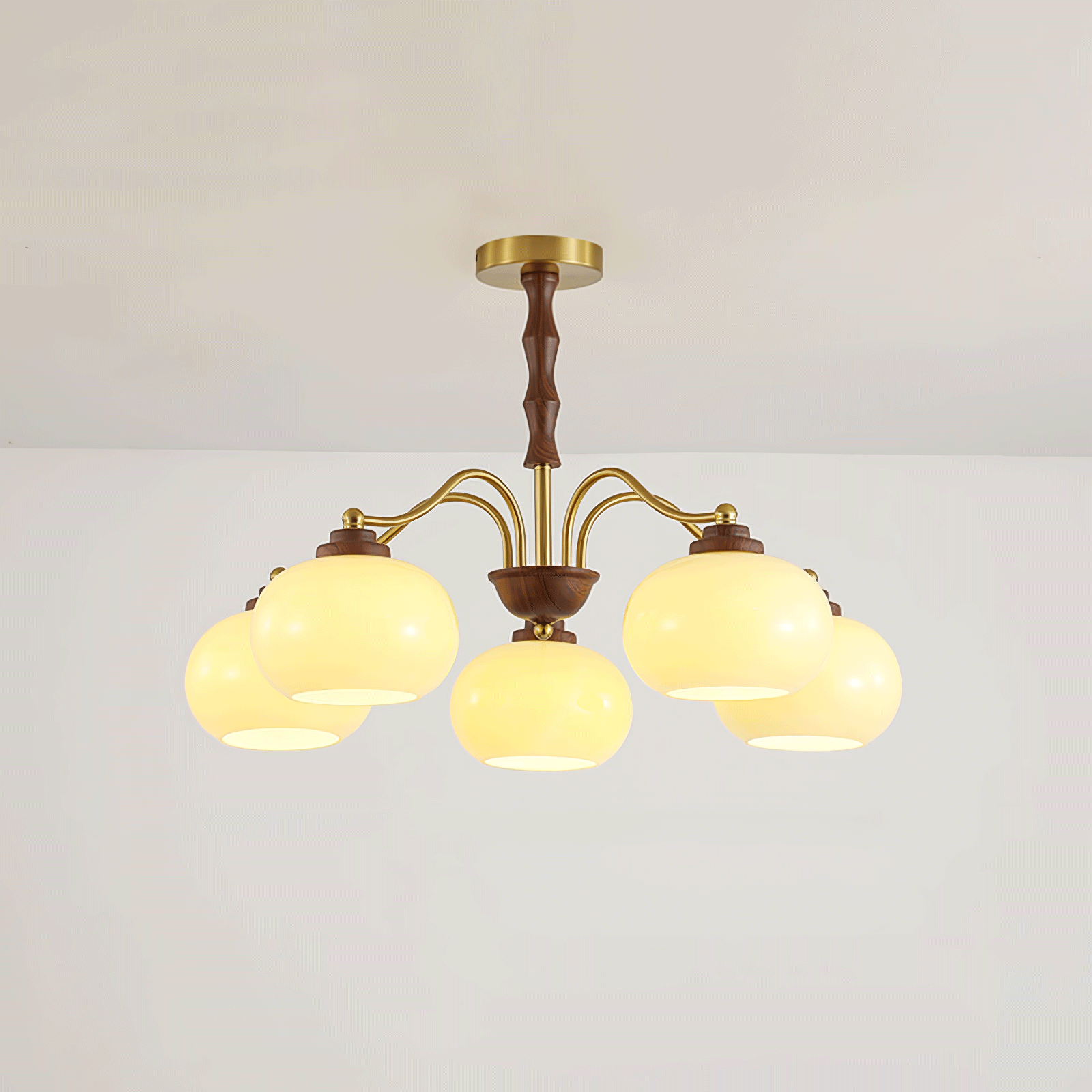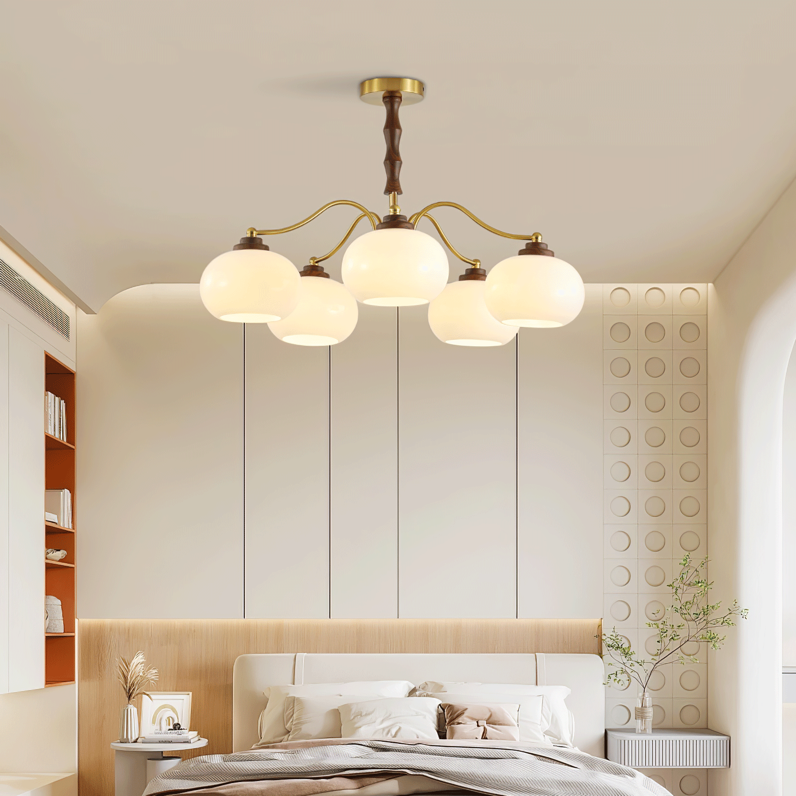 Tässä upeassa Persimmon Glass Globe -kattokruunussa on lämmin pähkinän sävyjen paletti ja modernit sulavat linjat. Asiantuntevasti valmistettu metallirakenteesta, sen klassinen viehätys saavutetaan edistyneellä vesipainatuksella ilman aitoa puuta. Viisi herkästi järjestettyä maitomaista lasisävyä tarjoavat tasapainoisen ja symmetrisen ilmeen, jotka säteilevät lämmintä ja kutsuvaa valoa. Suunnittelultaan käytännöllinen ja esteettisesti kaunis, sen ainutlaatuinen pähkinäsävy lisää hienon koriste-elementin.