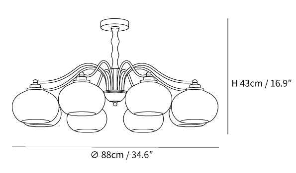 8 päätä Koko: Halkaisija 88cm x K 43cm / ∅ 34,6″ x K 16,9″