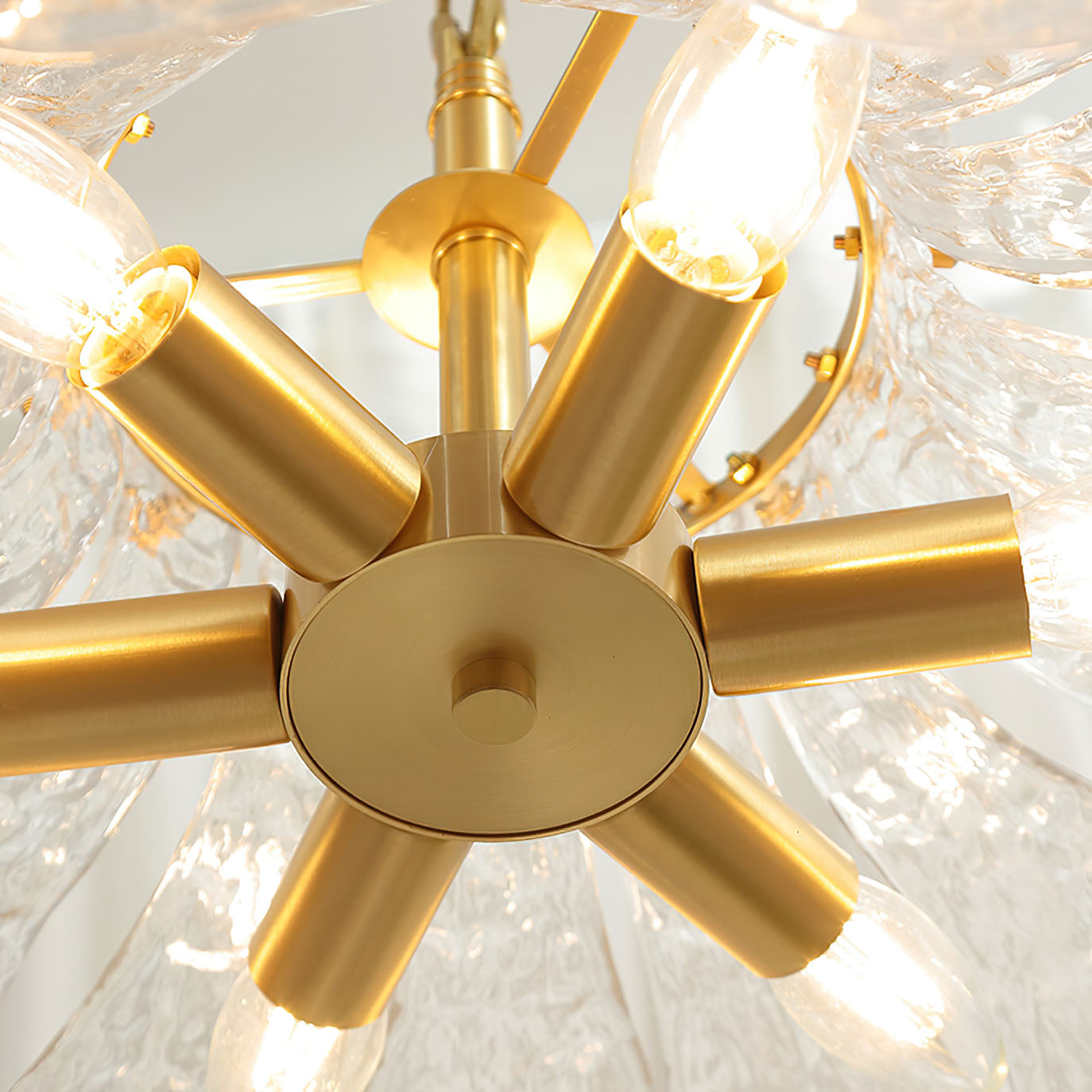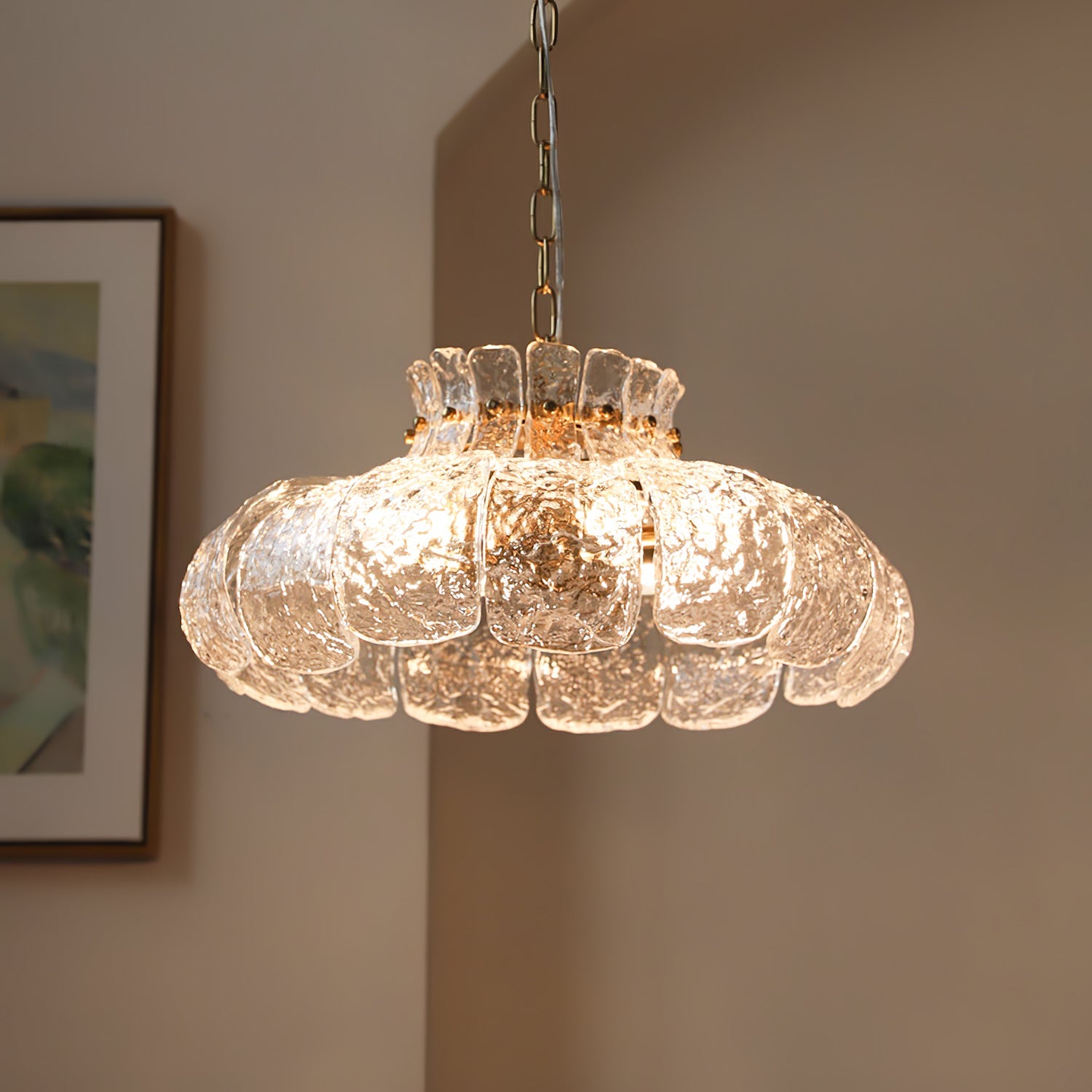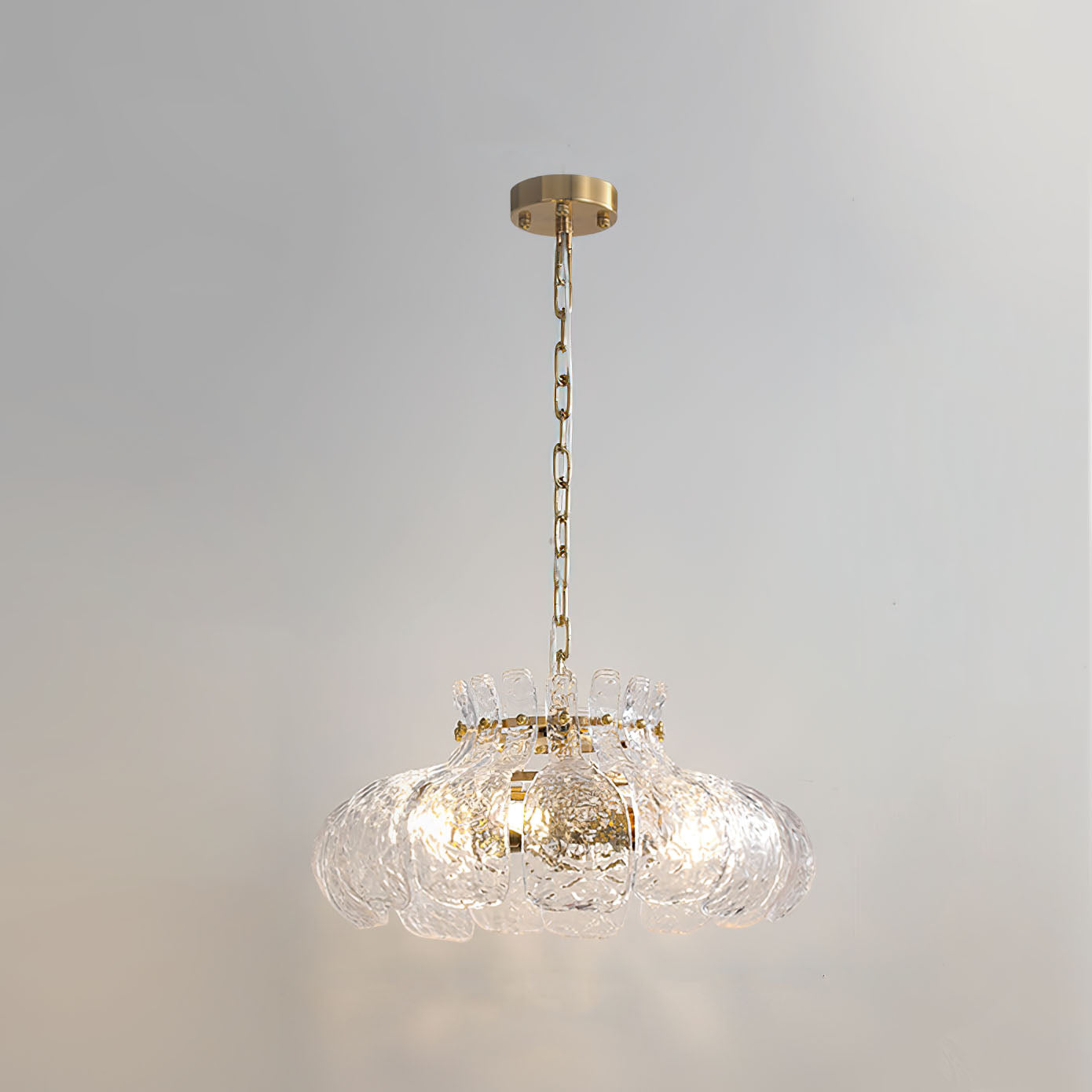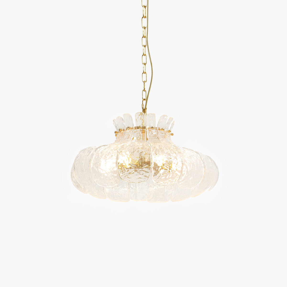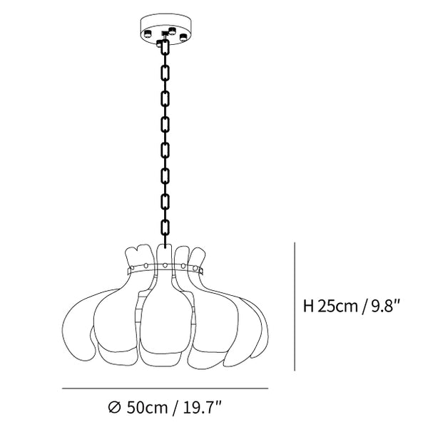 Petal Ice Glass Pendant Light on kaunis koriste jokaiseen kotiin, tuoden klassista ja vintage-tyyliä herkällä ja naisellisella muotoilullaan. Tämä kunnioitusta herättävä valaisin koostuu kuparin ja lasin yhdistelmästä, joka antaa pehmeän ja lämpimän hehkun ruokasaliin tai makuuhuoneeseen. Moderneihin ja perinteisiin asetuksiin sopivat kupariset aksentit varmistavat, että tämä riippuvalaisin on minkä tahansa huoneen keskipiste.
