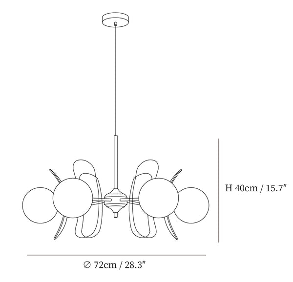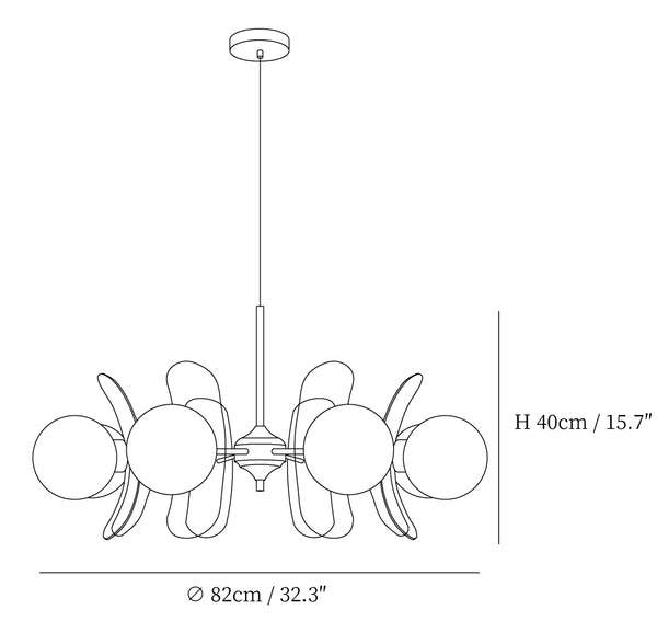 8 Pään koko: Halkaisija 82cm x K 40cm / ∅ 32,3″ x K 15,7″