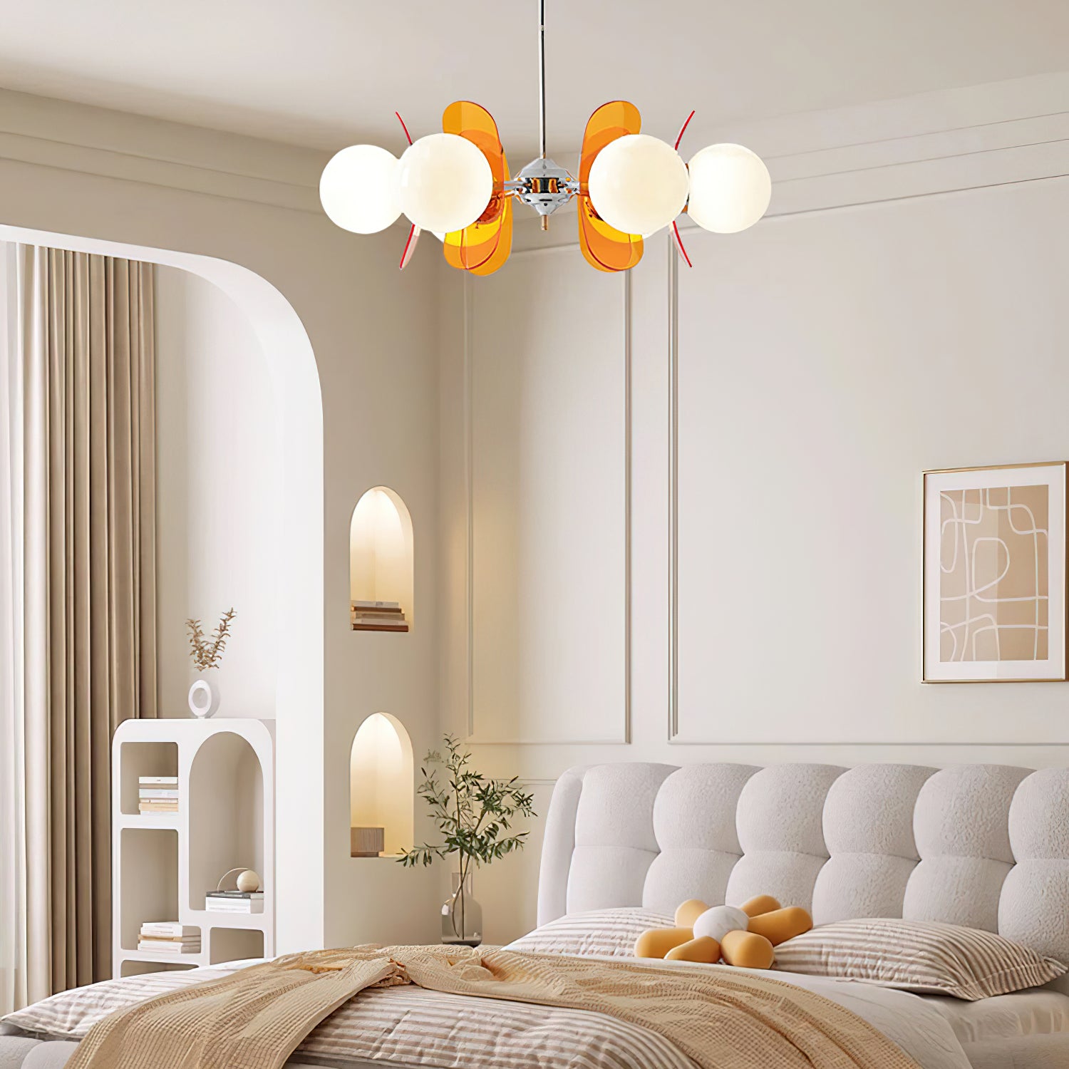 Fosforoivat kattokruunut tyylikkäällä muotoilullaan ja hienostuneilla materiaaleilla tuovat ainutlaatuista hehkua moderneihin tiloihin. Tämä lamppu on valmistettu korkealaatuisesta rautamateriaalista herkän jalustan luomiseksi, ja sen pehmeä lasivarjostin antaa tyylikkään ja lämpimän valaistuksen. Lampunvarjostimen lämpimät sävyt täydentävät metallista kiiltoa ja lisäävät sisustukseen taiteellista ilmettä. Fosforoiva kattokruunu ei ole vain valaisin, vaan myös koriste, joka voi parantaa koko huoneen tunnelmaa.