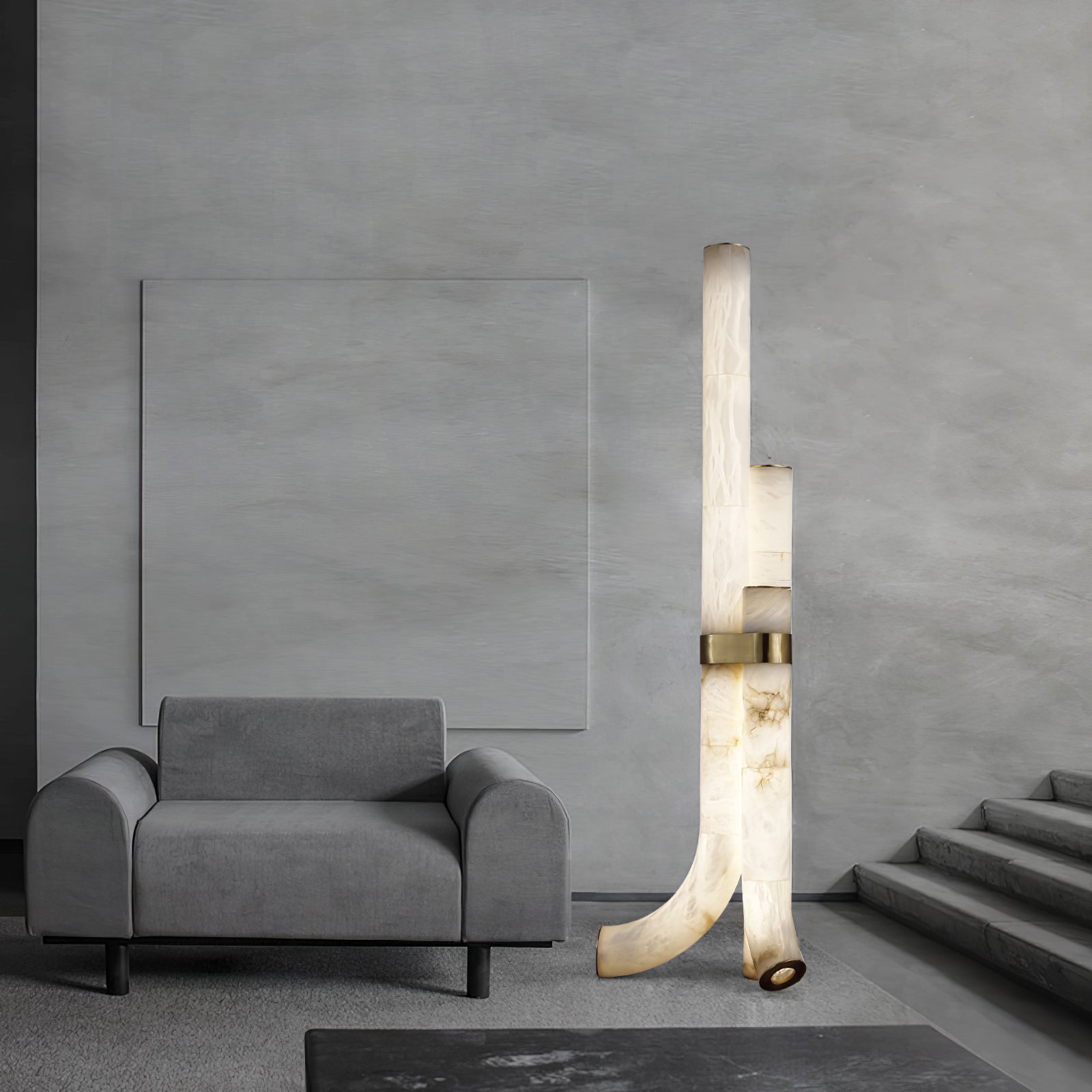 Tässä putkimarmorilattiavalaisimessa on kolme marmoriputkia, jotka on yhdistetty ainutlaatuiseen geometriseen tyyliin modernin, minimalistisen ilmeen saamiseksi. Nauti luonnonkiven kauneudesta, joka on valaistu lämpimällä hehkulla elegantin ja hienostuneen tunnelman luomiseksi.