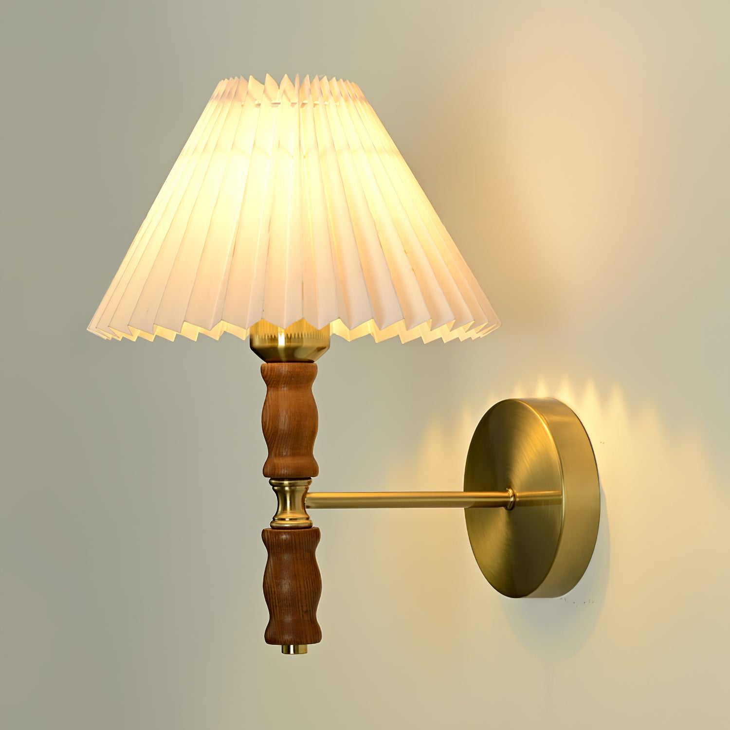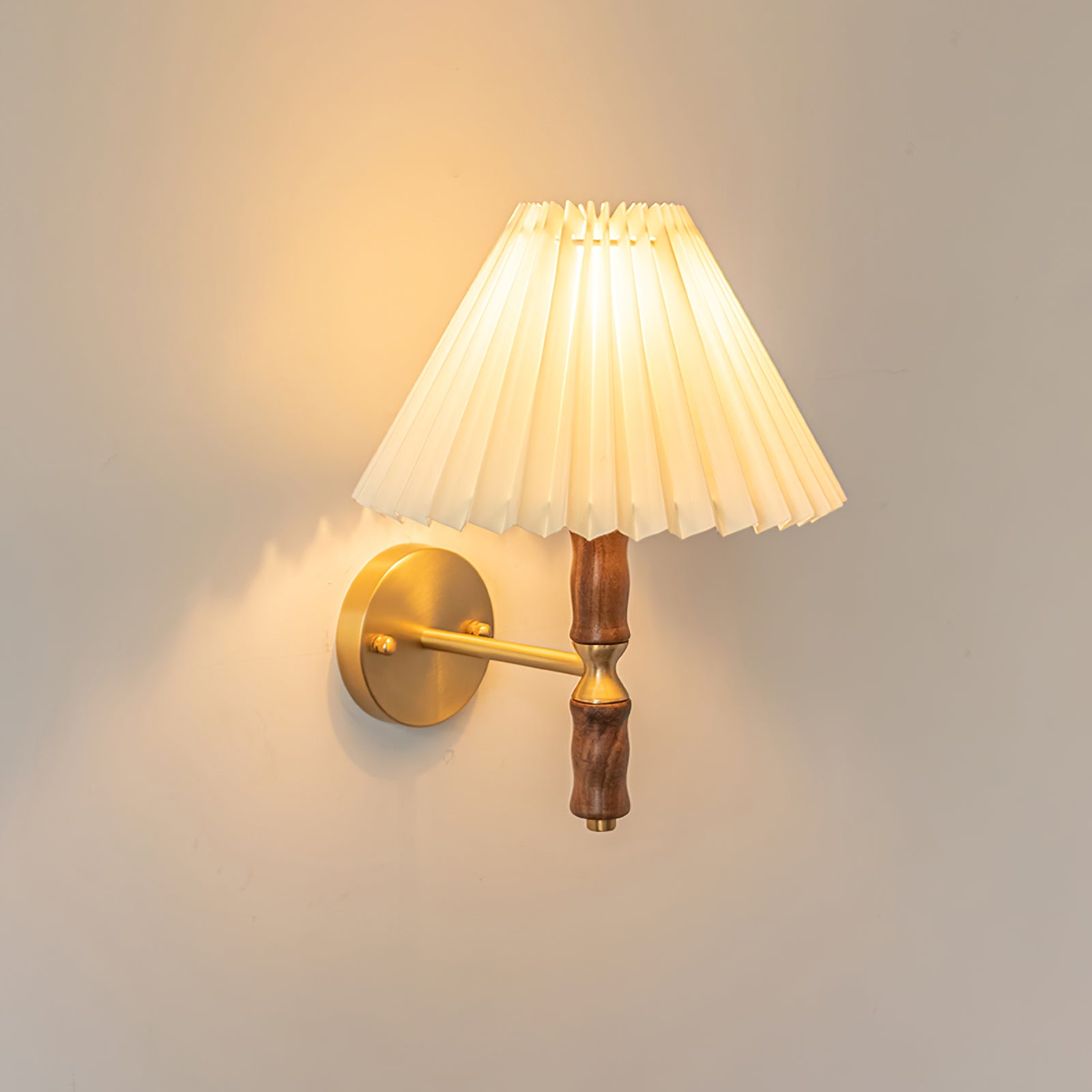 Esittelemme upean laskostetun pähkinäseinävalaisimen – pakollinen lisä kotisi sisustuskokoelmaasi. Tämä moderni valaisin huokuu hienostunutta viehätysvoimaa, joka kohottaa minkä tahansa huoneen tunnelmaa. Se on valmistettu kauniista saksanpähkinä- ja kangassekoituksesta, ja se säteilee lämmintä ja kutsuvaa hehkua, joka tekee varmasti vaikutuksen vieraasi.
