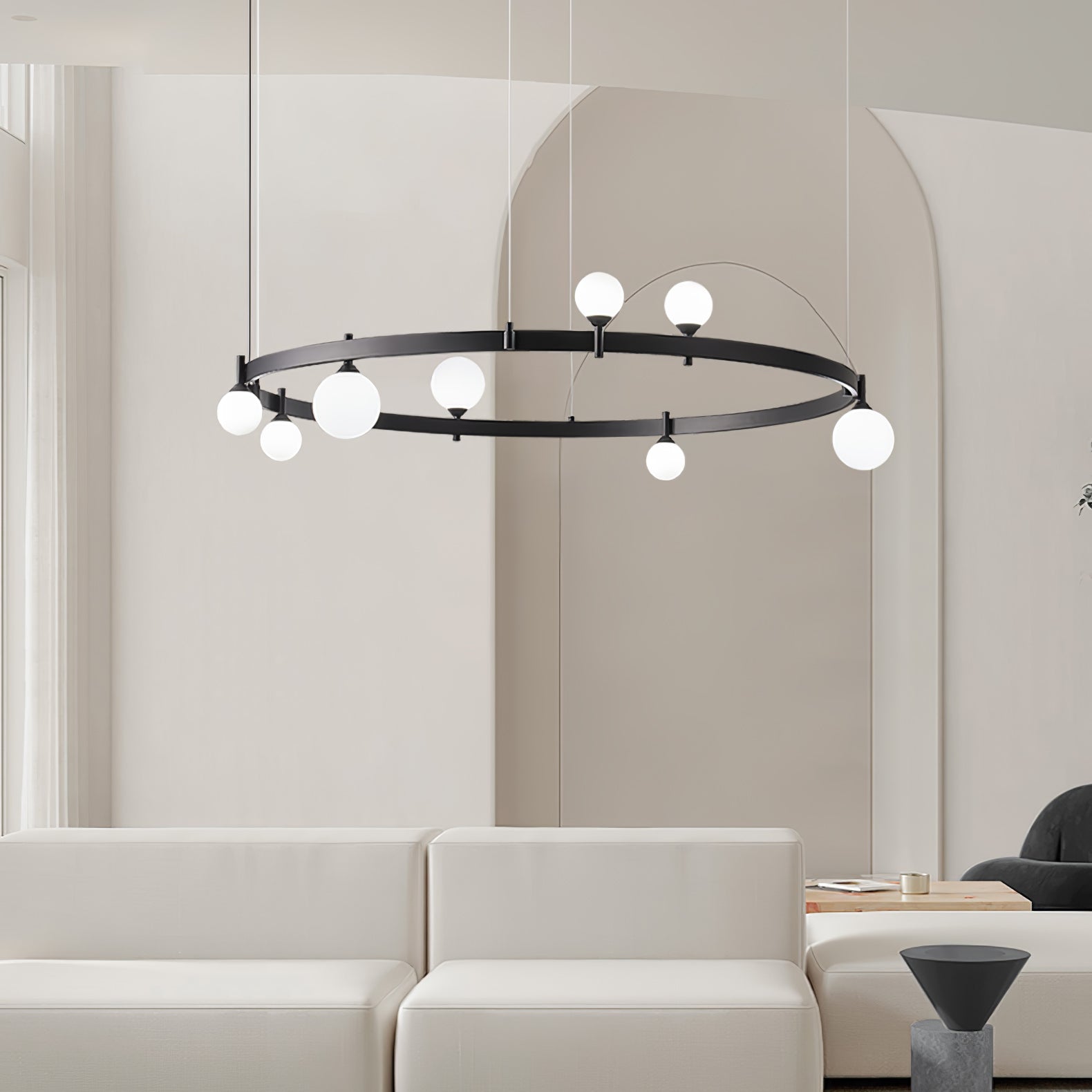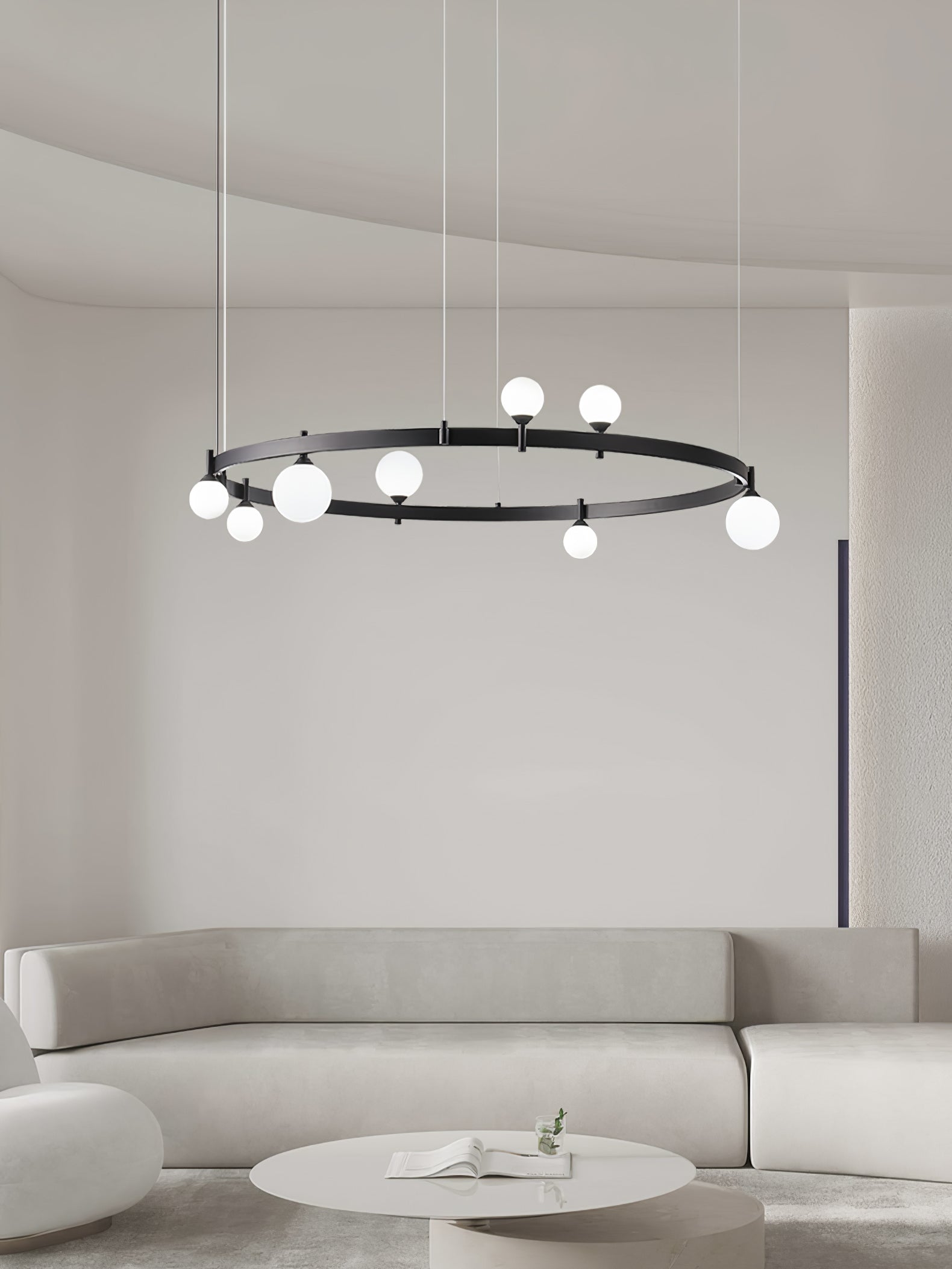 Asenna upea Pomin pyöreä kattokruunu ja lisää kotiisi ikoninen ilme! Tämä hämmästyttävä muotoilu leikkii kiekoilla ja palloilla luoden kiehtovaa tasapainoa ja varjoja, muuttaen tilasi rauhalliseksi ja meditatiiviseksi ilmapiiriksi. Valaise kotisi tyylillä!