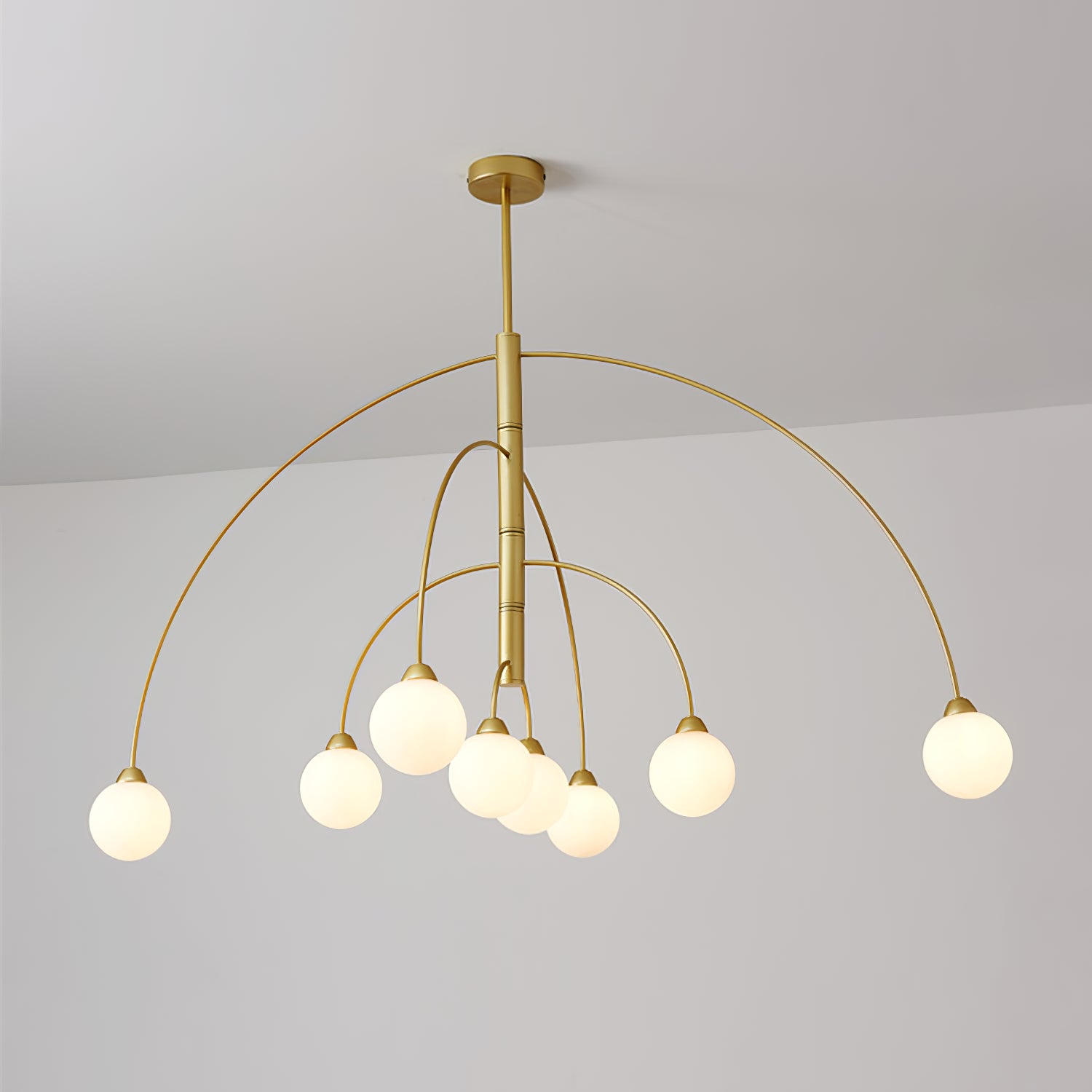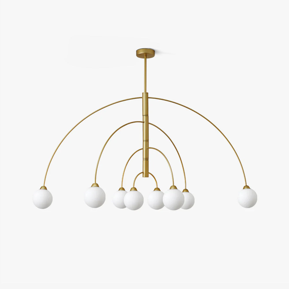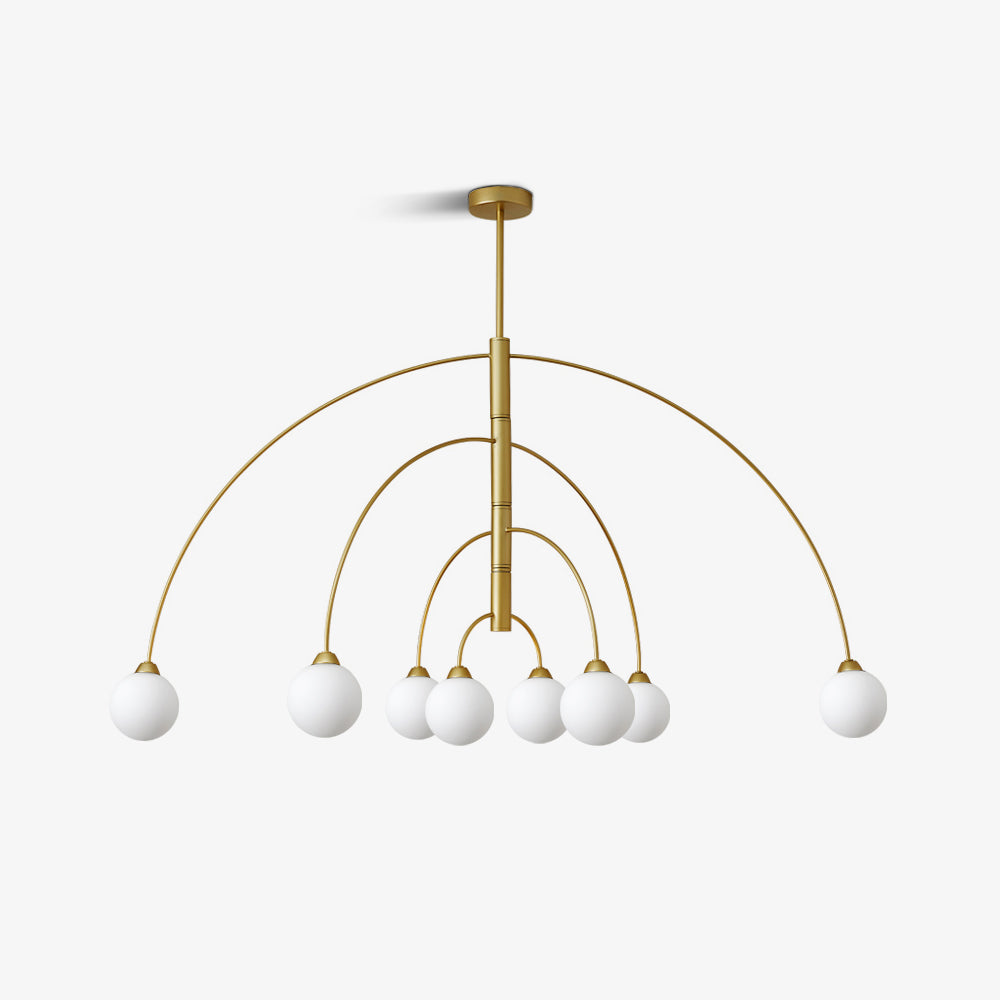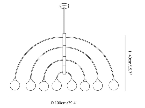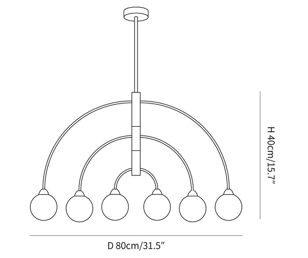 6 päätä Koko: Halkaisija 80 cm x K 40 cm / ∅ 31,5″ x K15,7″ 8 päätä Koko: Halkaisija 100 cm x K 40 cm / ∅ 39,4″ x K15,7″ Tiedot Materiaali: Alumiini. Valonlähde: LED- tai halogeenilamppu (G9) Valonlähteen perustyyppi: G9. Jännite: AC 110-240V Runkopinnat: kulta, musta Shade Finish: Valkoinen. Asennus: kattoon. Kosteudenkestävyys: IP 20 Kosteusluokitus, ei vedenpitävä, vain sisäkäyttöön. Ympäristö: Sisätilat. Johdot: kiinteä. Ohjaus: Yhteensopiva yleisten painokytkimien kanssa (ei sisälly). 19,7" riippukorkeustanko. Voidaan pidentää pyynnöstä.