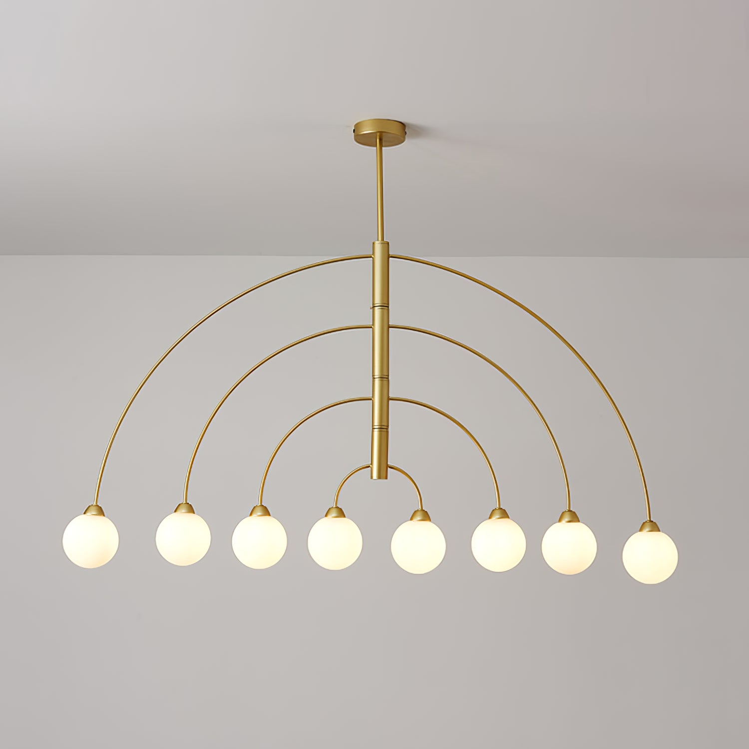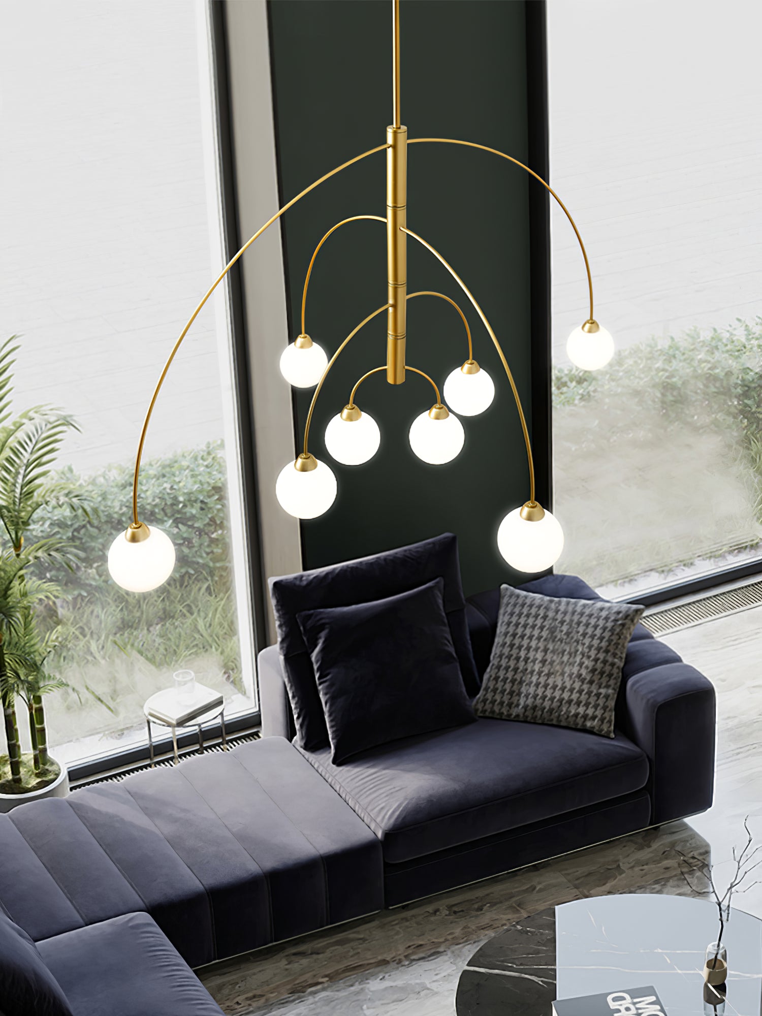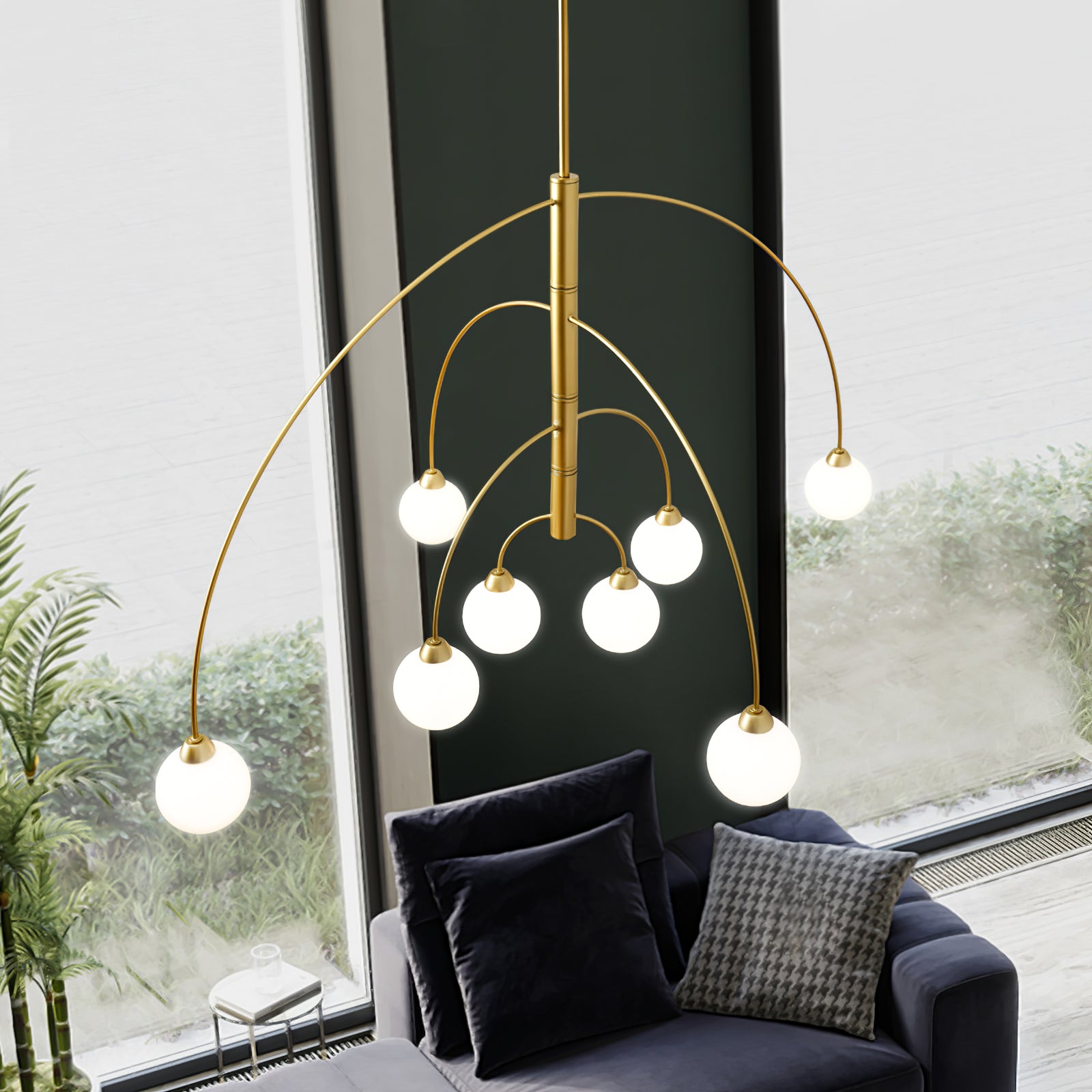 6 päätä Koko: Halkaisija 80 cm x K 40 cm / ∅ 31,5″ x K15,7″ 8 päätä Koko: Halkaisija 100 cm x K 40 cm / ∅ 39,4″ x K15,7″ Tiedot Materiaali: Alumiini. Valonlähde: LED- tai halogeenilamppu (G9) Valonlähteen perustyyppi: G9. Jännite: AC 110-240V Runkopinnat: kulta, musta Shade Finish: Valkoinen. Asennus: kattoon. Kosteudenkestävyys: IP 20 Kosteusluokitus, ei vedenpitävä, vain sisäkäyttöön. Ympäristö: Sisätilat. Johdot: kiinteä. Ohjaus: Yhteensopiva yleisten painokytkimien kanssa (ei sisälly). 19,7" riippukorkeustanko. Voidaan pidentää pyynnöstä.