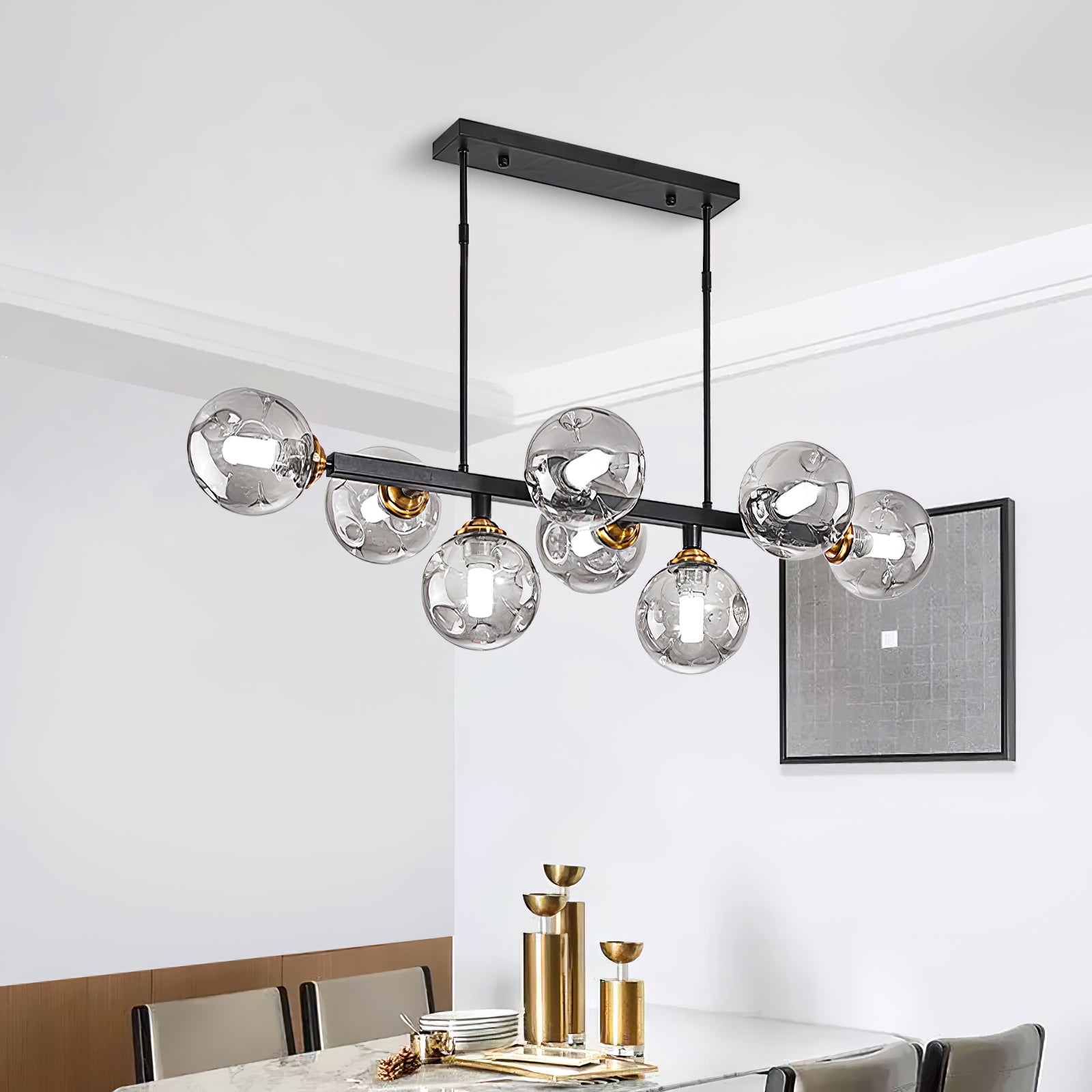 Primas Glass -kattokruunu voi koristaa mitä tahansa tilaa hienostuneella kauneudellaan. Valmistettu lasista, se lisää ripauksen eleganssia mihin tahansa ruokailutilaan. Muuta tunnelma välittömästi tällä kauniilla kattokruunulla.