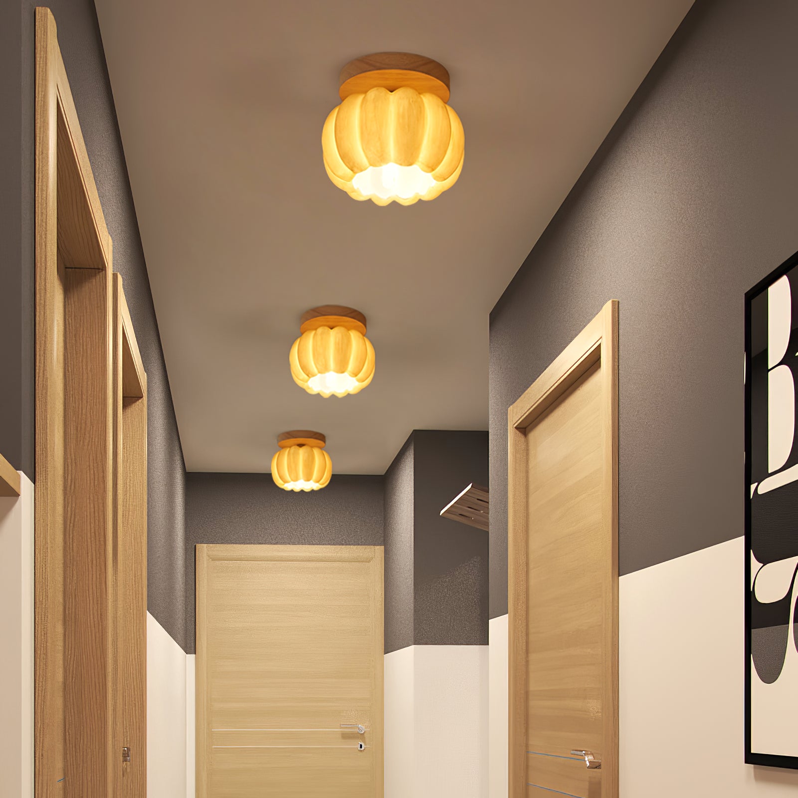 Pumpkin Ceiling Light on valmistettu ympäristöystävällisestä hartsista ja puusta, mikä tarjoaa luotettavan ja pitkäkestoisen valonlähteen. Tämä tyylikäs valaisin on tyylikäs, kestävä ja täydellinen luomaan lämpimän ja kodikkaan tunnelman.