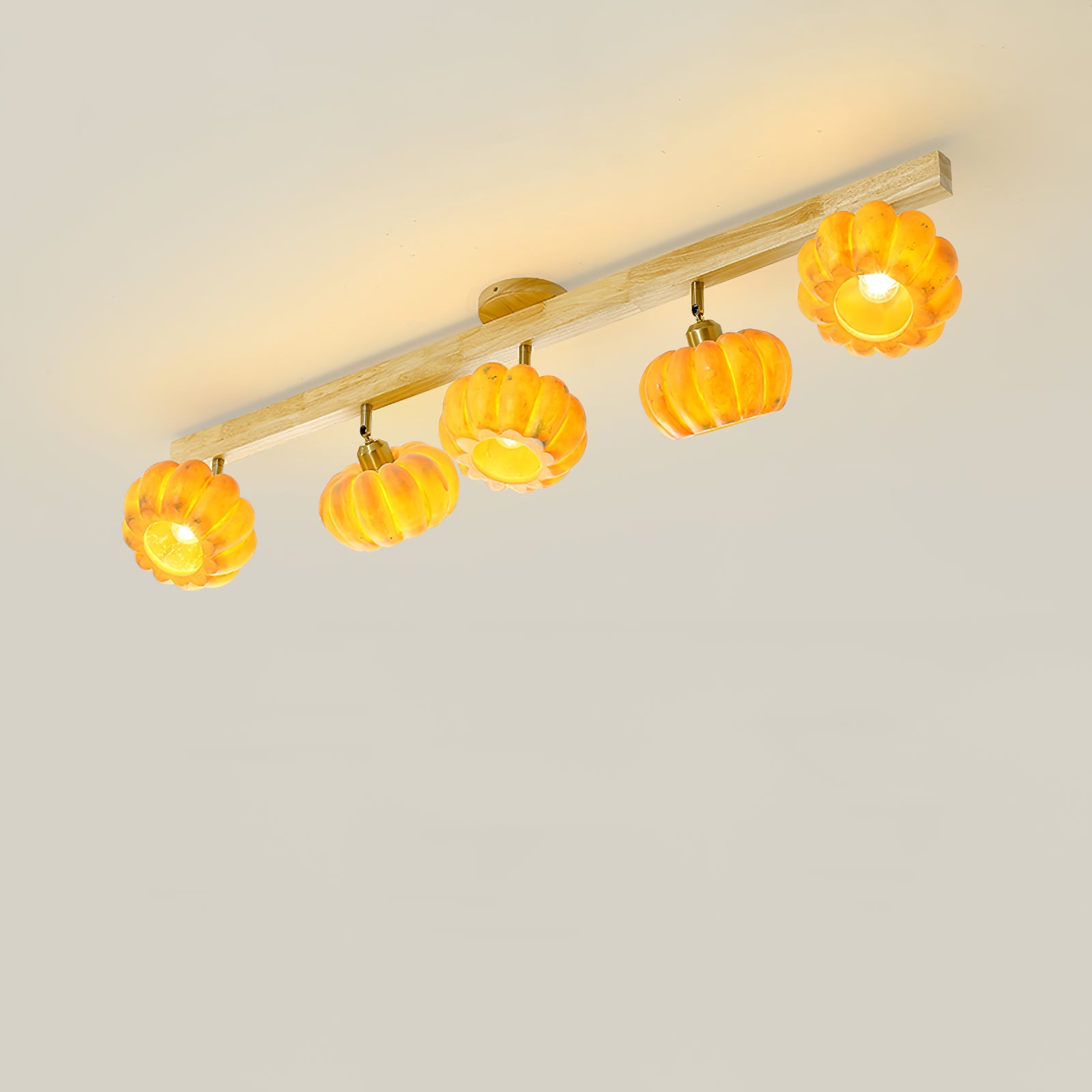 Pumpkin Multi Head Ceiling Lamp on valmistettu ympäristöystävällisestä hartsi- ja puurakenteesta, joten se on ihanteellinen valinta mihin tahansa kestävään asuintilaan. Selkeä Pumpkin-muotoilu tuo ainutlaatuista tyyliä mihin tahansa huoneeseen. Nauti maksimaalisesta valosta useilla päillä.