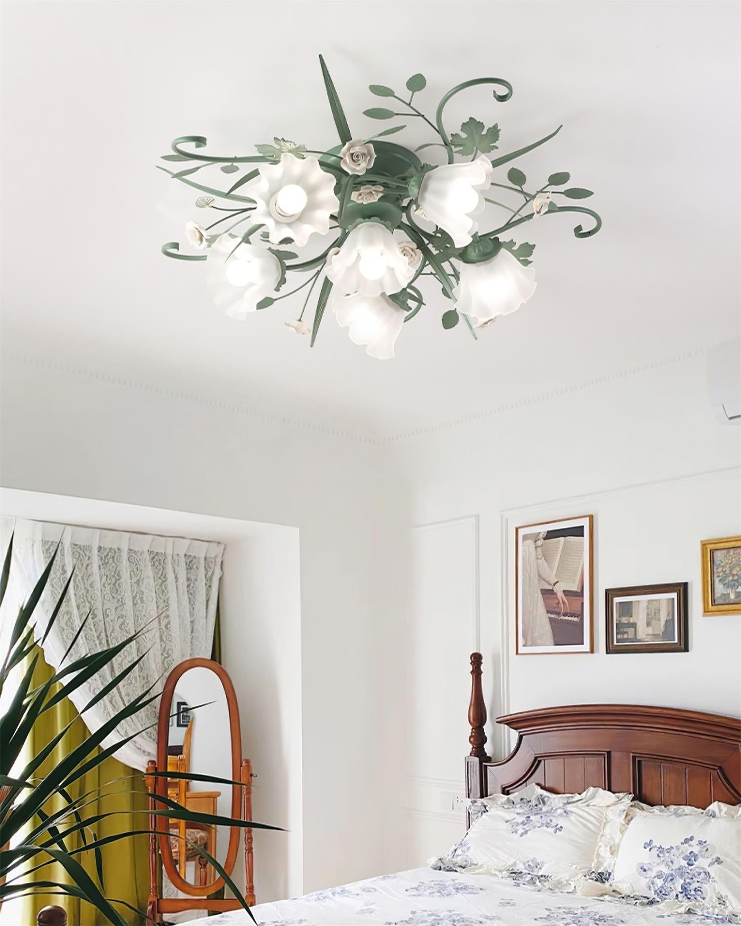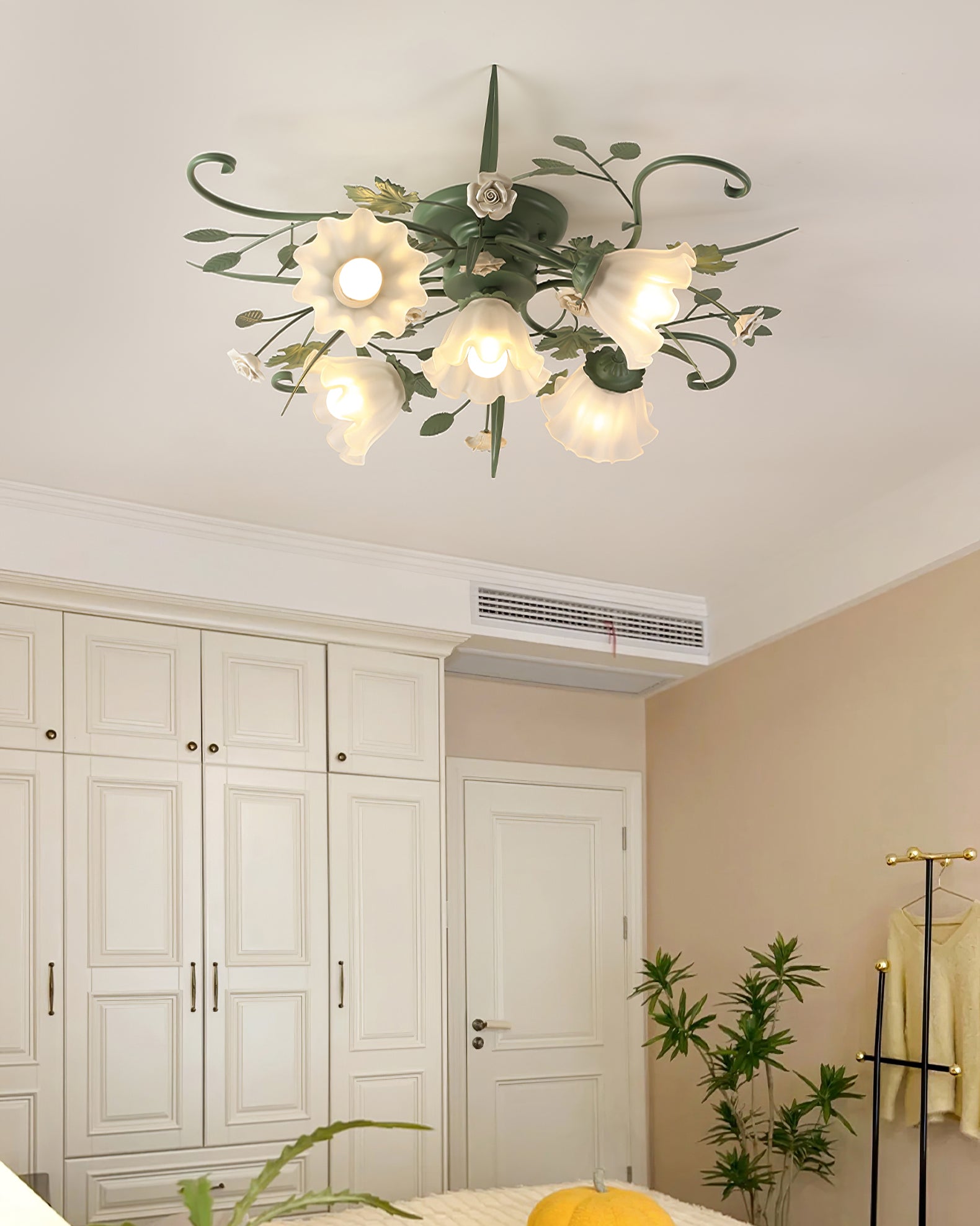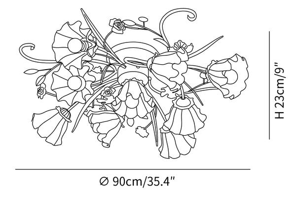 Quercia-kattovalaisimessa on lasikukkakuvio, joka lisää kauneutta mihin tahansa huoneeseen. Terälehdet ja lehtimuodot luovat visuaalisesti upean muotoilun, joka vahvistuu entisestään, kun lamppu on valaistu. Täydellinen lisäämään ripauksen glamouria mihin tahansa kotiin.