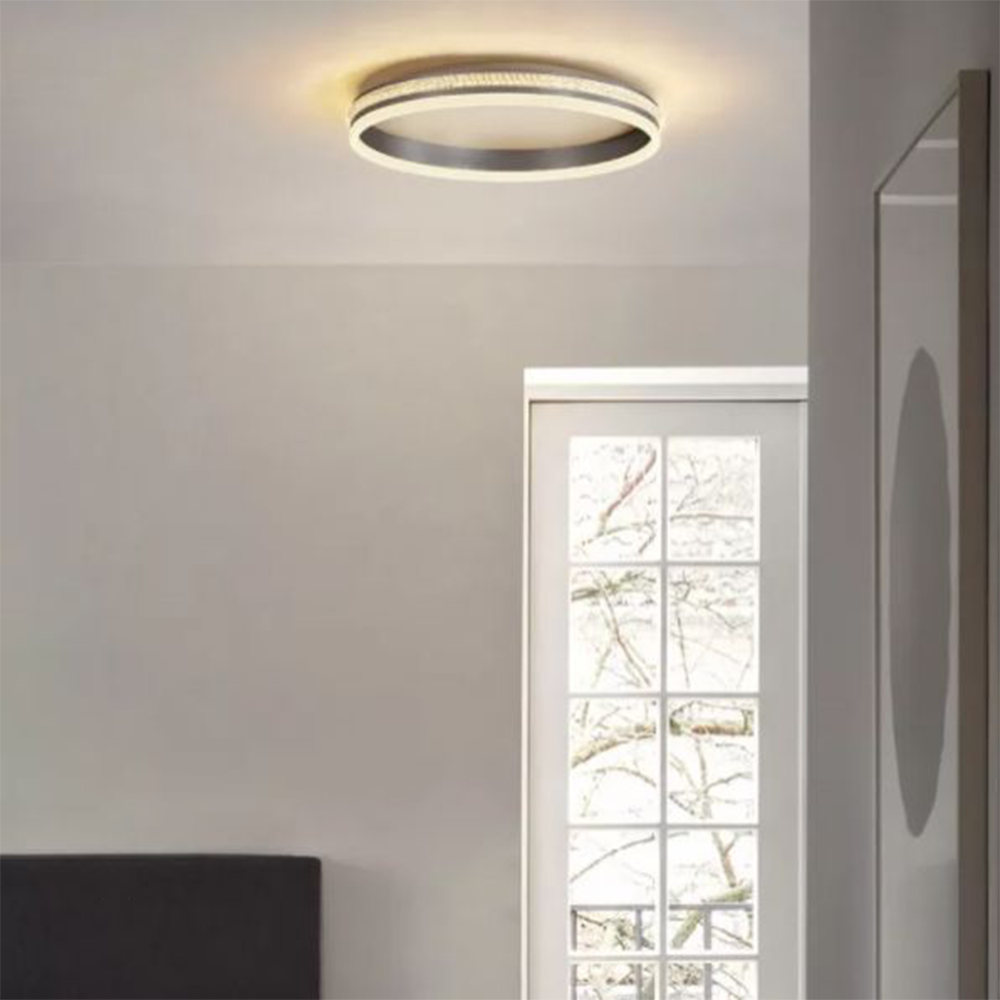 - Moderni renkaan muotoinen kattovalaisin, joka on johdettu renkaan ulkorenkaan ympärille, tarjoaa riittävästi valoa ja kirkkautta.