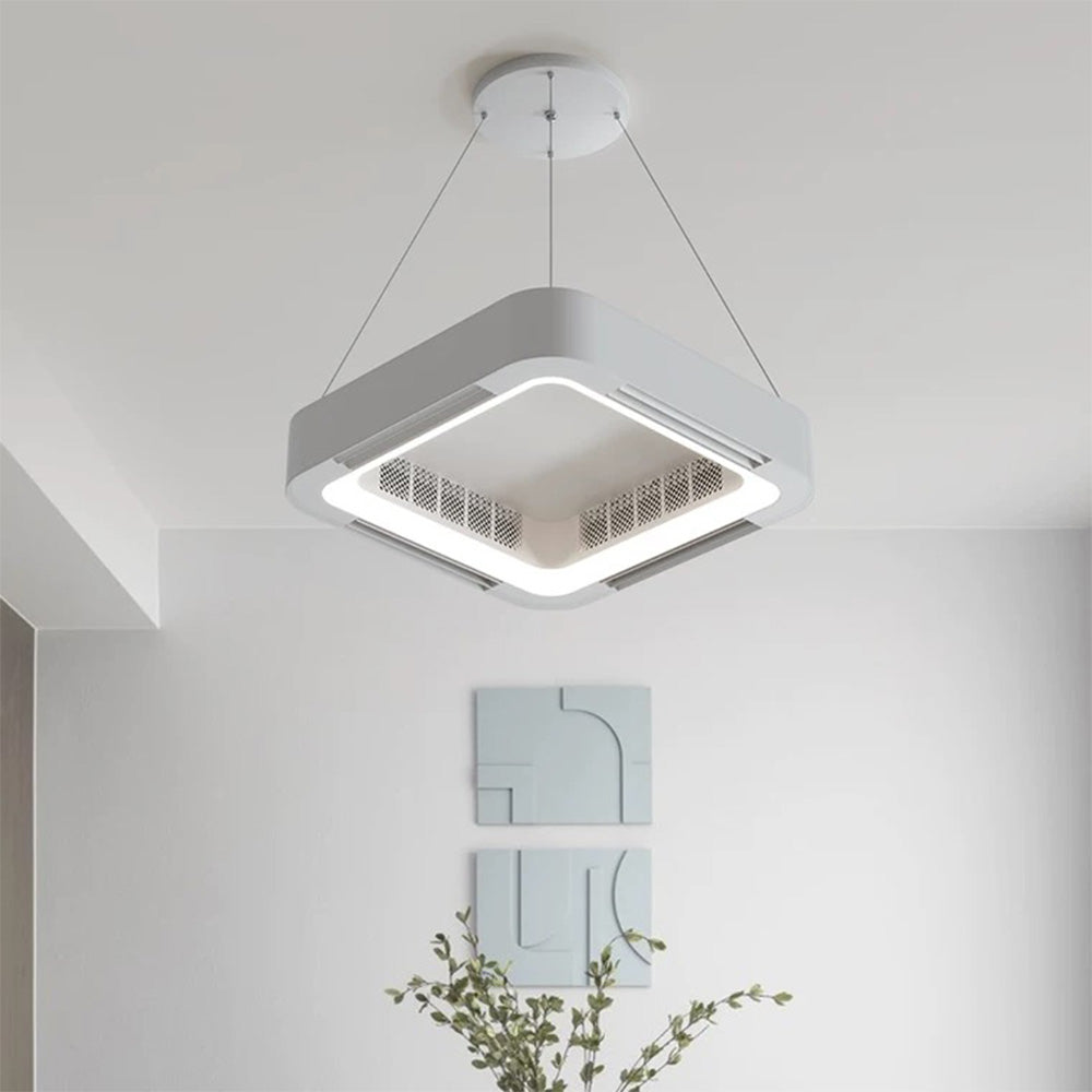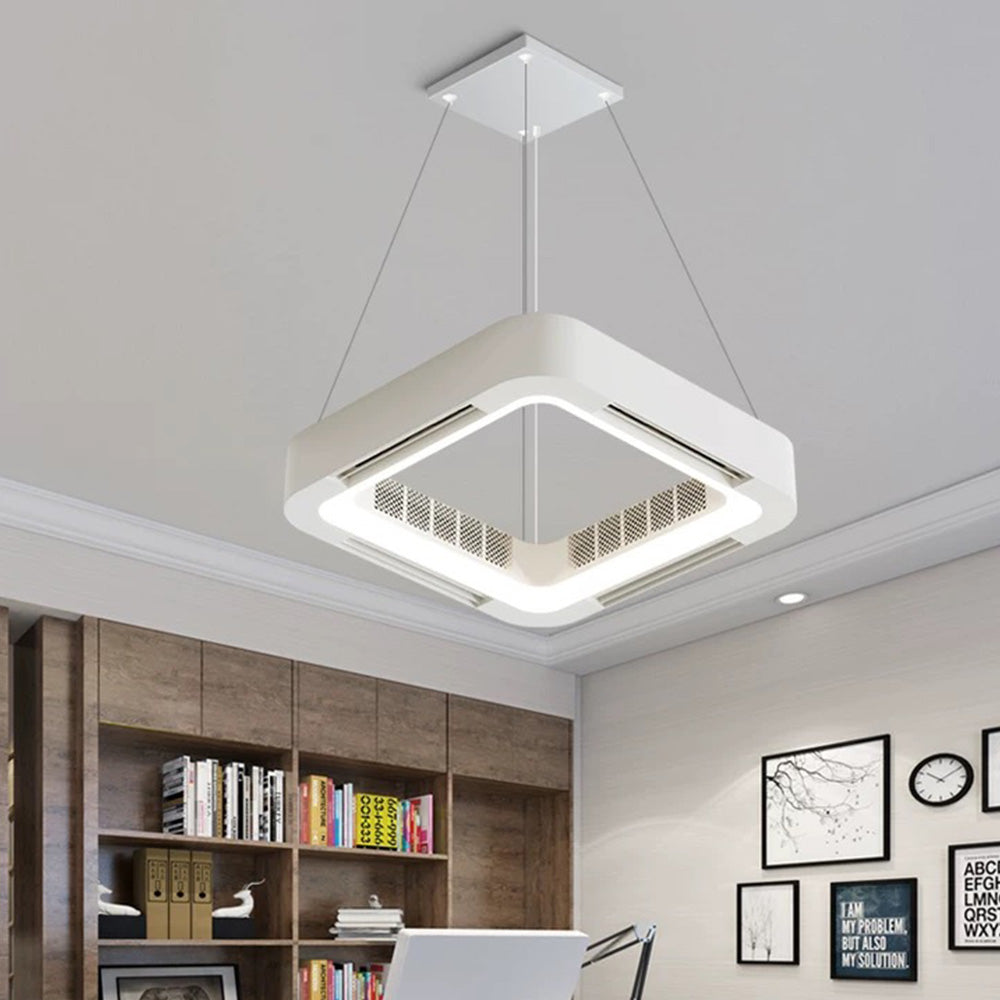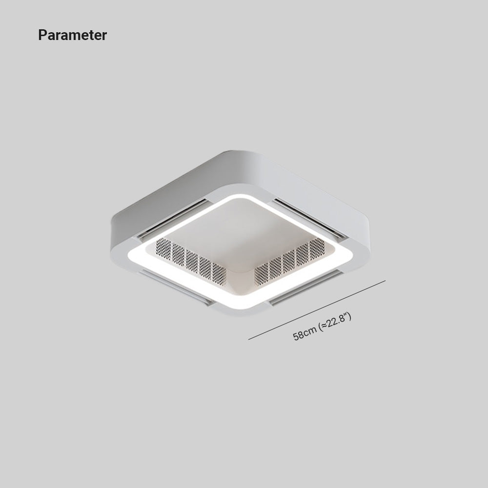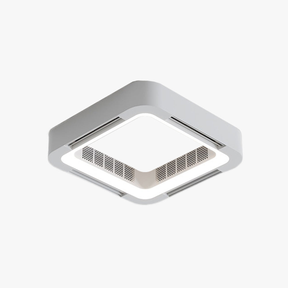 - Tälle kattotuulettimelle on ominaista sen ainutlaatuinen neliön muotoinen muotoilu ja integroidut tuuletusaukot. Neliön muotoinen ulkomuoto tekee siitä esteettisesti miellyttävämmän käytössä, kun taas tuuletusaukot on suunniteltu tarjoamaan mukavampaa ilmavirtaa miellyttävämpään sisäympäristöön.