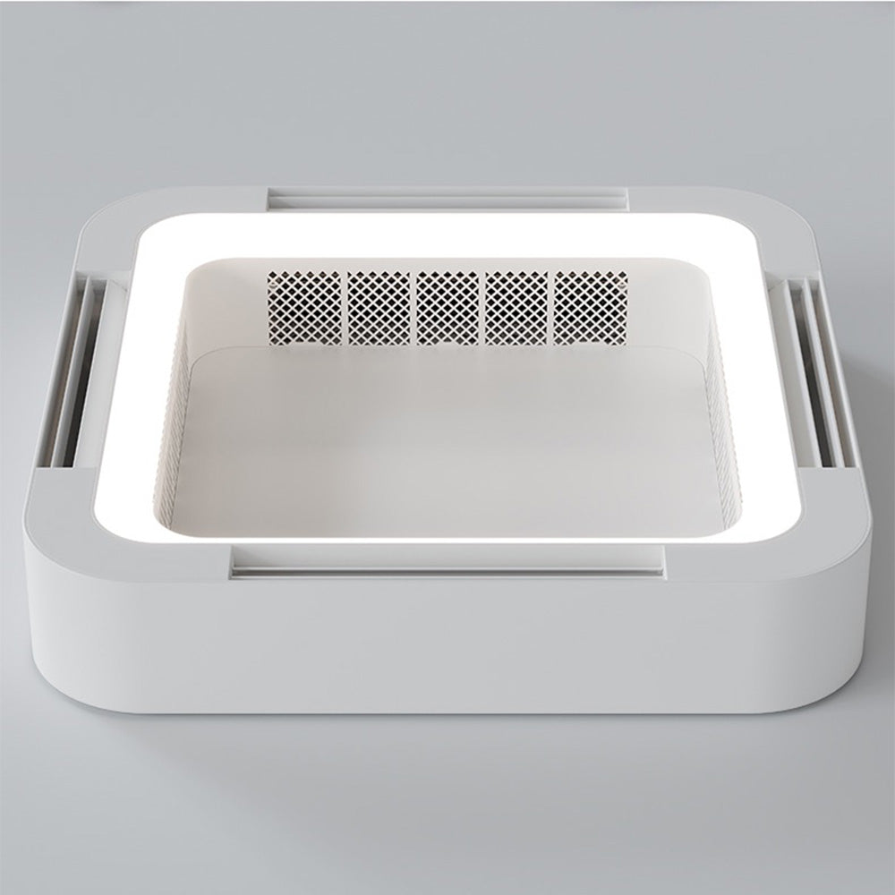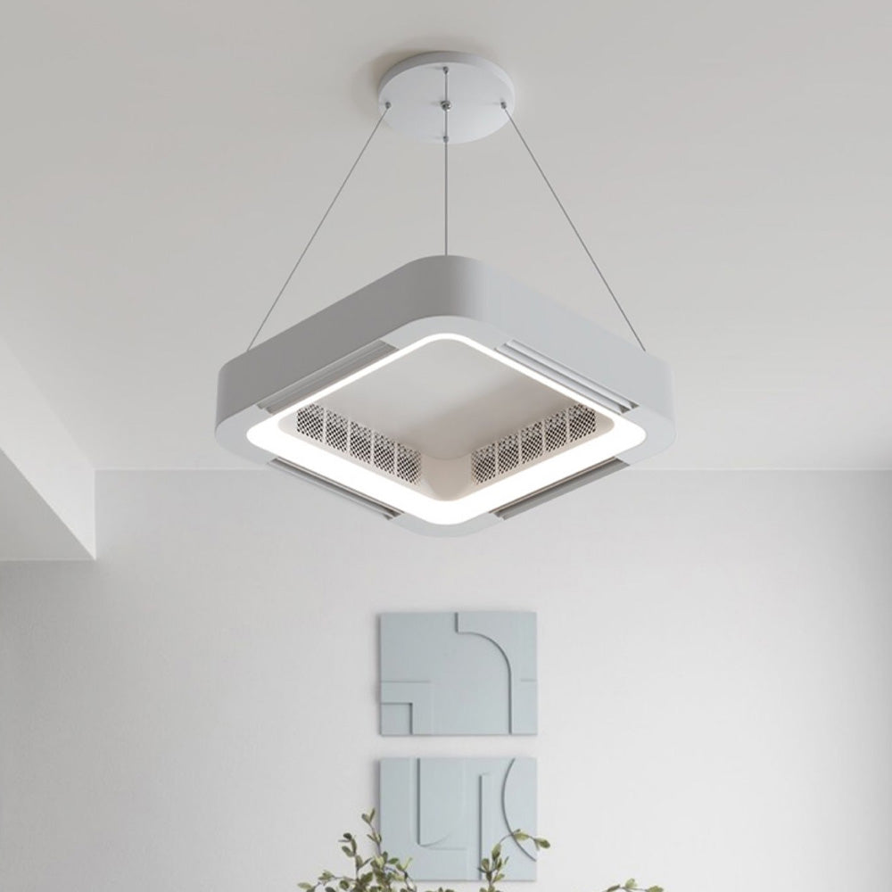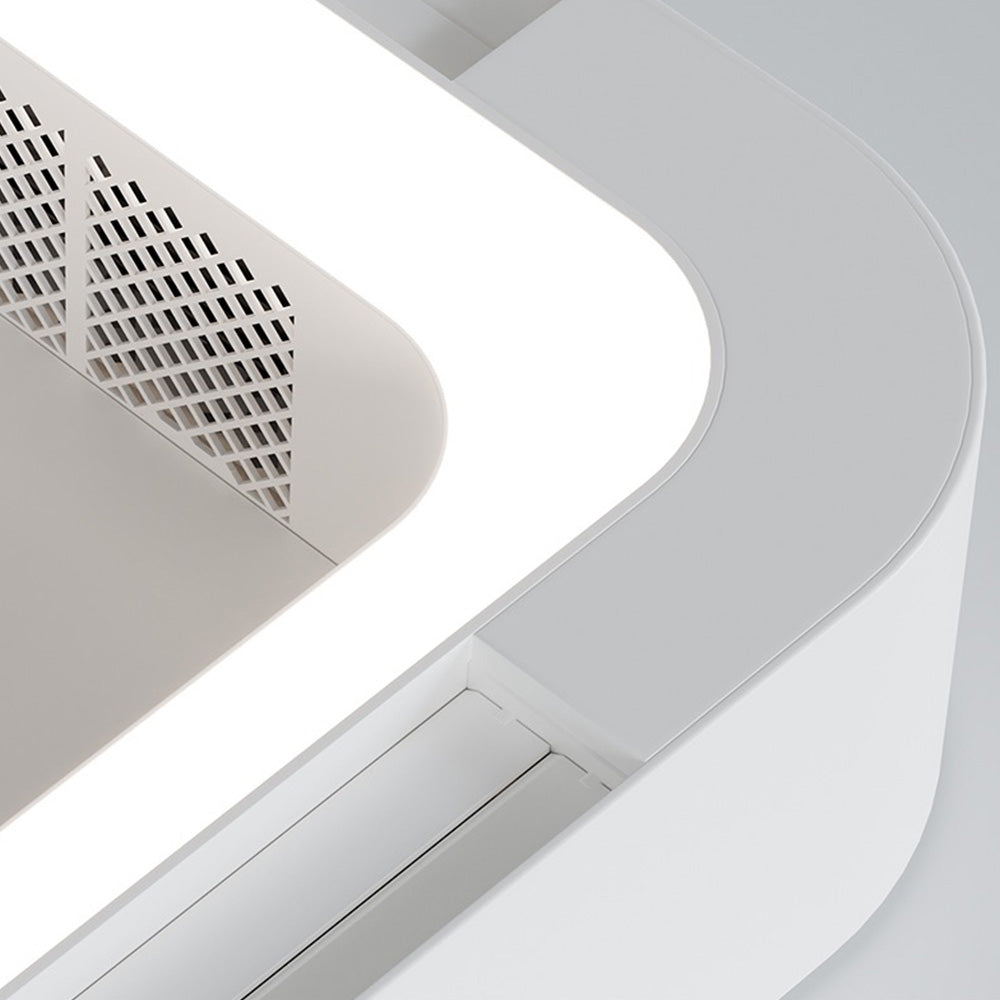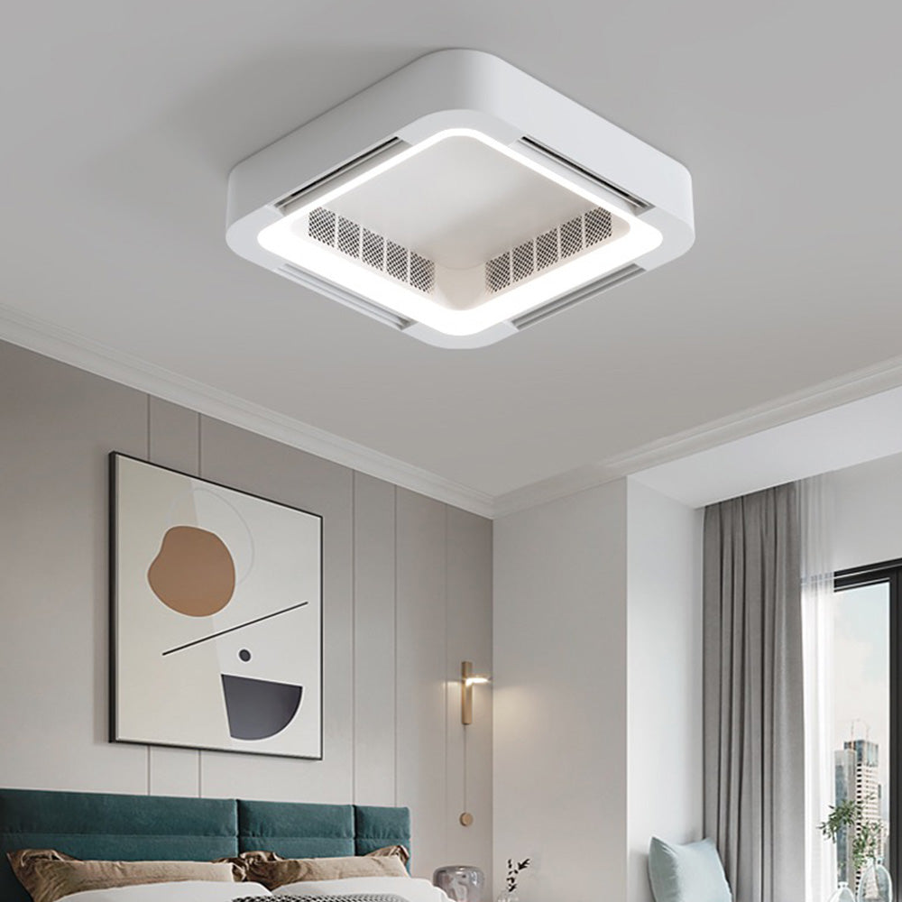 - Tälle kattotuulettimelle on ominaista sen ainutlaatuinen neliön muotoinen muotoilu ja integroidut tuuletusaukot. Neliön muotoinen ulkomuoto tekee siitä esteettisesti miellyttävämmän käytössä, kun taas tuuletusaukot on suunniteltu tarjoamaan mukavampaa ilmavirtaa miellyttävämpään sisäympäristöön.