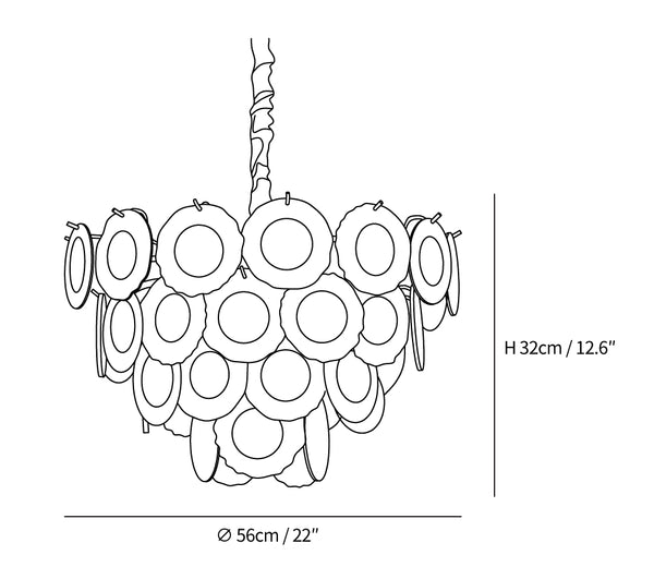 Koko: ∅ 22″ x H 12.60_0_1_0_0303 Halkaisija 56cm x K 32cm (E14*9)