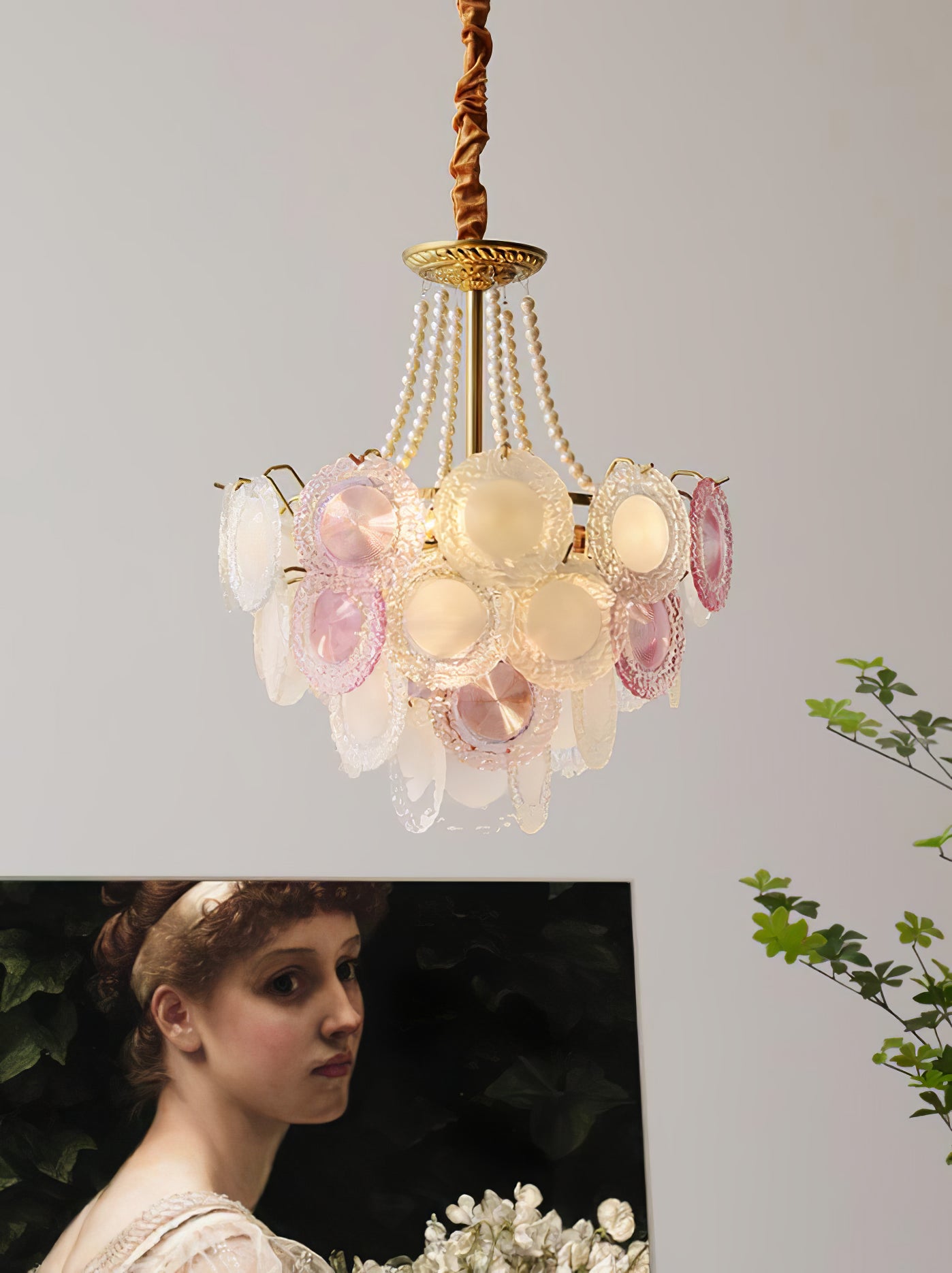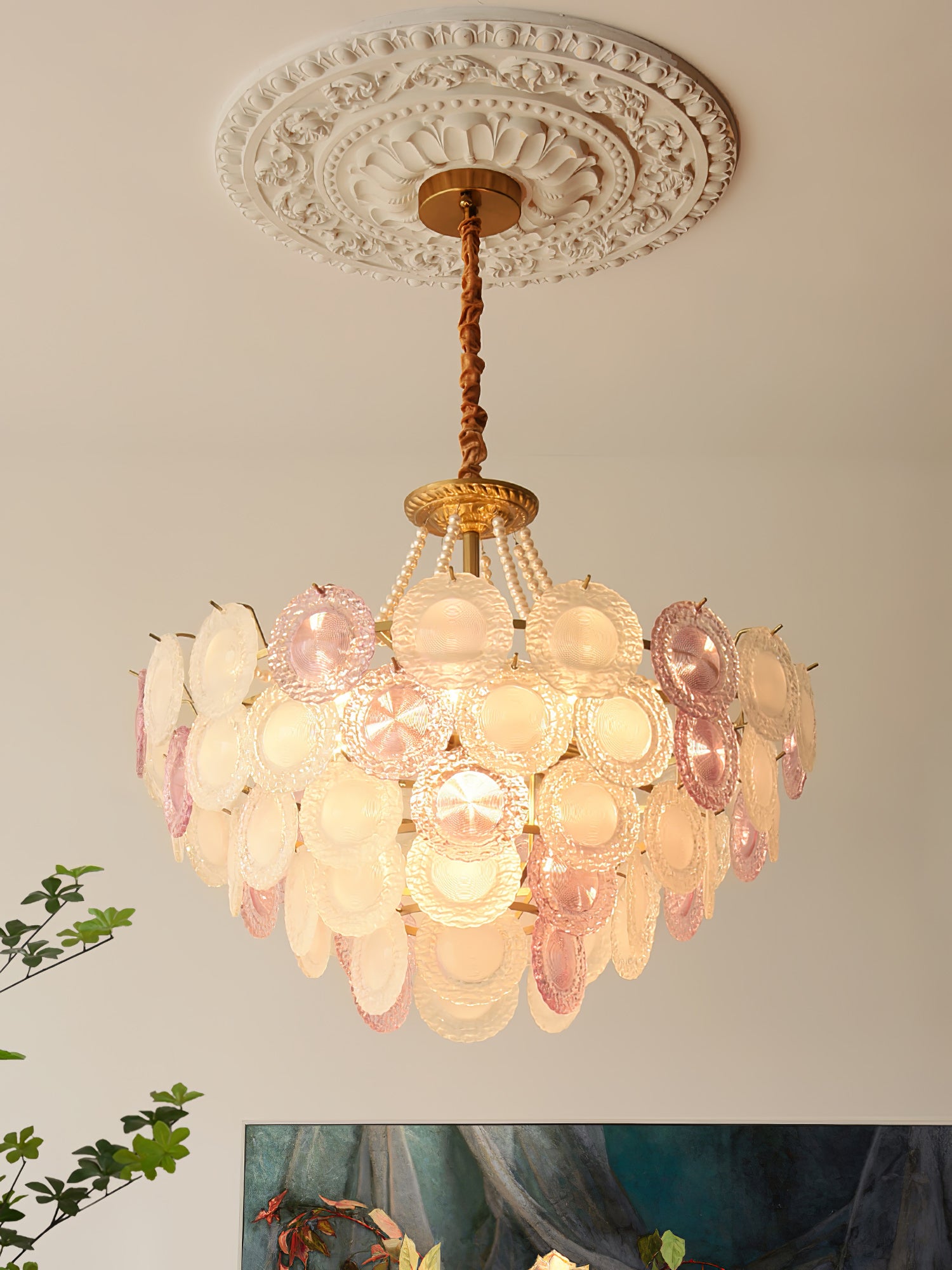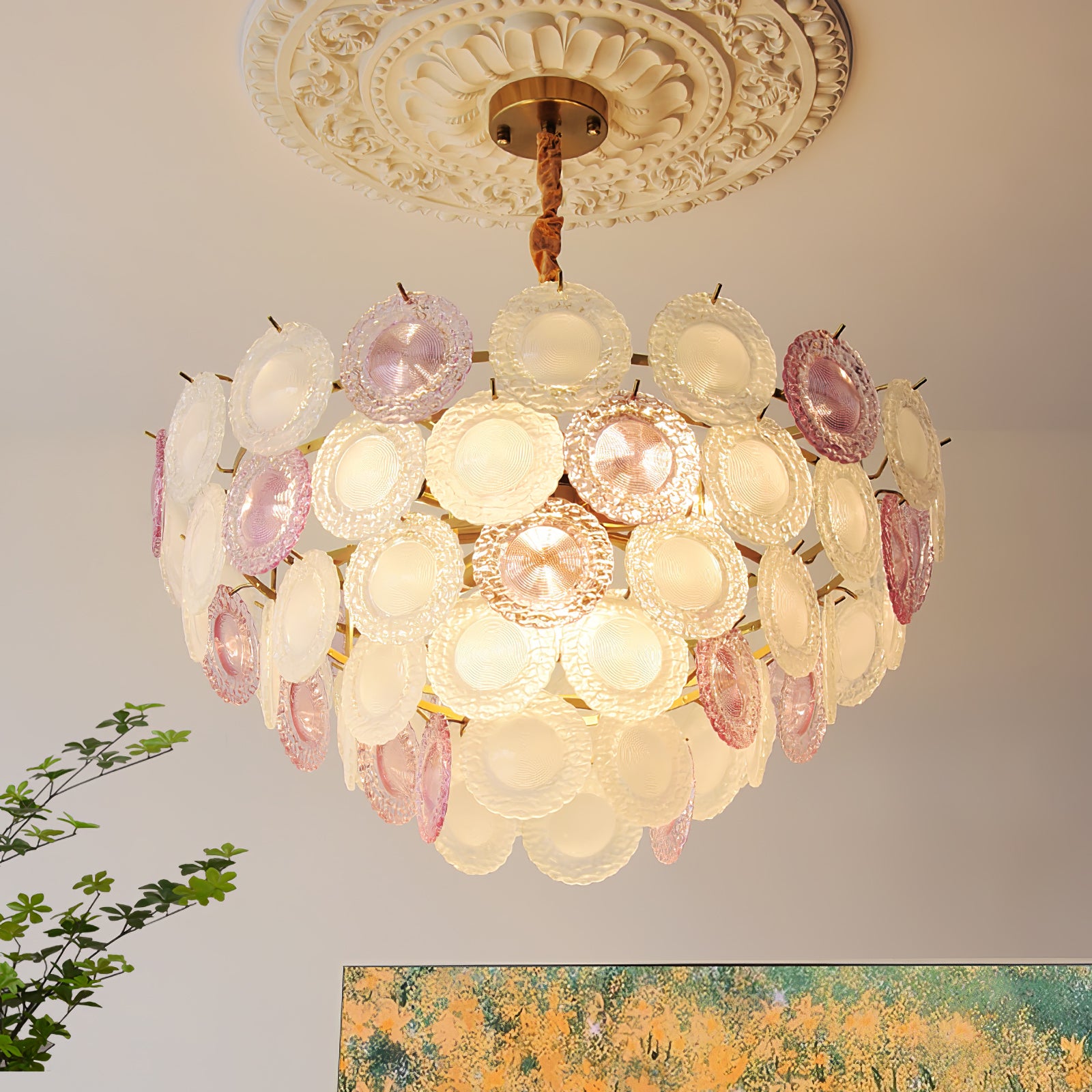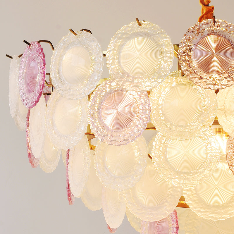 Rainbow-kattokruunu lisää leikkisää ja hienostunutta silausta mihin tahansa huoneeseen. Tämä haaran muotoinen kattokruunu on valmistettu lasin ja metallin sekoituksesta, ja siinä on sarja pehmeän sävyisiä lasilevyjä, joita ympäröivät herkät metallikehykset. Lasipalat on järjestetty kerrokselliseksi kuvioksi, joka muistuttaa pehmeitä terälehtiä tai makeita karkkia, mikä luo lumoavan visuaalisen vaikutelman valaistuna. Tämä köysillä verhoiltu tangosta riippuva kappale yhdistää maalaismaista charmia moderniin muotiin, ja se on täydellinen tuomaan tilaan lempeitä sävyjä ja lämmintä, kutsuvaa hehkua.