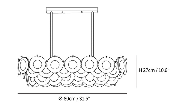 Pitkä katos Koko: ∅ 31,5″ x K 10,6″ / halkaisija 80 cm x K 27 cm (E14*8)