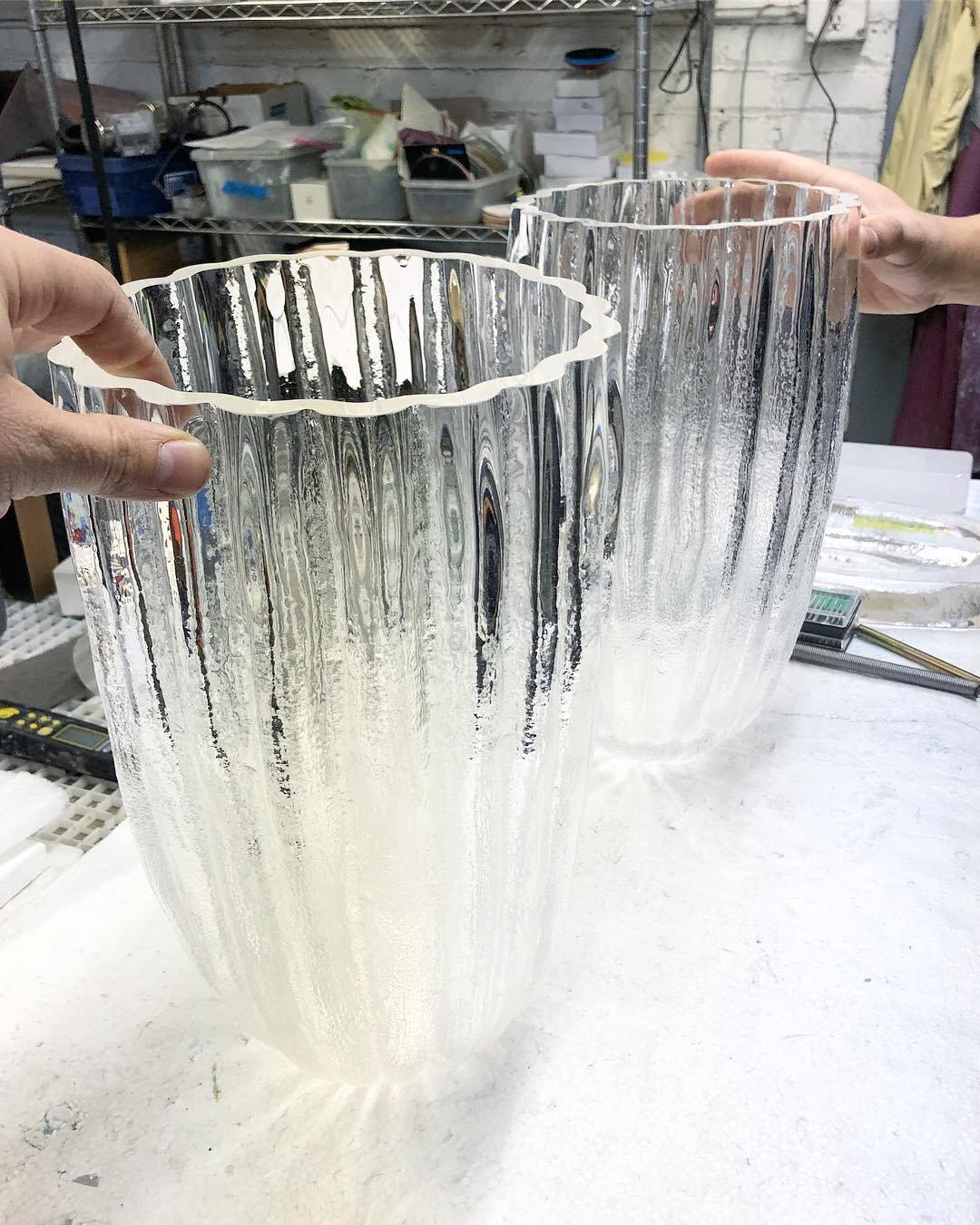 Eikä mikään jälkiruoka ole täydellinen ilman kaktusta. Tein RBS Cactus -lamput samalla tavalla kuin huonekalut: veistämällä kiinteän hiekkalohkon ja asettamalla sen pysyvästi paikalleen hartsilla. Tämä kappale sisältää lasielementin, joka puhallettiin suulla käsin veistetyksi hiekkapuhallusmuottiin.