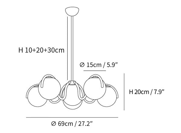 3,9″+7.9″+11.8″/10cm+20cm+30cm=23.6″/60cm Säädettävä ripustuskorkeus. Voidaan pidentää pyynnöstä.