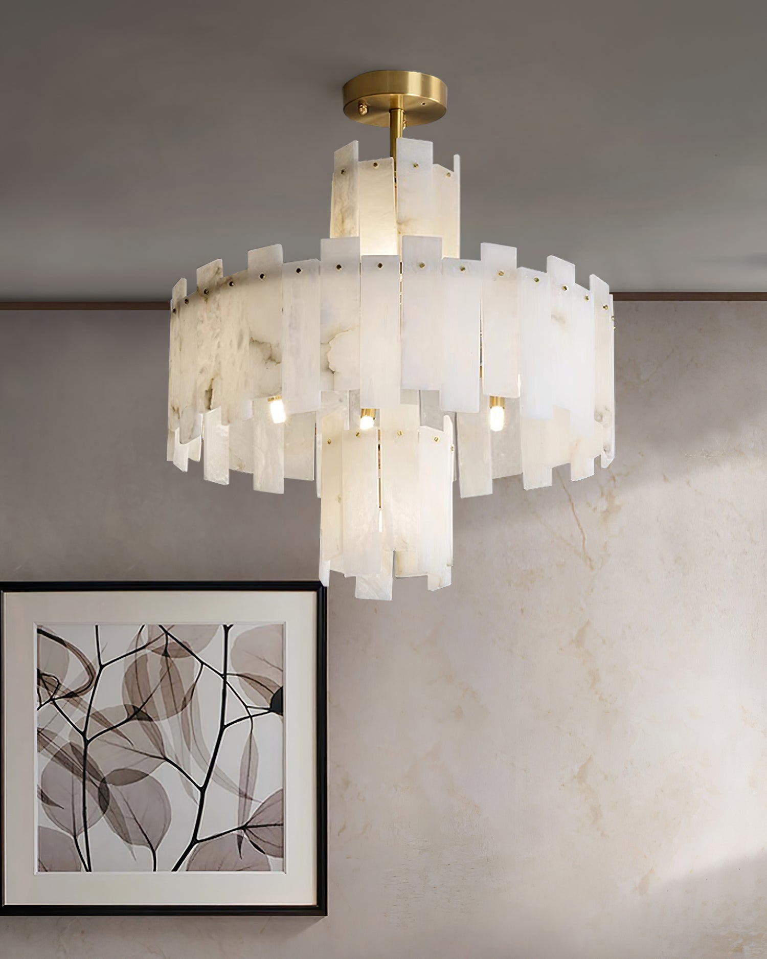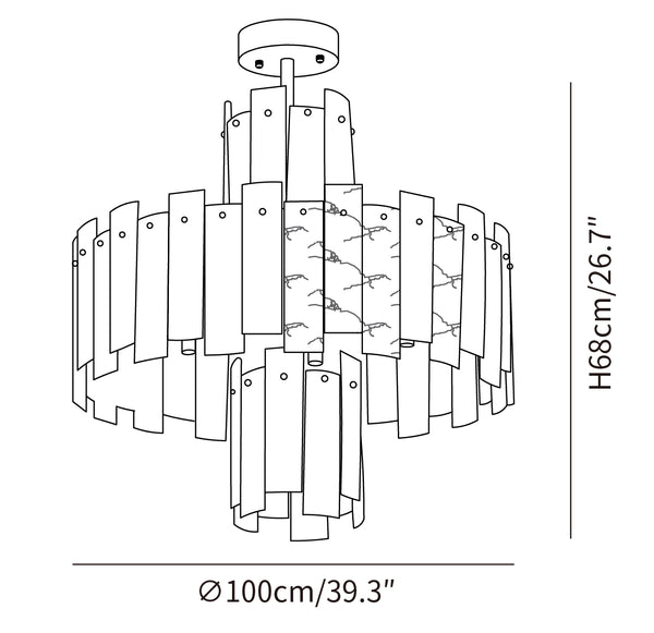 Regina Alabaster Kattokruunu on upea lisä jokaiseen moderniin kotiin. Sen pianon näppäimet tuovat tyylikkään ja hienostuneen viehätyksen sisustukseen ja kestävän art deco -glammilla. Sen moderni muoto ja ajaton muotoilu luovat täydellisen harmonian tyyliin ja ylellisyyteen.