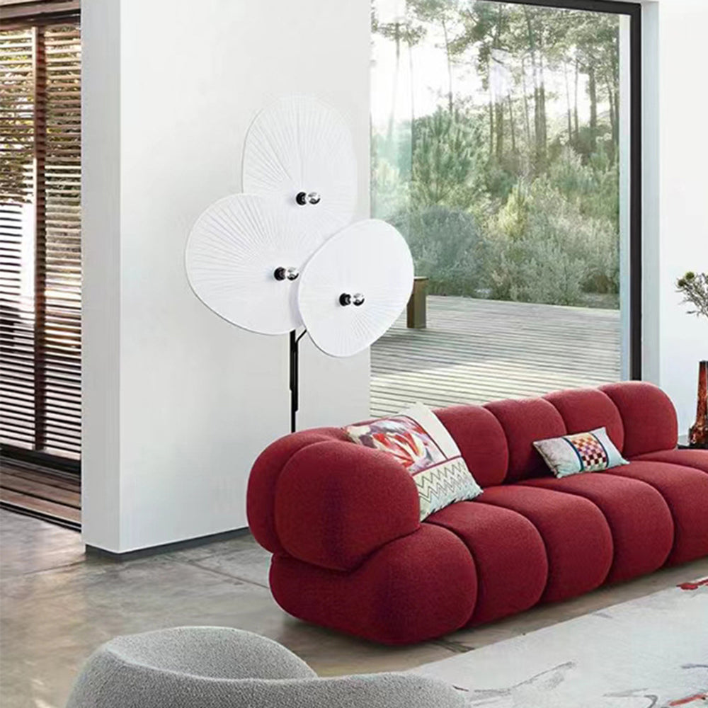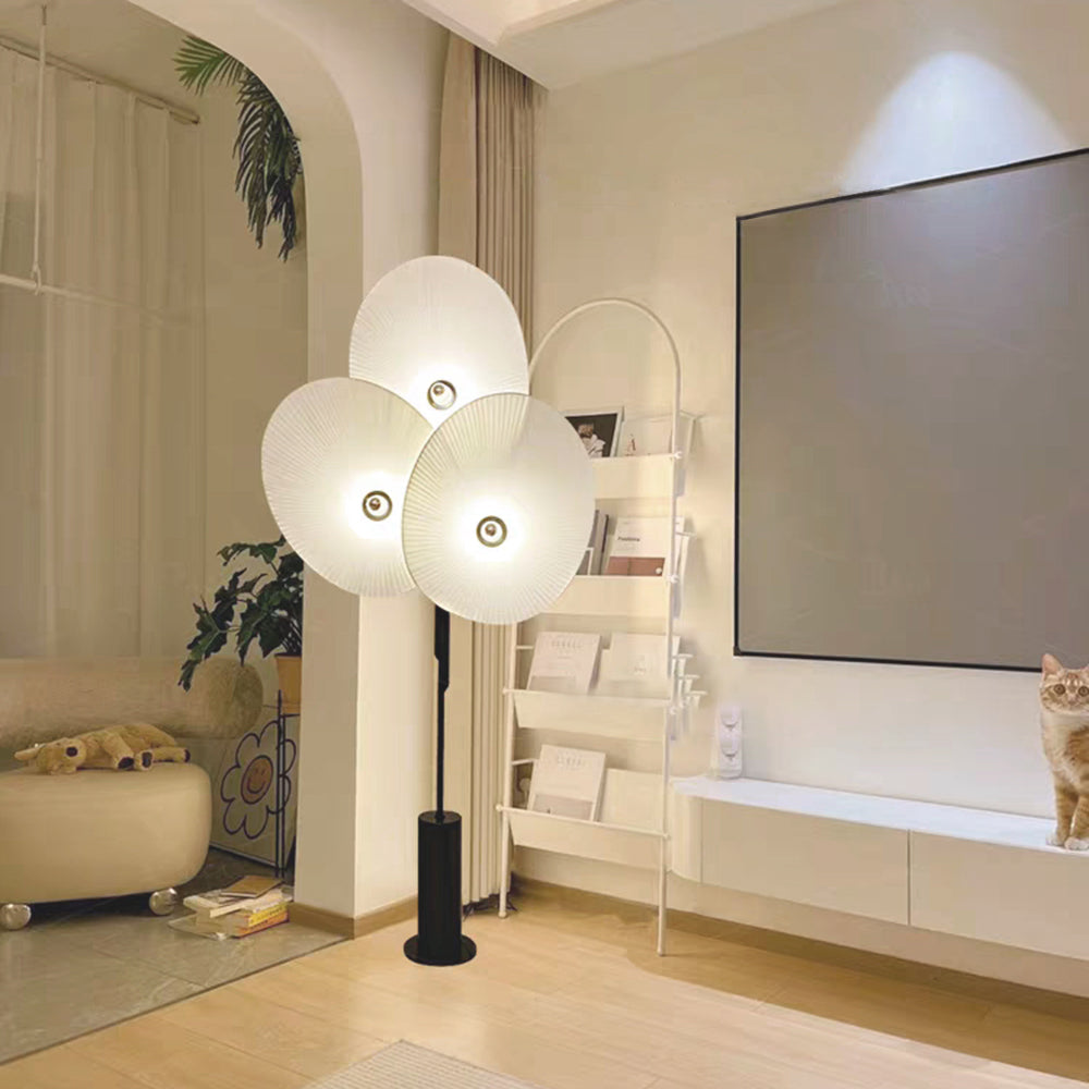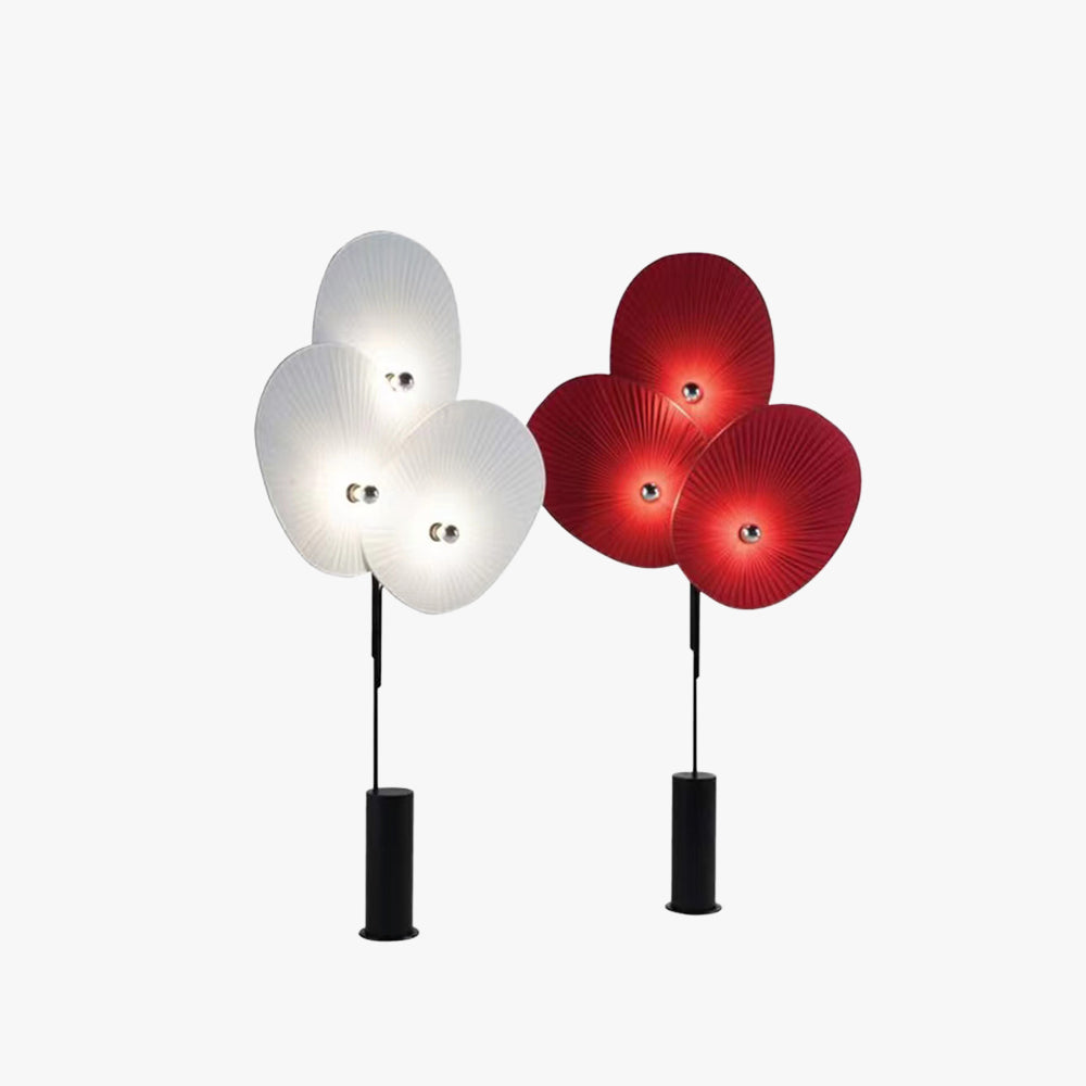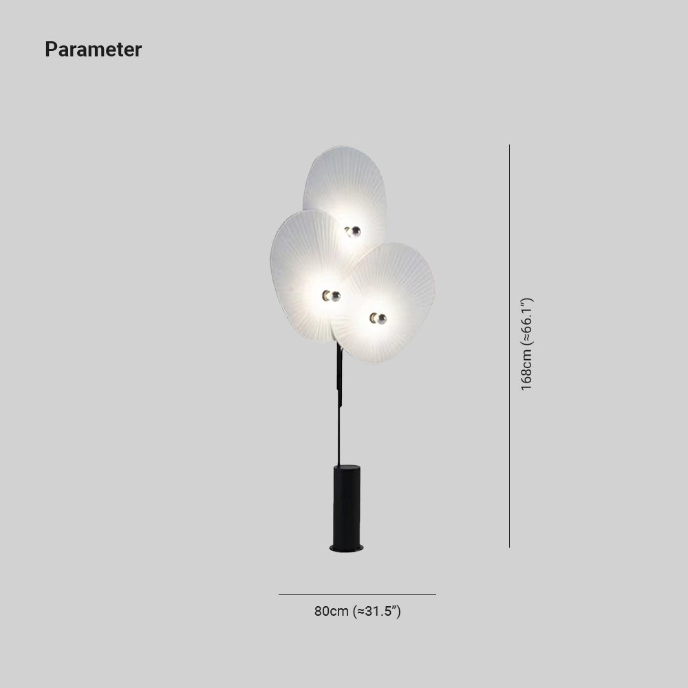 - Valaisin on suuri, ja se koostuu kolmesta lehdestä, jotka muistuttavat perinteisiä itämaisia viuhkaja muodostaen pienen puumaisen lattiavalaisimen.
