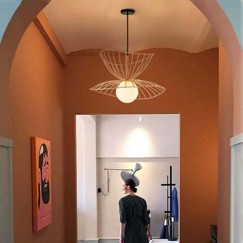 - Tämän riippuvalaisimen upea muoto muistuttaa pellavakulhoa, joka on ripustettu tyylikkäästi kattoon. Tämän riipuksen erottuva muotoilu lisää huoneeseesi erottuvaa ilmettä ja luo hienostuneisuutta ja mysteeriä. Se kohottaa yleistä estetiikkaa elegantin kaarevuuden ja pohjassa olevan liitoksen ansiosta, mikä tekee siitä kiehtovan keskipisteen missä tahansa huoneessa.
