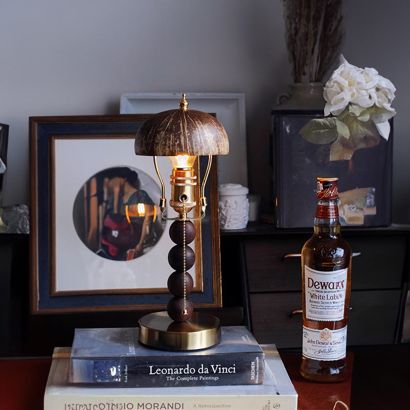 Vintage puinen kookoskuorinen pöytävalaisin