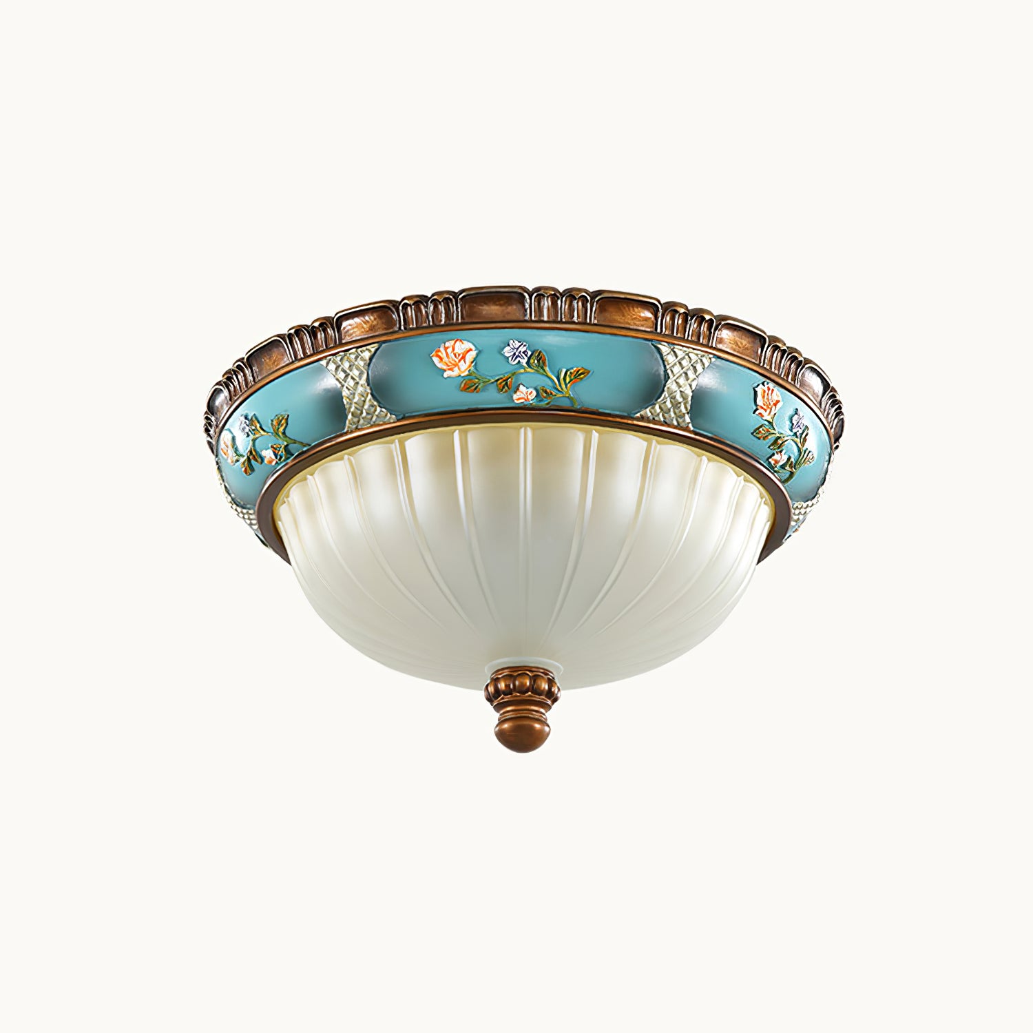 Koe klassinen eleganssi tällä Retro Floral Resin - upotettavalla kattovalaisimella. Tässä kappaleessa yhdistyy klassinen valkoinen lasisävy kirkkaaseen siniseen viimeistelyyn ja luo ajattoman ilmeen. Täydellinen lisäämään ripauksen ylellisyyttä mihin tahansa tilaan.