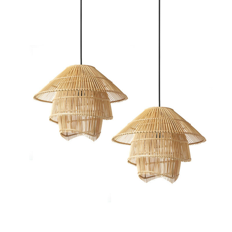 Retro käsintehty kudottu porrastettu rottinkiriippuvalaisin