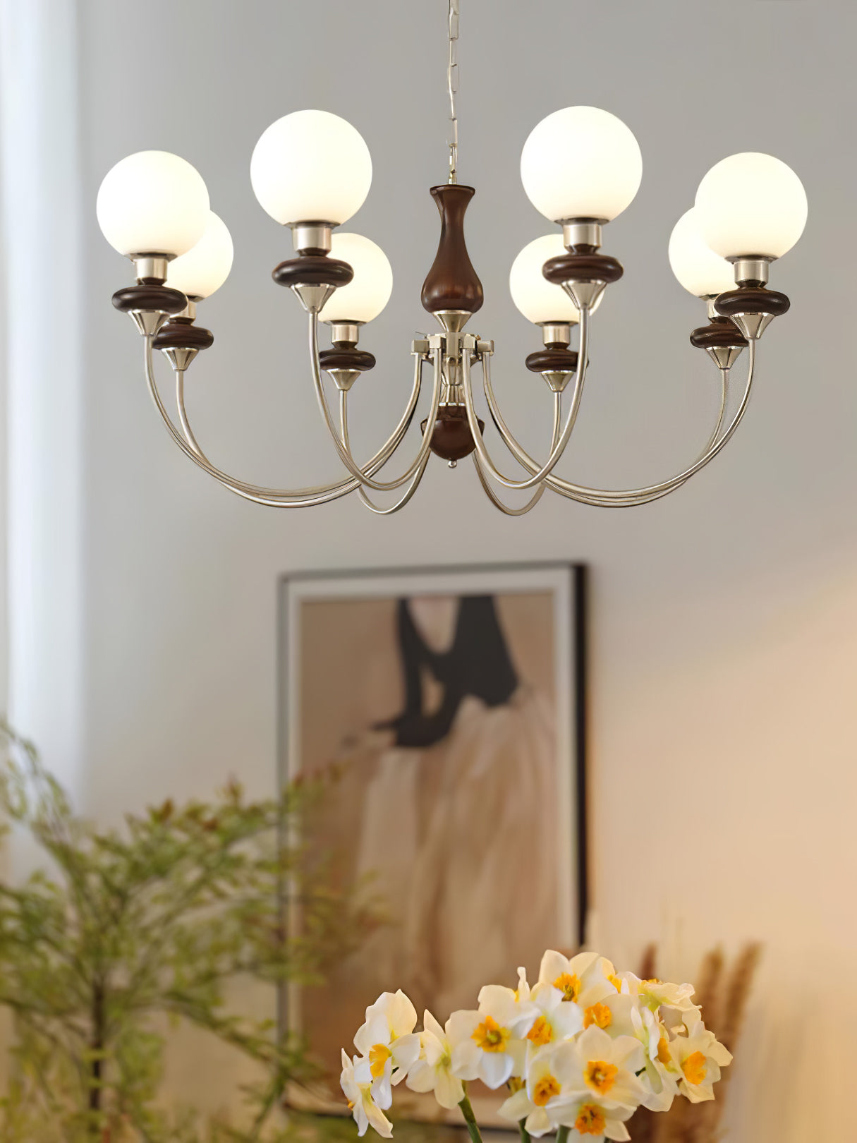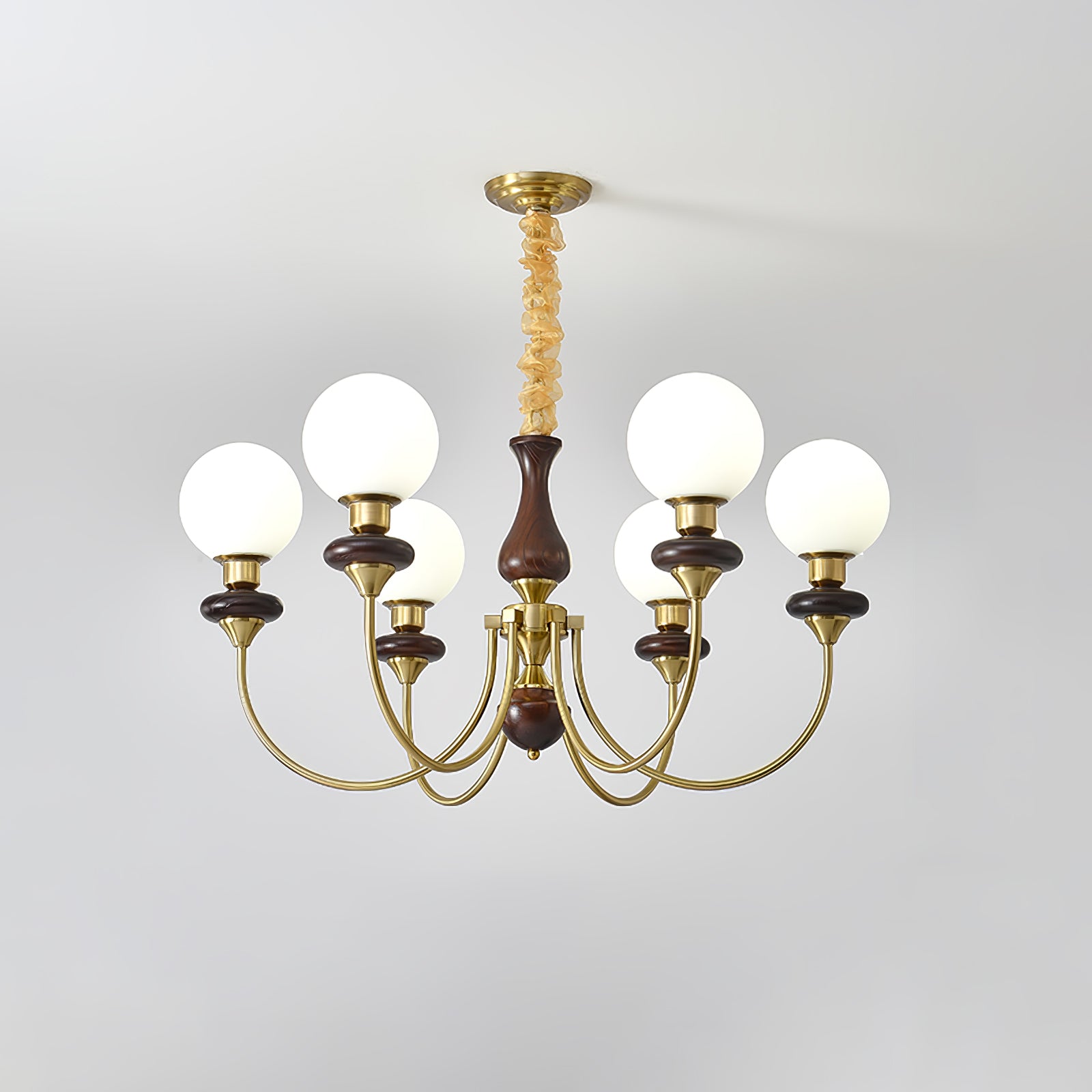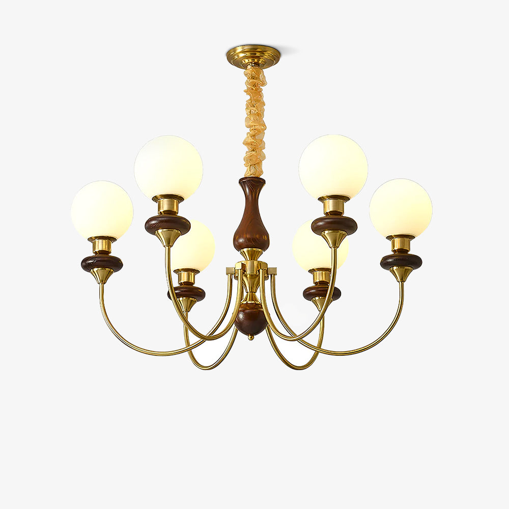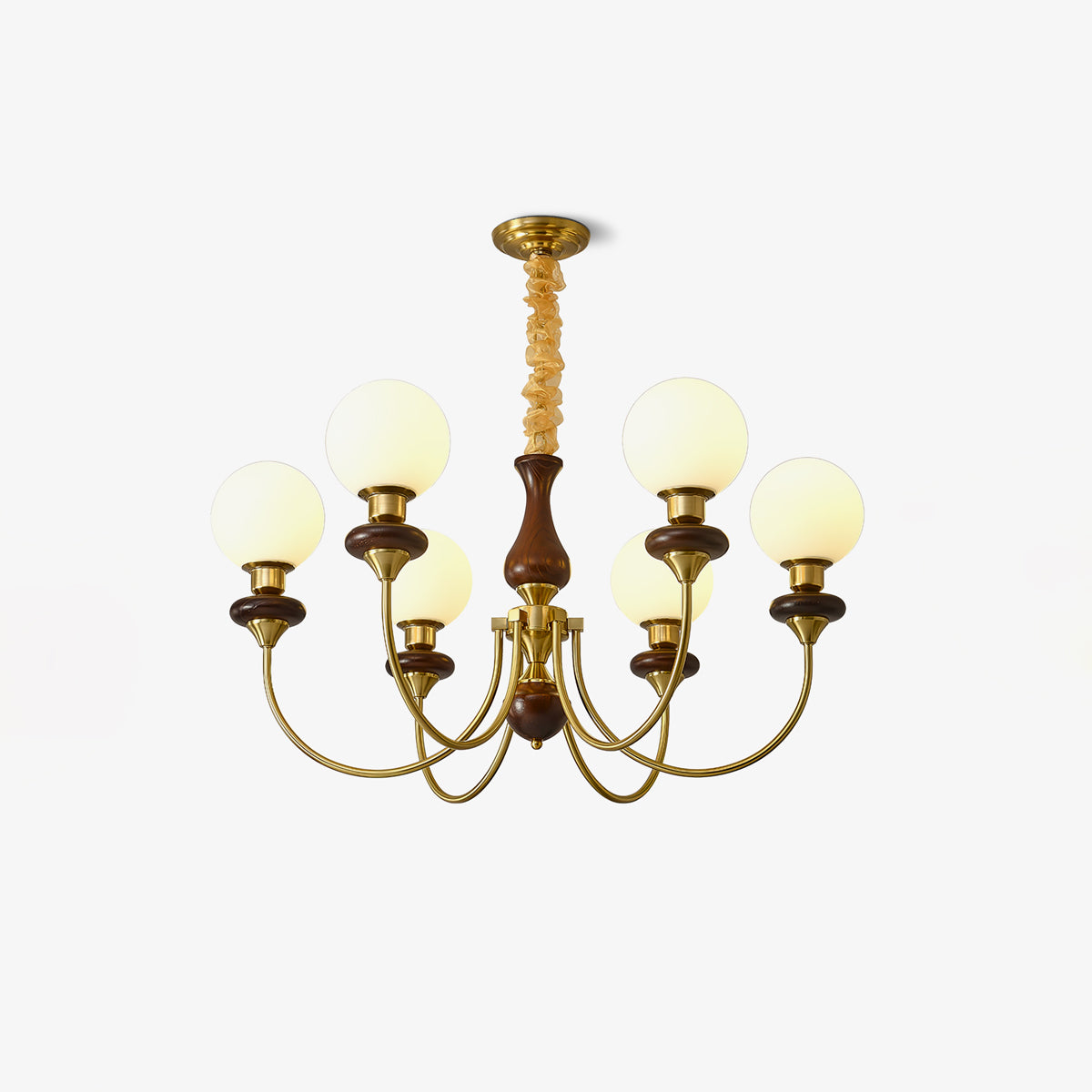 Tämä Retro Monique -kattokruunu on saanut inspiraationsa klassisista amerikkalaisista ja keskiaikaisista tyyleistä. Se on valmistettu massiivisesta messingistä ja pähkinäpuusta pitkäkestoisen kestävyyden ja ajattoman estetiikan takaamiseksi. Se on täydellinen valaistusratkaisu, joka herättää hienostuneisuutta missä tahansa tilassa.
