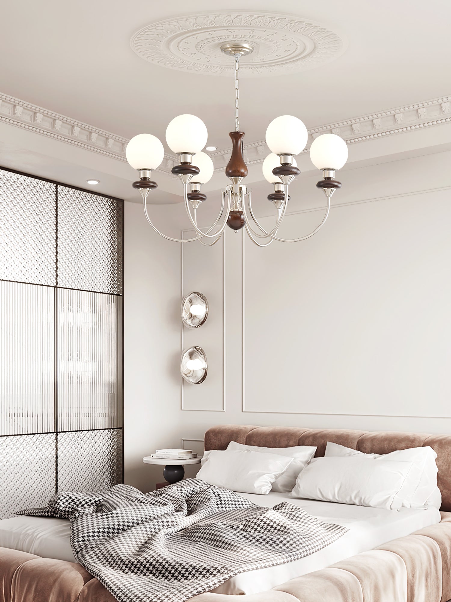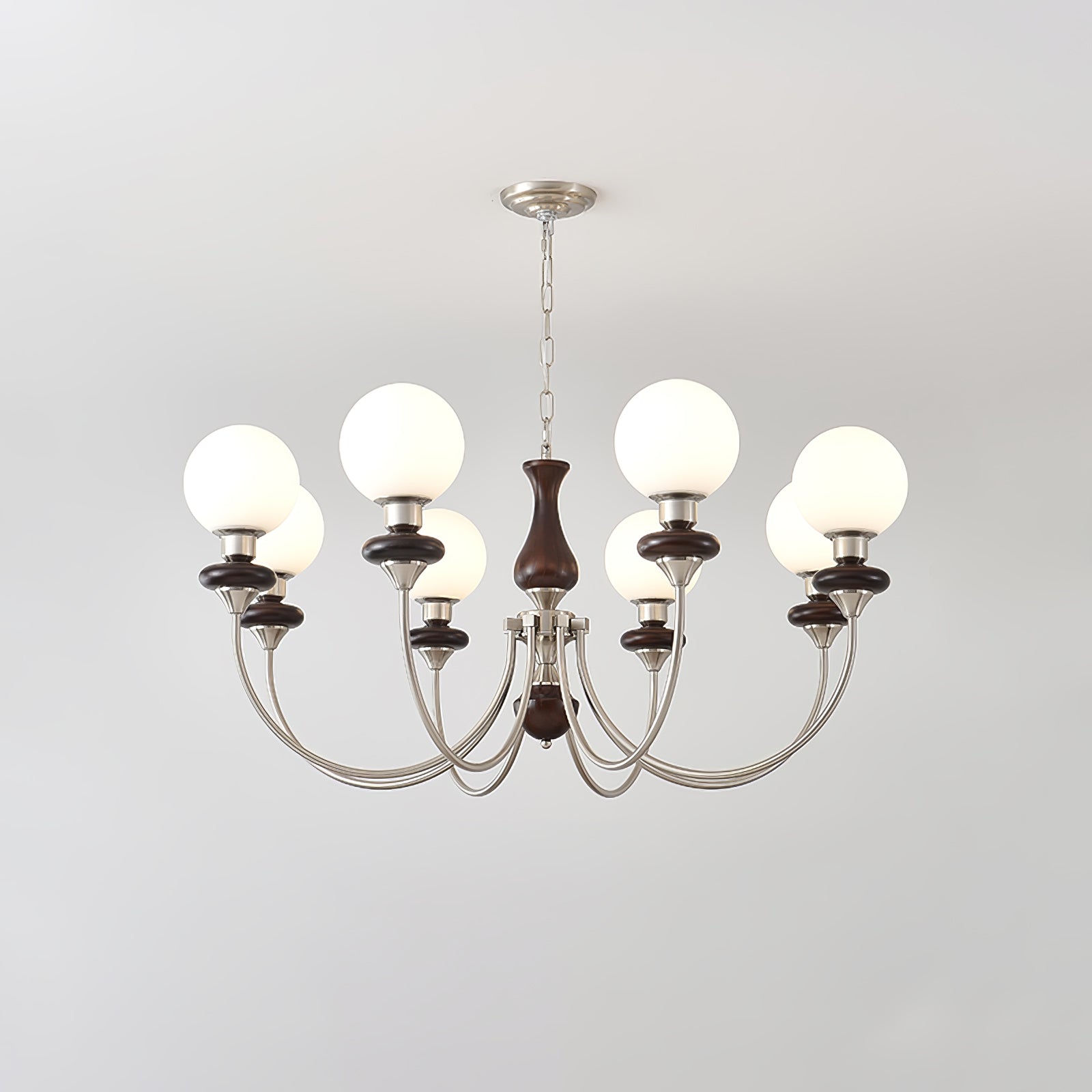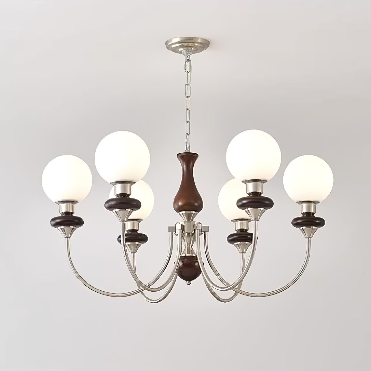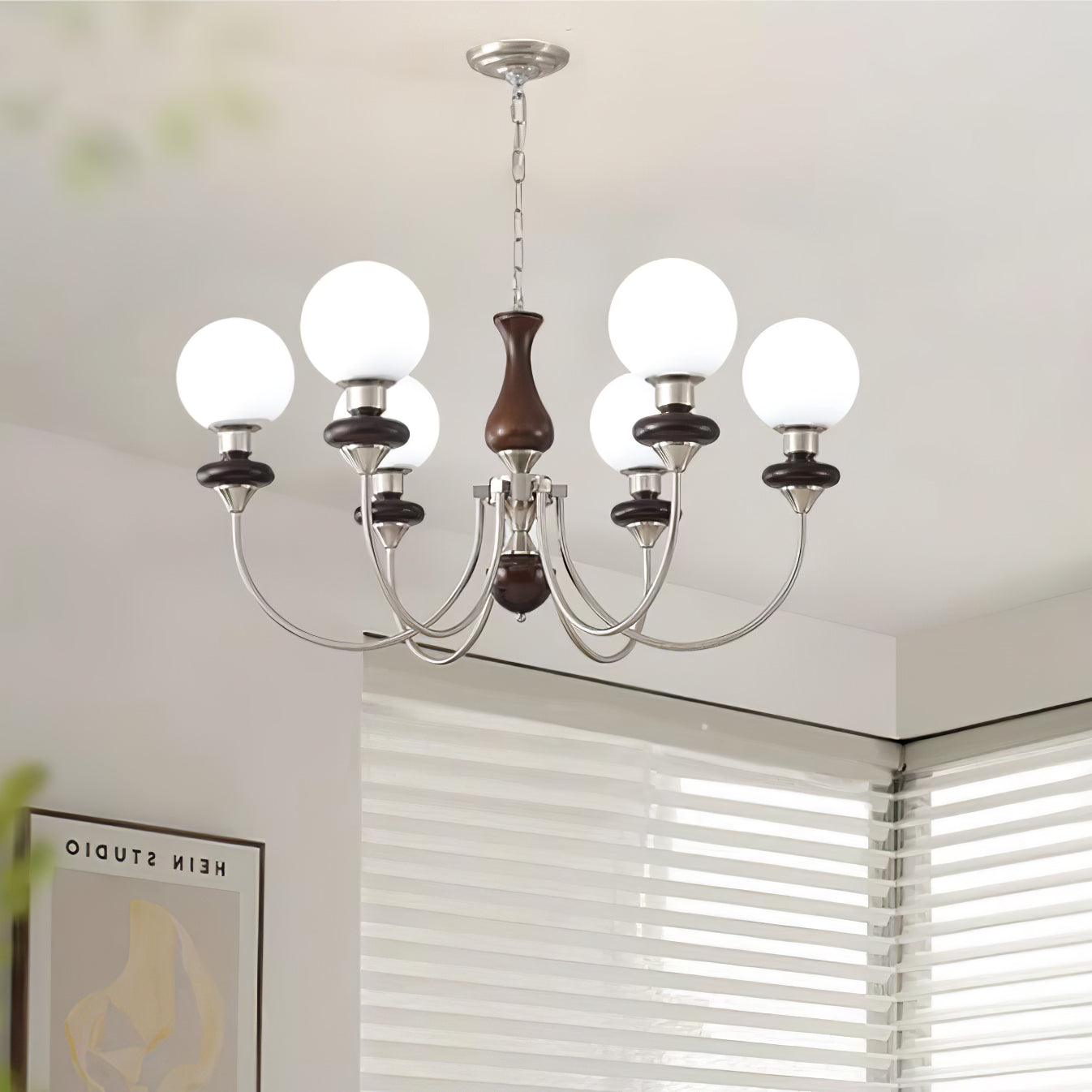 Tämä Retro Monique -kattokruunu on saanut inspiraationsa klassisista amerikkalaisista ja keskiaikaisista tyyleistä. Se on valmistettu massiivisesta messingistä ja pähkinäpuusta pitkäkestoisen kestävyyden ja ajattoman estetiikan takaamiseksi. Se on täydellinen valaistusratkaisu, joka herättää hienostuneisuutta missä tahansa tilassa.