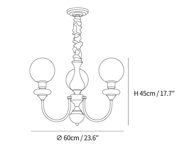 3 lamppua Koko: Halkaisija 60cm x K 45cm / ∅ 23,6″ x K 17,7″