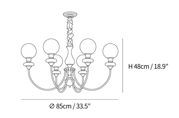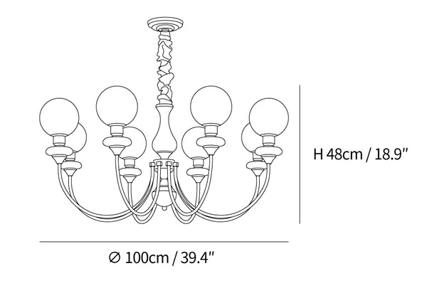 8 lamppua Koko: Halkaisija 100cm x K 48cm / ∅ 39,4″ x K 18,9″