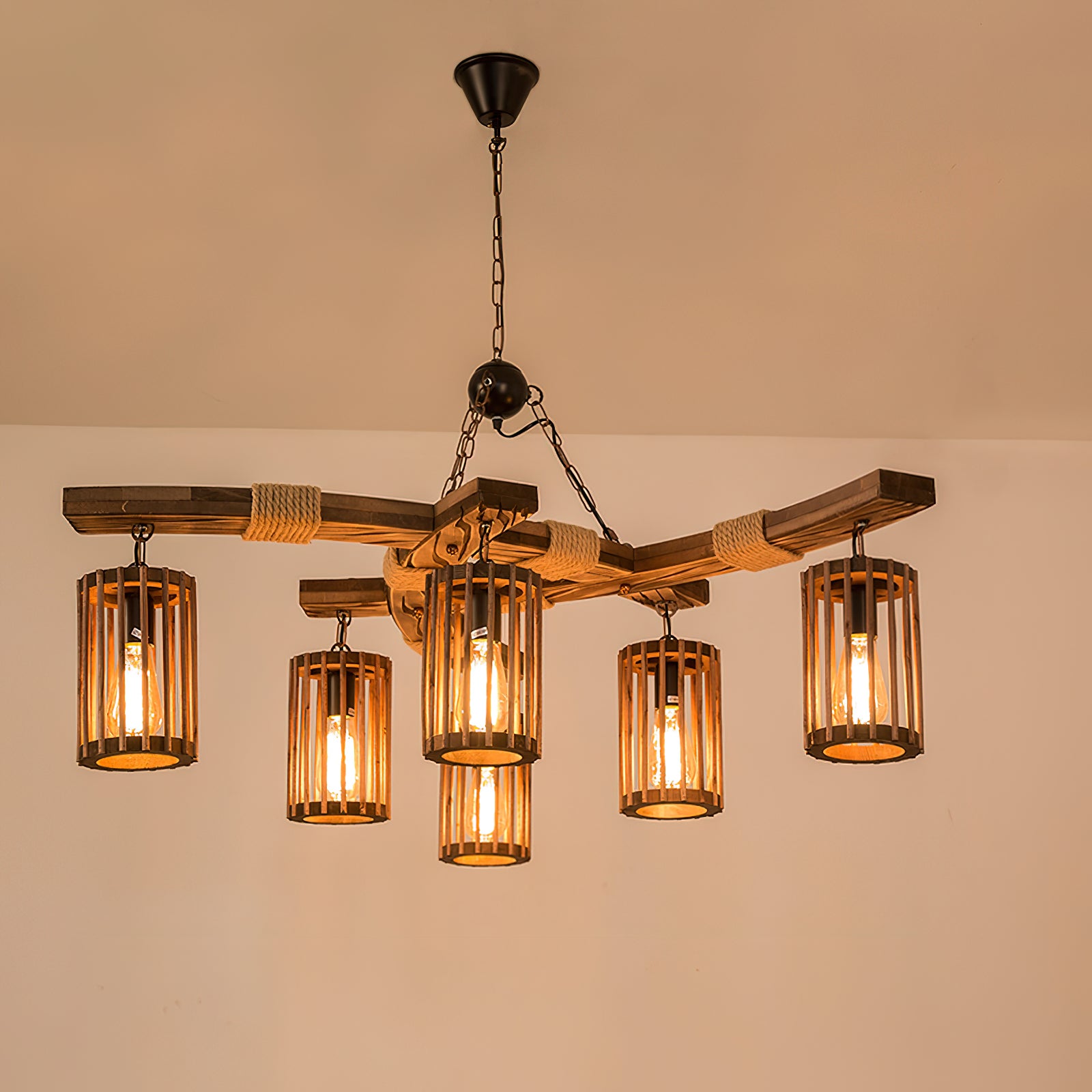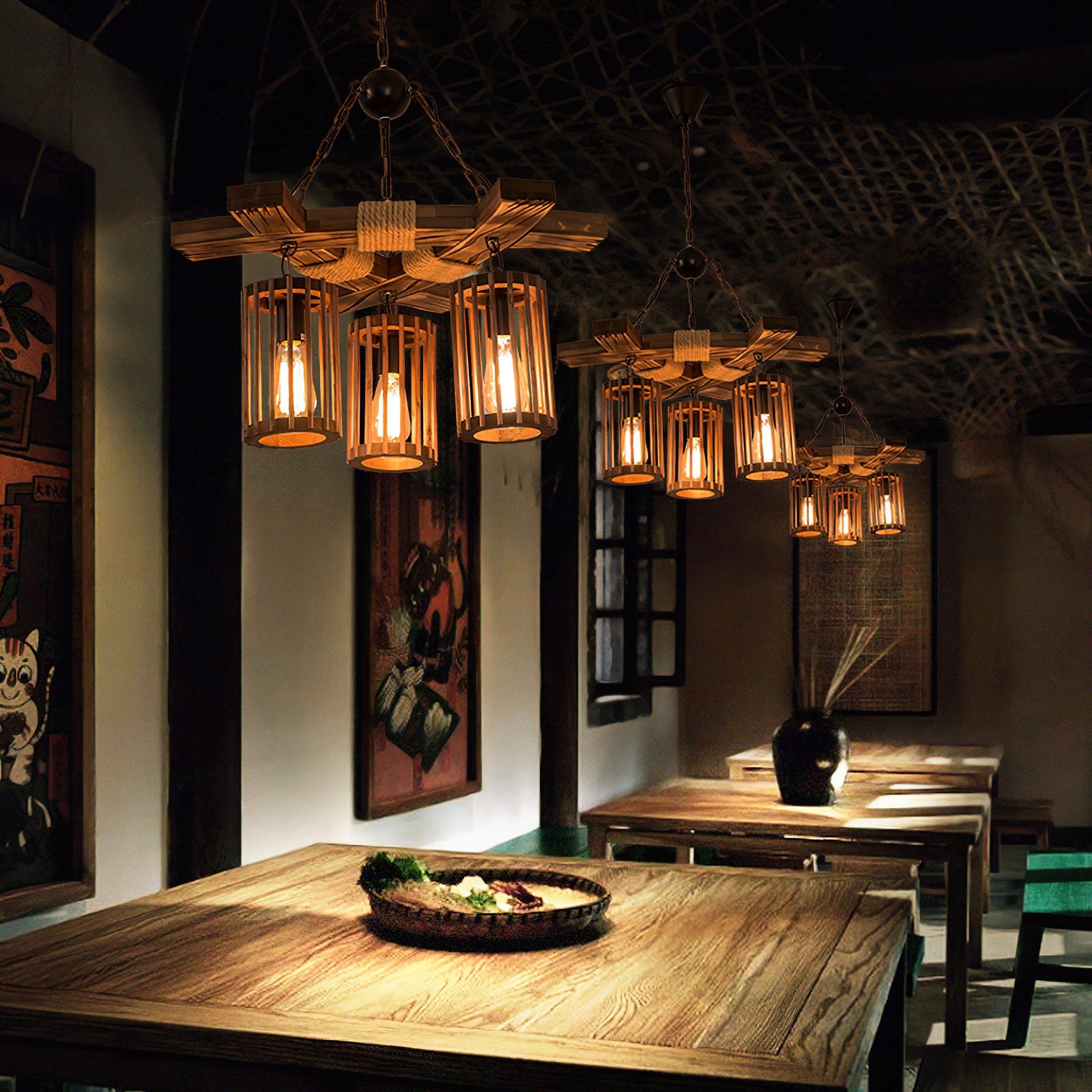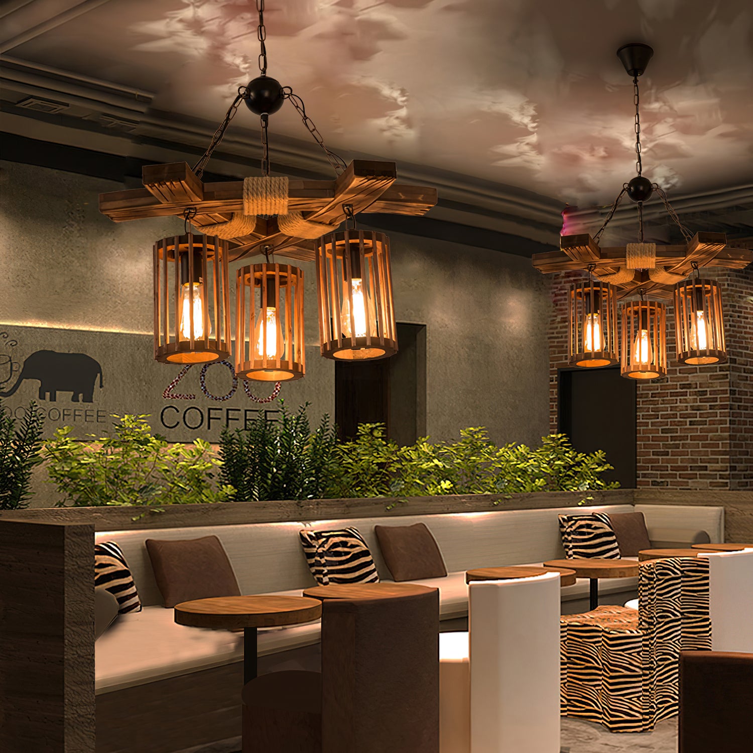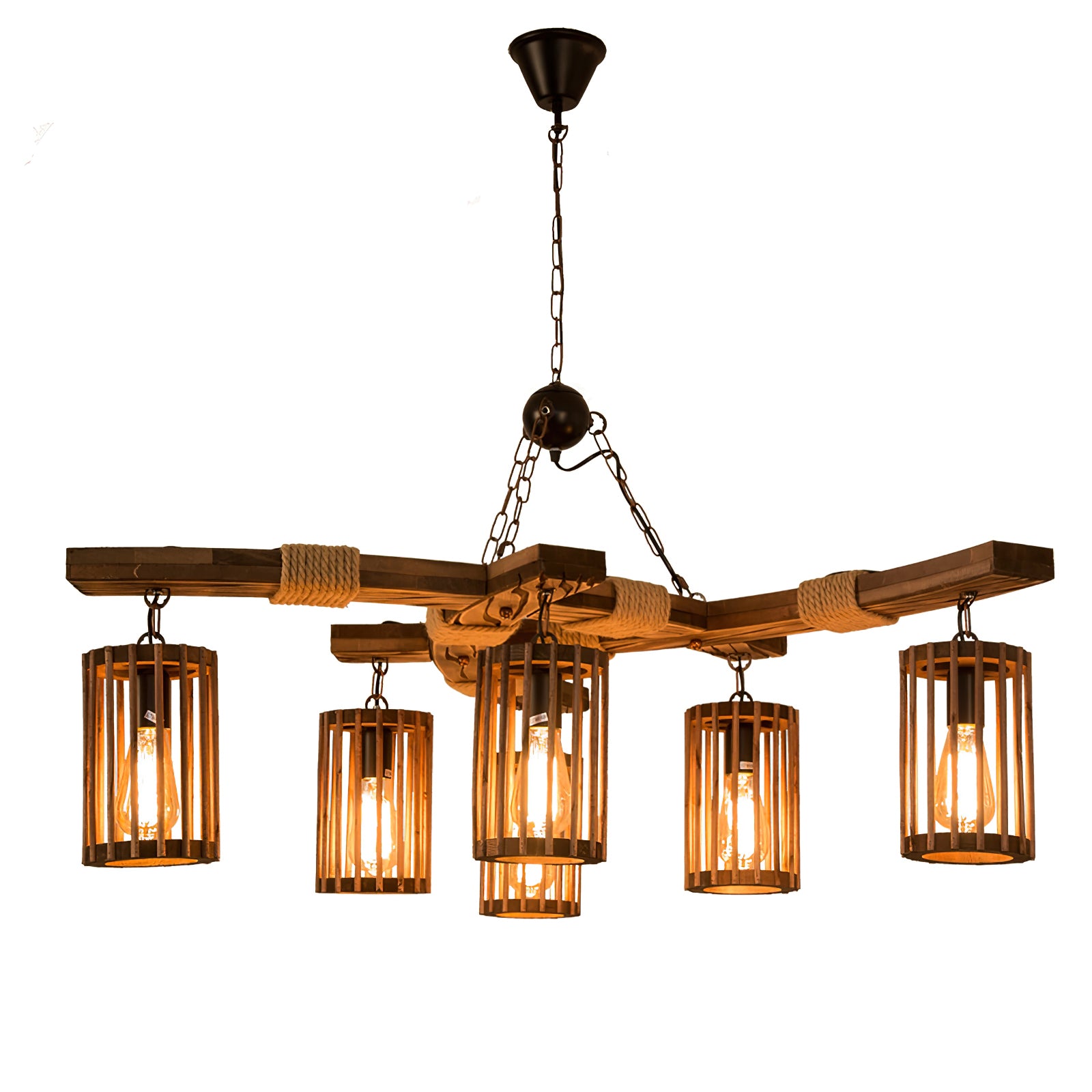 Lisää tilaan teollista tunnelmaa Retro Solid Wood -kattokruunullamme. Ainutlaatuinen materiaali ja muotoilu herättävät nostalgiaa ja ajatonta tyyliä. Tämä kattokruunu on täydellinen luomaan luonnetta mihin tahansa huoneeseen, ja se sopii täydellisesti retrohenkiseen sisustukseen ja on loistava lisä ravintoloihin, kahviloihin ja loungebaareihin.